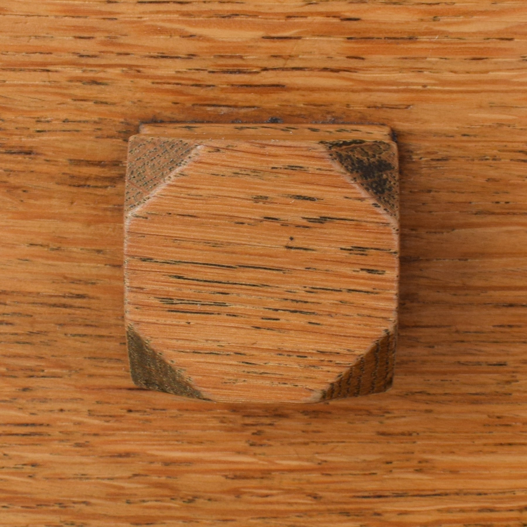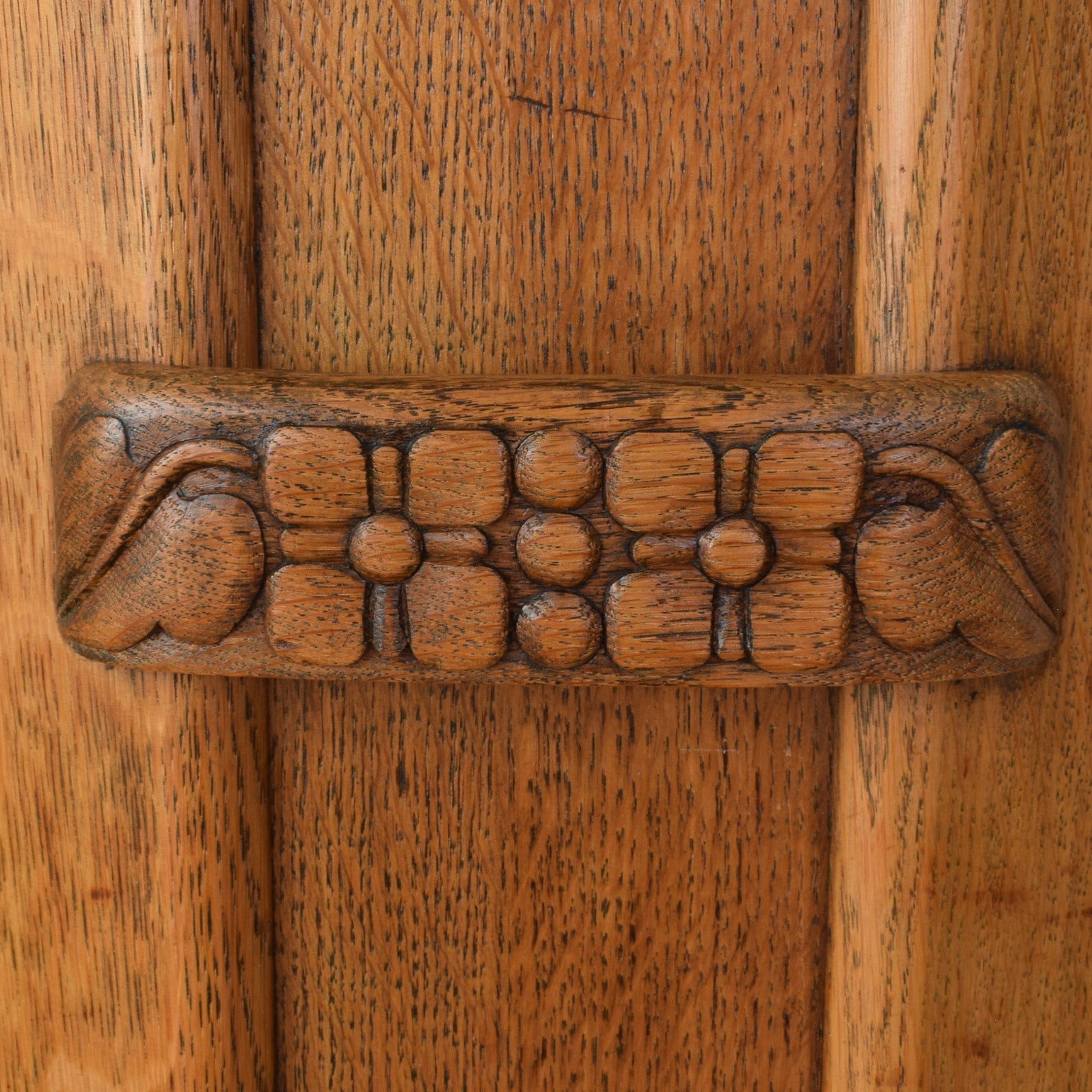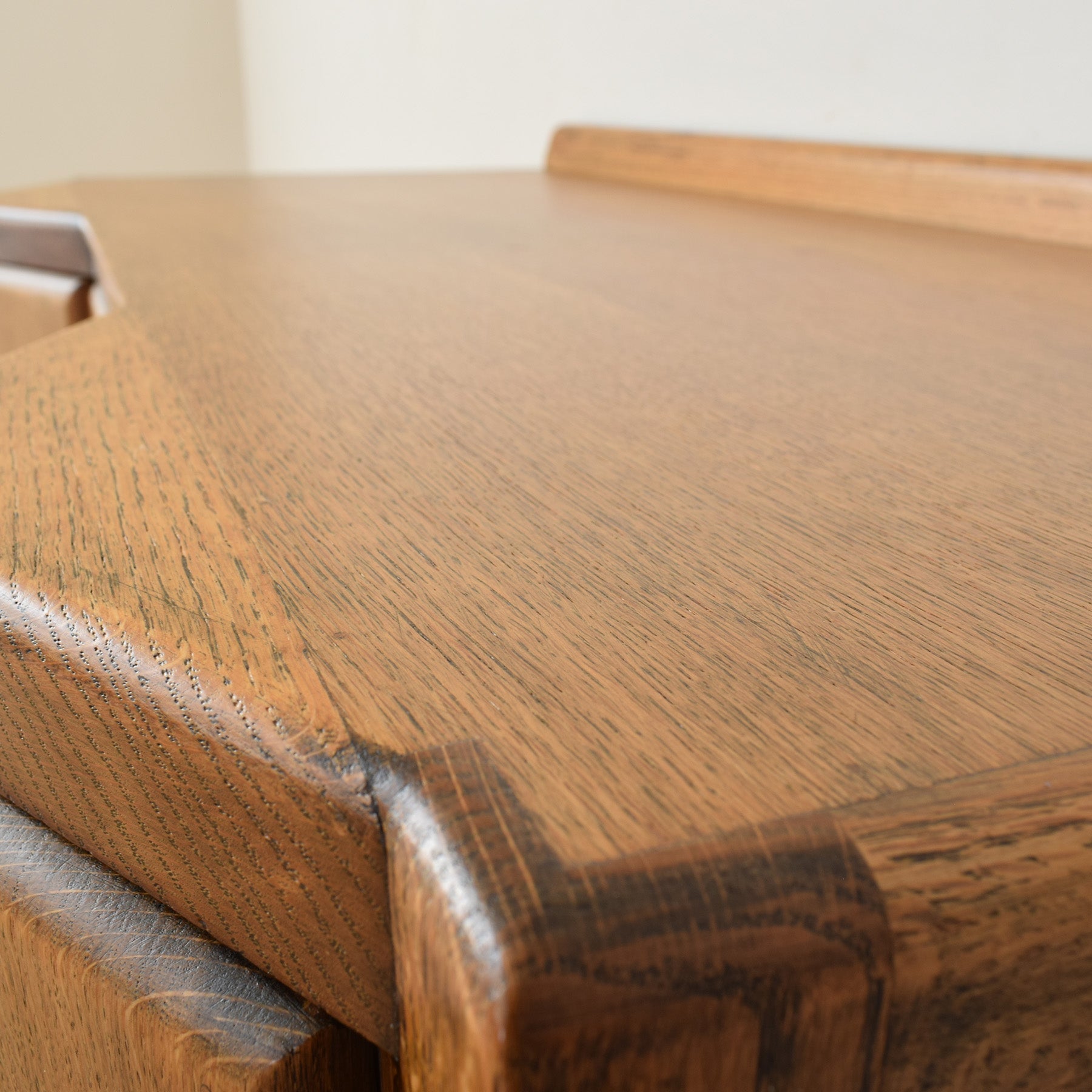 The previous darker stain has been stripped, and then multiple coats of hard-wearing matte lacquer have been applied, providing a durable long-lasting finish while also accentuating the natural oak grain. This careful restoration allows the warm tones and distinctive grain patterns to stand out, complementing the Art Deco styling. This item is made from a mixture of solid oak and oak veneer. The rear panel and drawer bases are made from plywood.