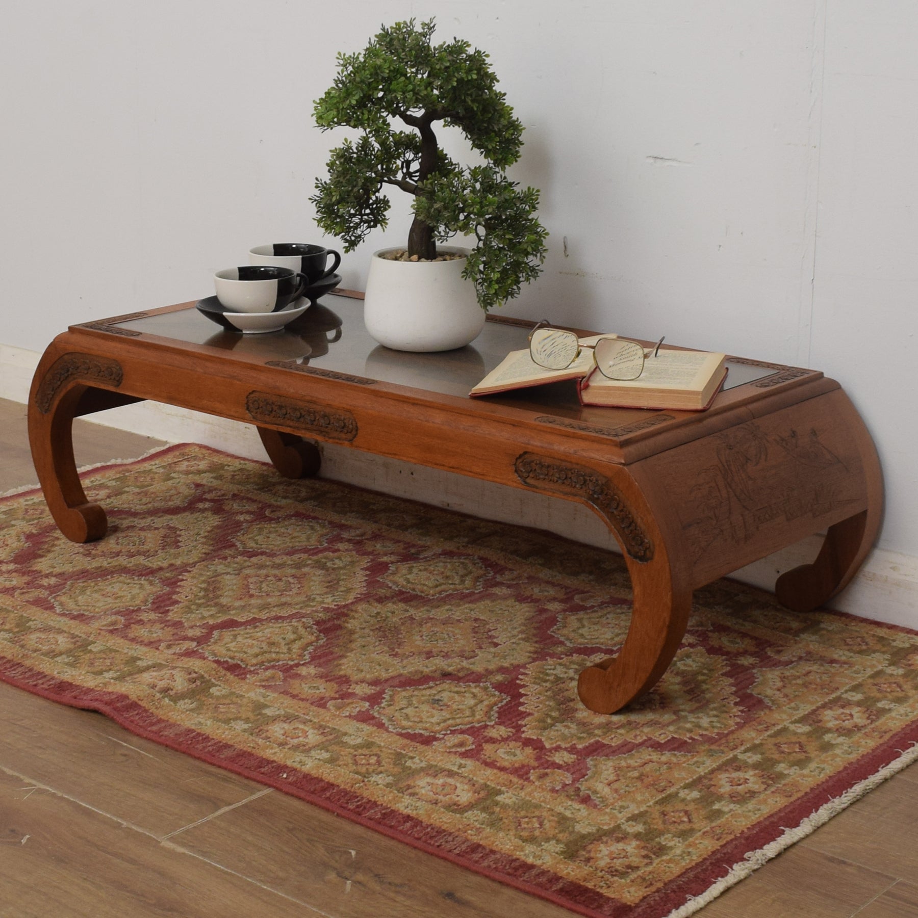 This carved camphor wood coffee table is more than just a piece of furniture; it’s a work of art that brings character and warmth to any room, making it a cherished addition to any home.