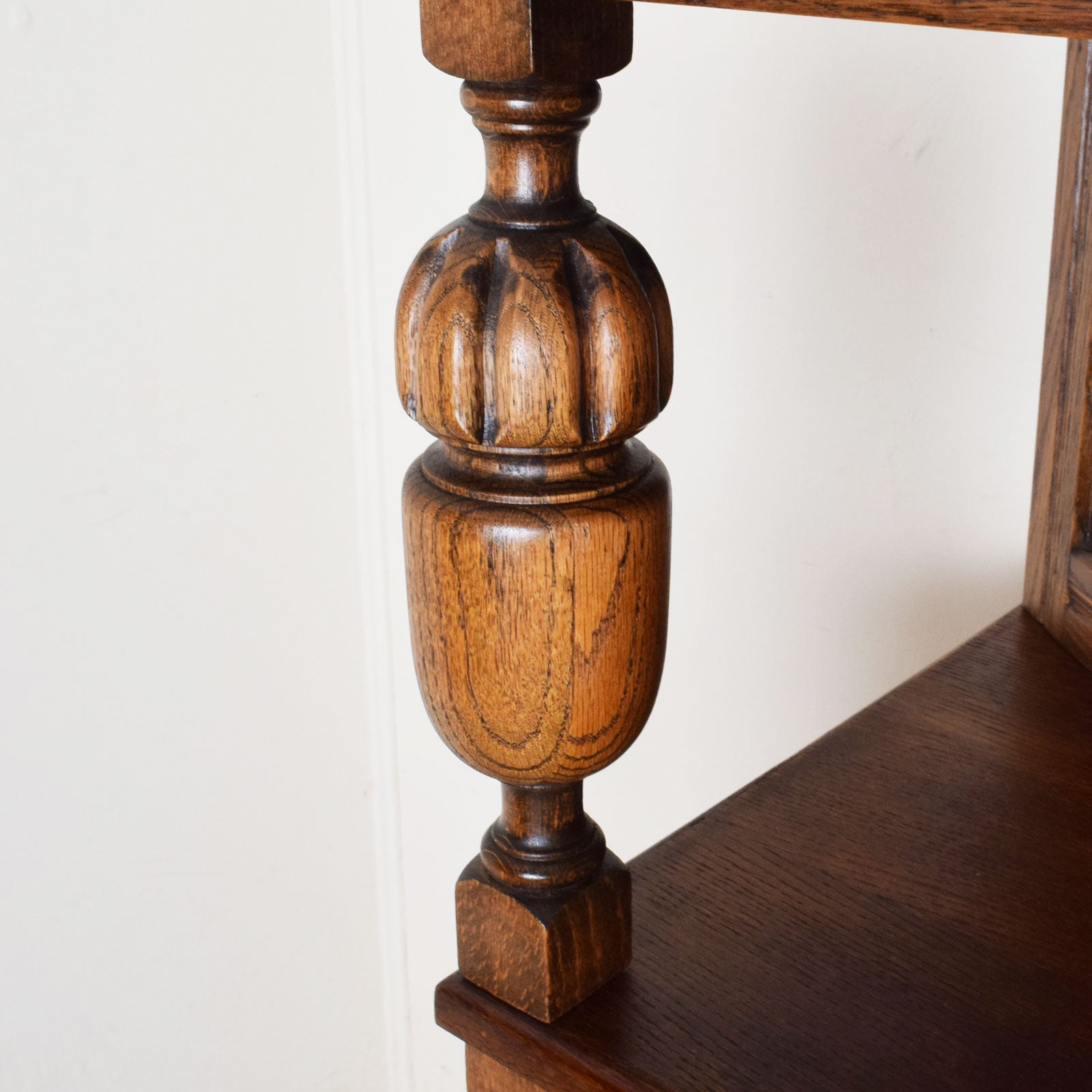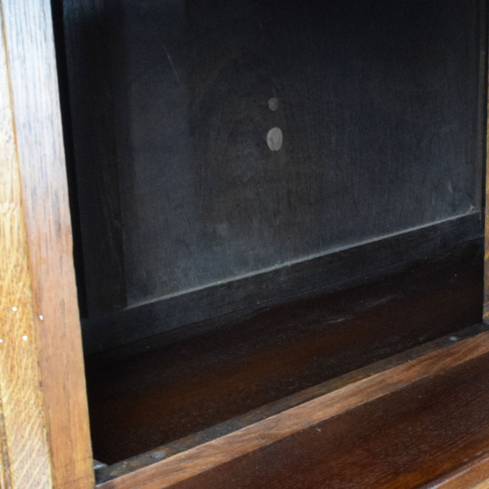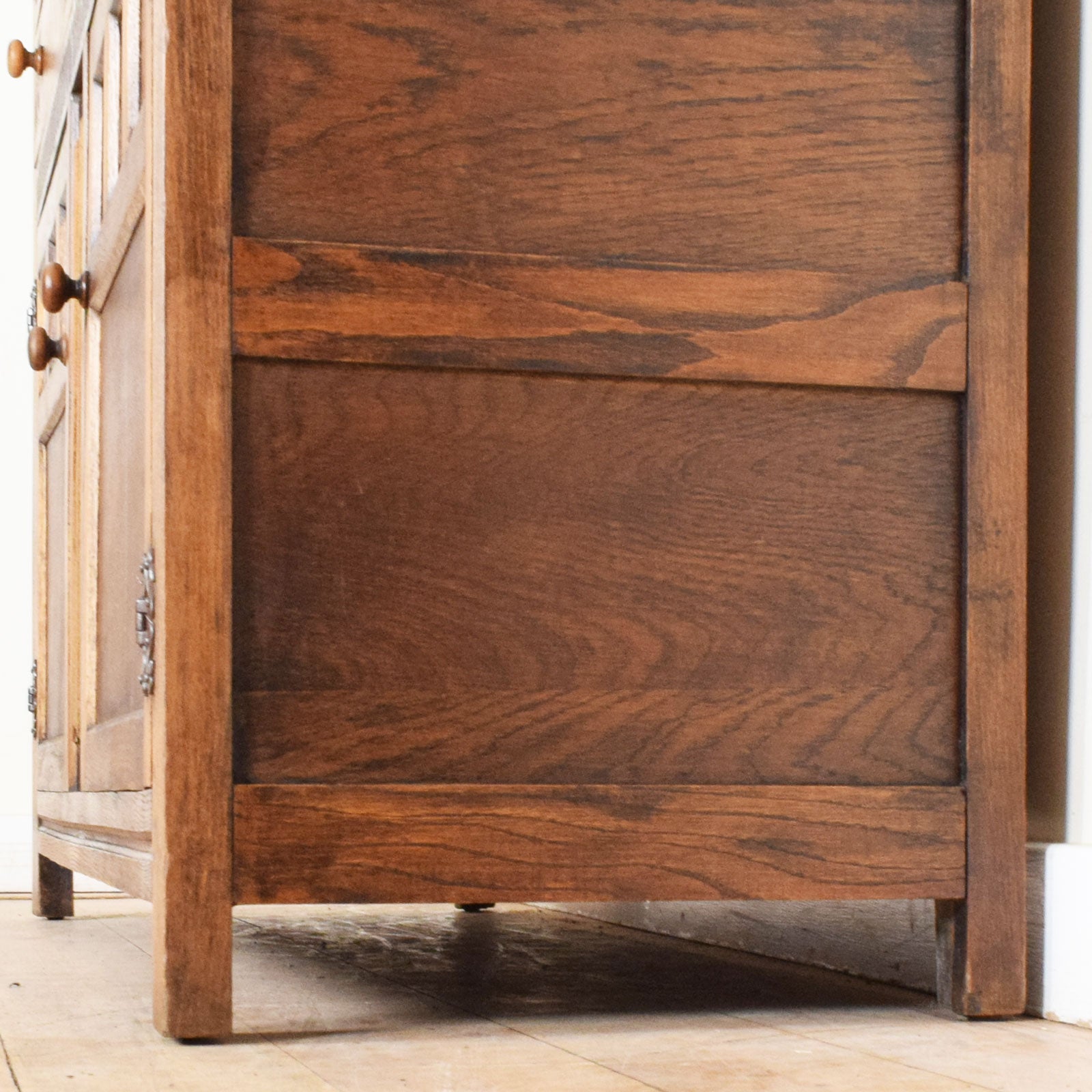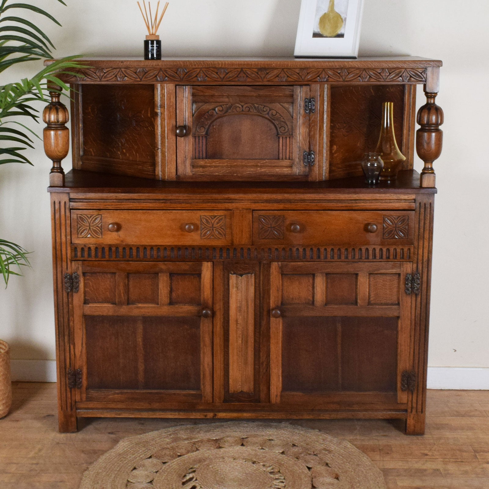 This carved oak court cabinet is destined to claim a place of pride in any home, ideally suited for a hallway, living room, or dining room.