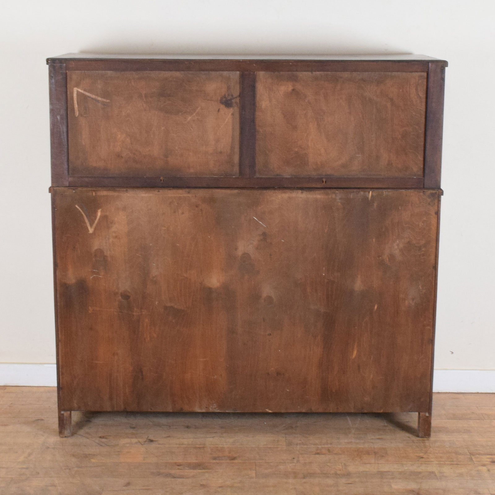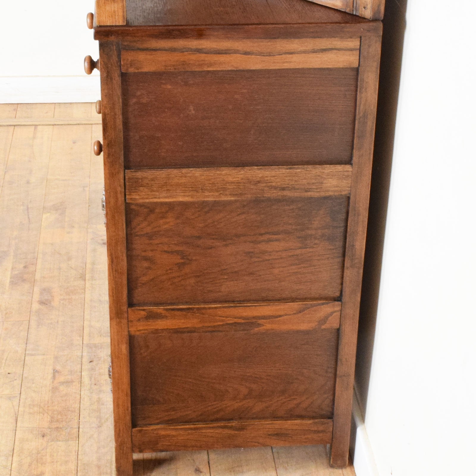 Our restoration process involved a meticulous process of stripping away the previous darker finish to unveil the natural tones of the oak grain. We applied a clear matte lacquer, ensuring a durable and attractive finish. This piece of furniture is made from oak, veneer and plywood.