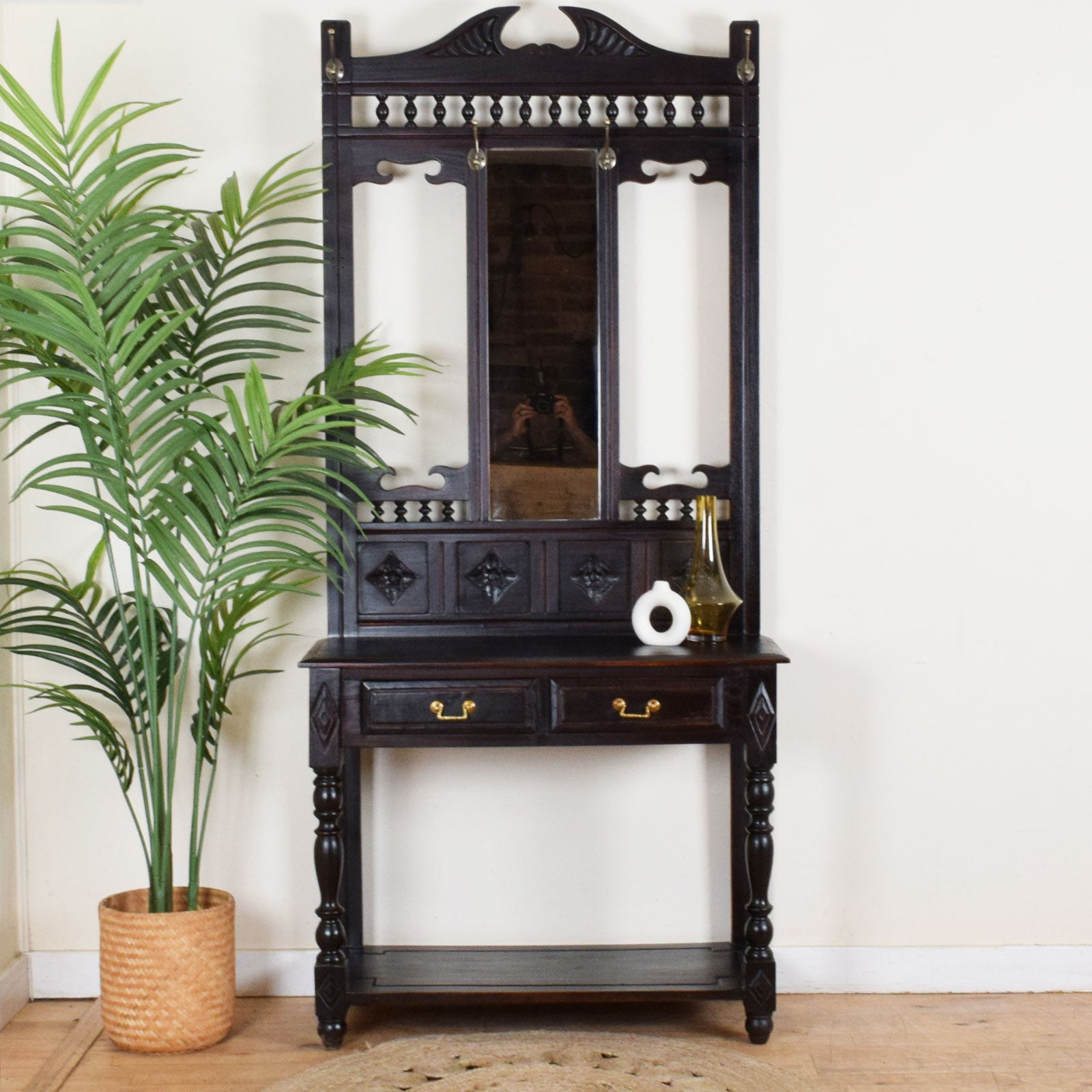 This mirrored, carved mahogany hall stand is sure to add a hint of style and class to any hallway in any home.