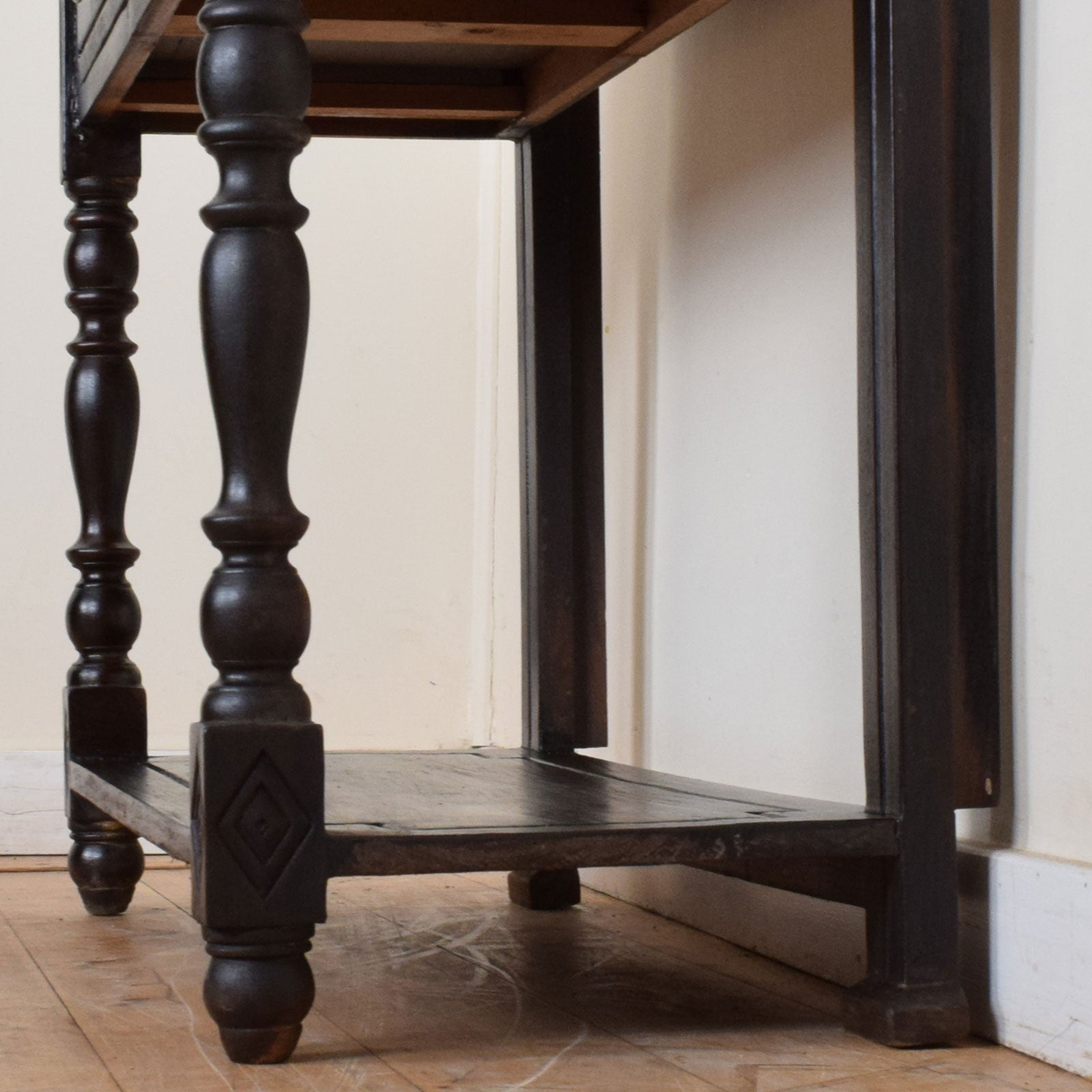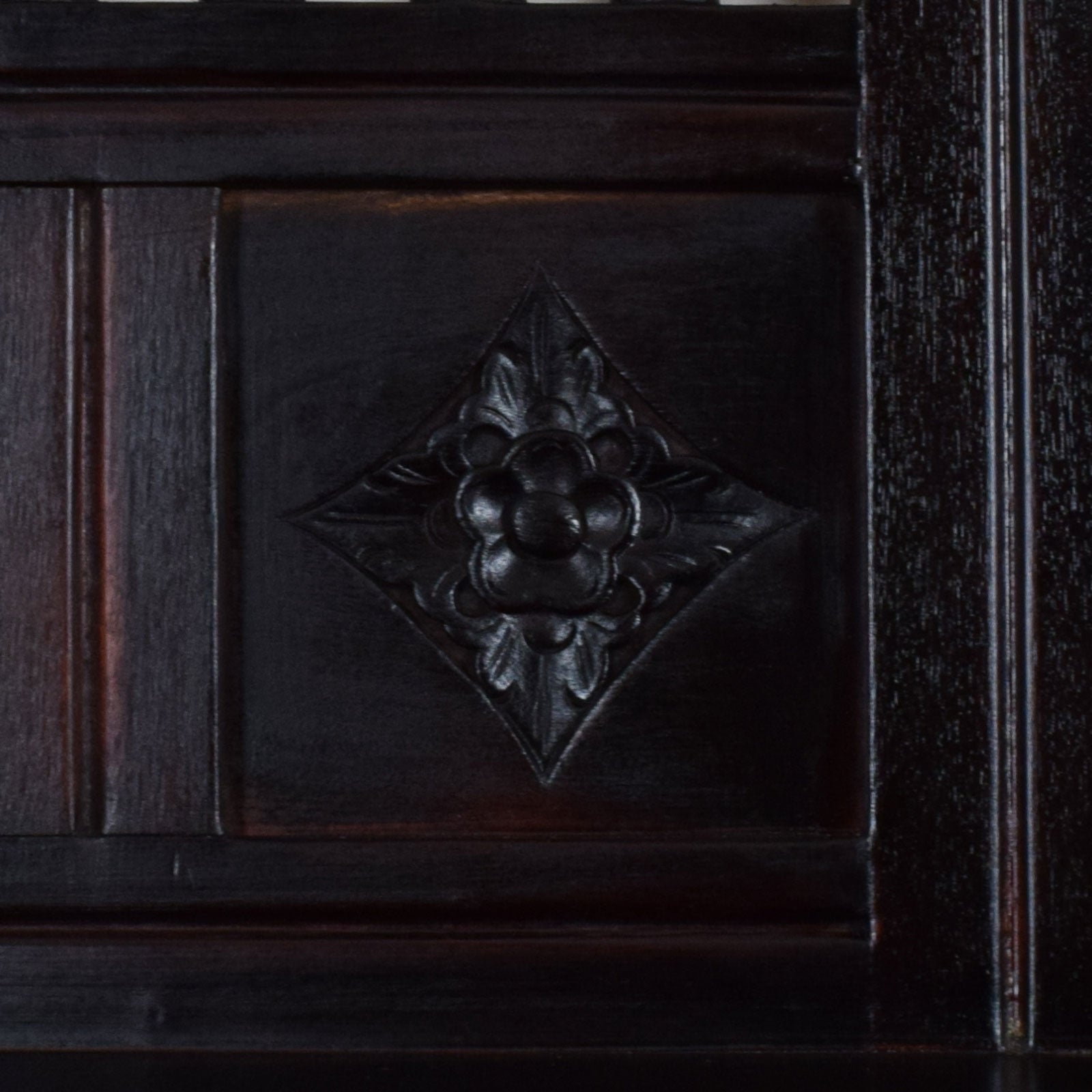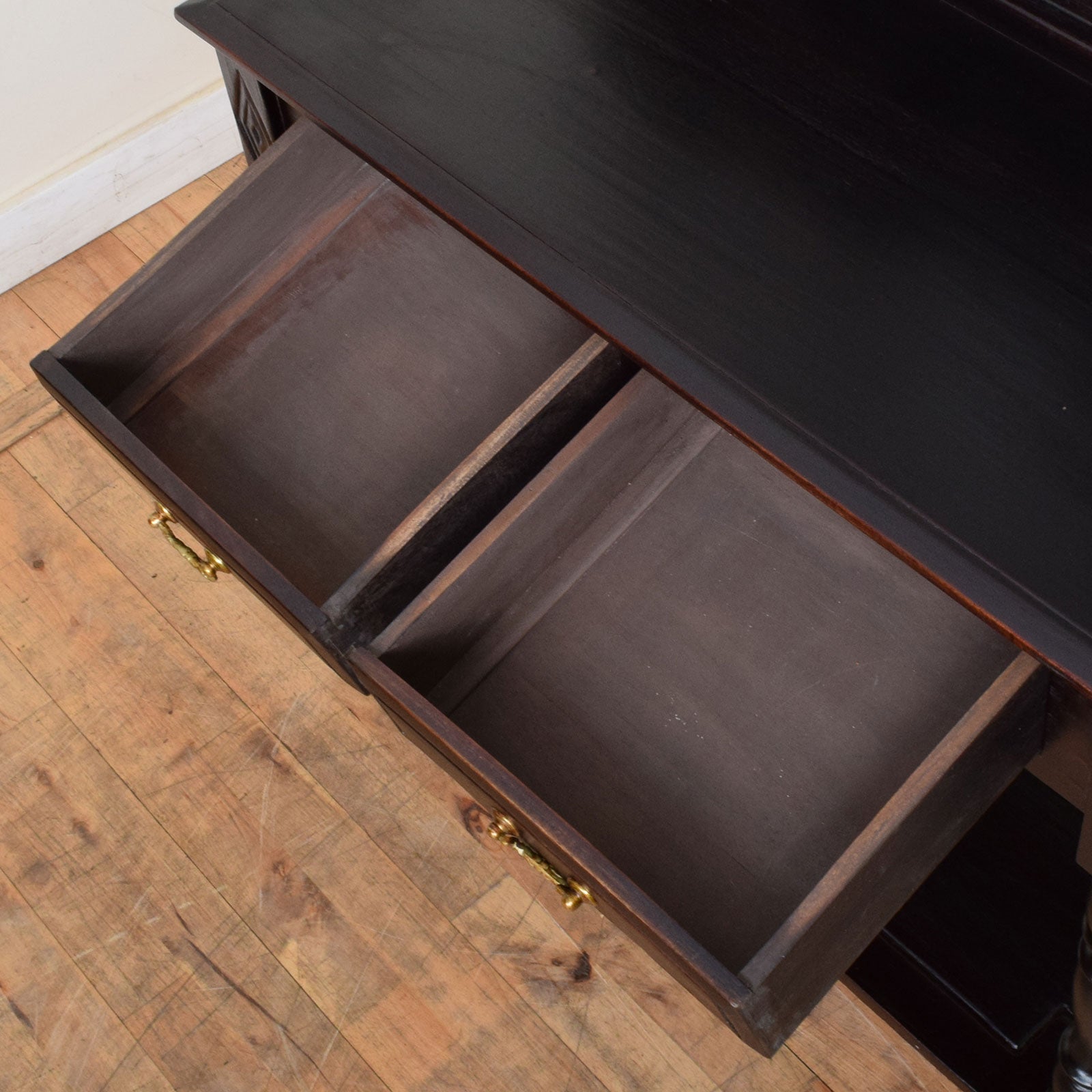 We've restored this piece by stripping away the worn and tired finish, we've then covered it in a dark mahogany stain before applying a generous coat of our long-lasting clear lacquer, ensuring a durable and enduring finish.