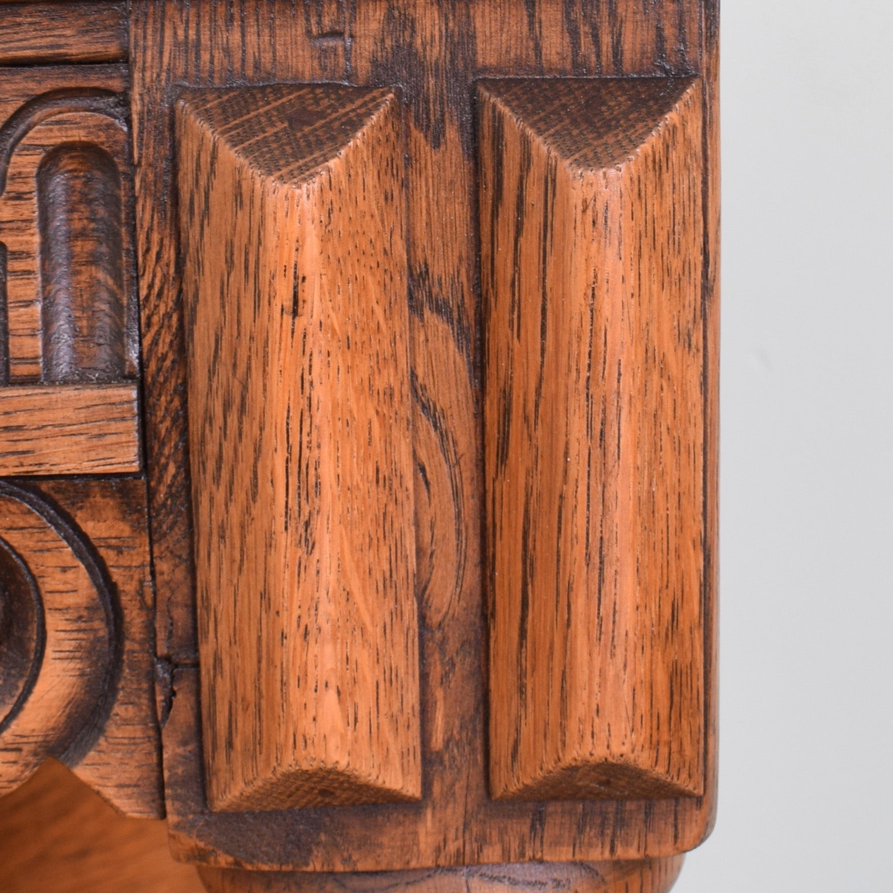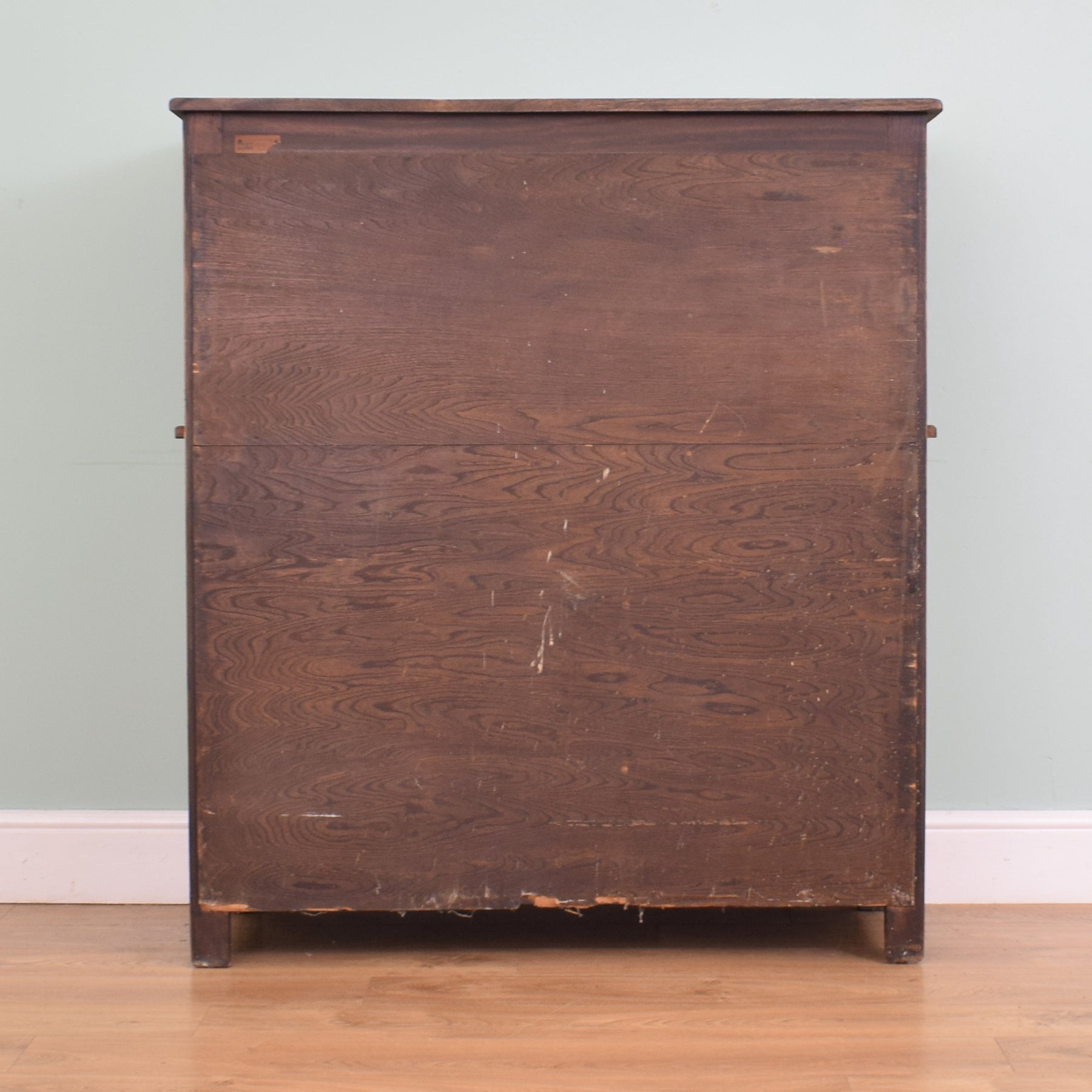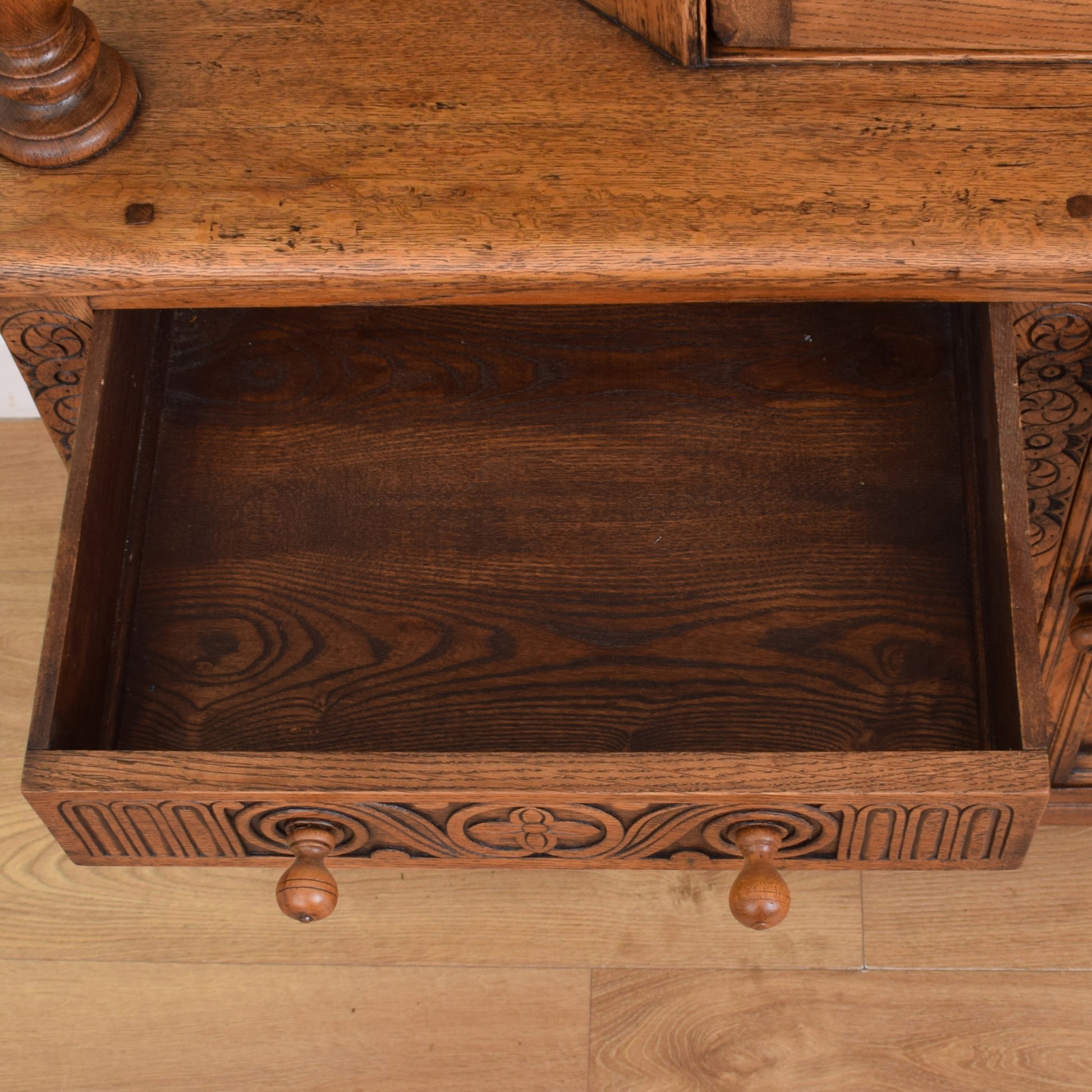 We have lovingly restored this piece by stripping back the previous darker finish to reveal the natural tones of the oak grain and applied a clear matt lacquer giving a hard-wearing and attractive finish.