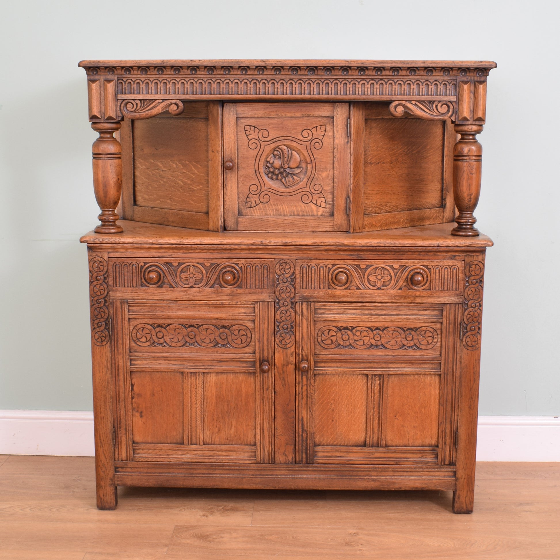 This beautifully carved oak court cabinet will surely take pride in place in any home and is ideally suited for a hallway, living room or dining room.