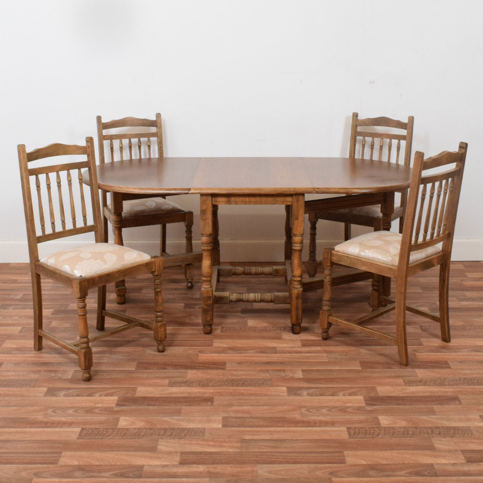 A classic dining set brings function and warmth to the heart of the home, offering a welcoming space for everyday meals and informal gatherings. This traditional drop-leaf table with four spindle-back chairs pairs solid craftsmanship with a timeless design, making it a practical and characterful choice for kitchens or compact dining rooms.