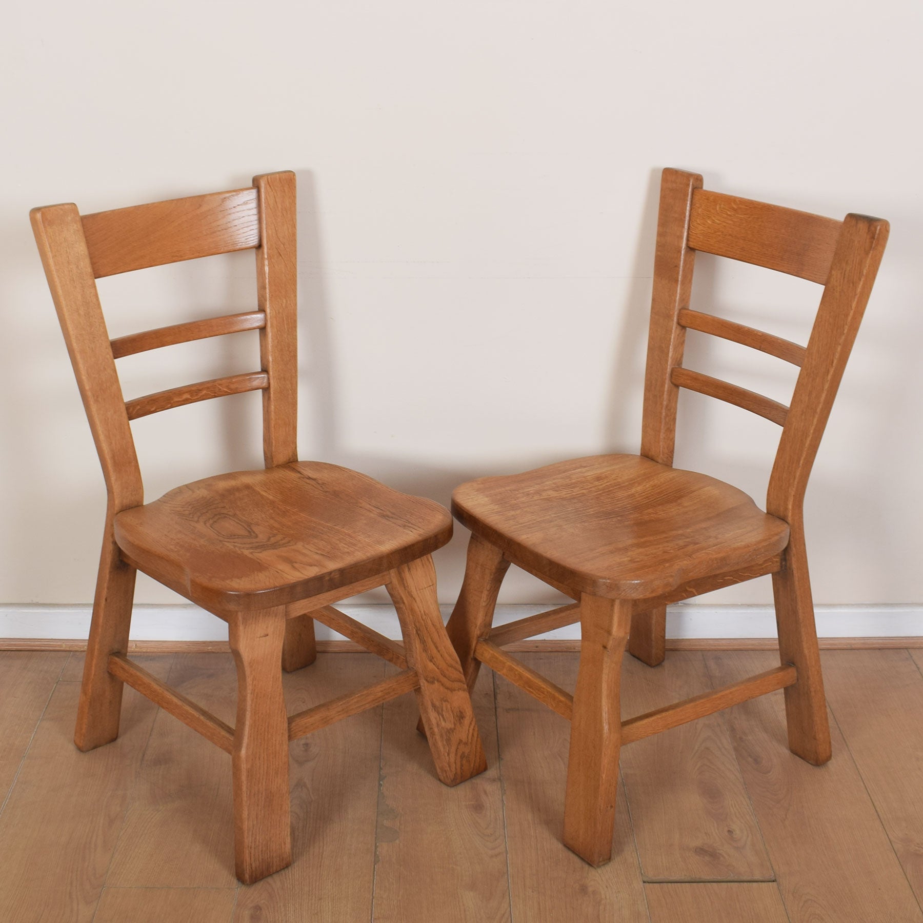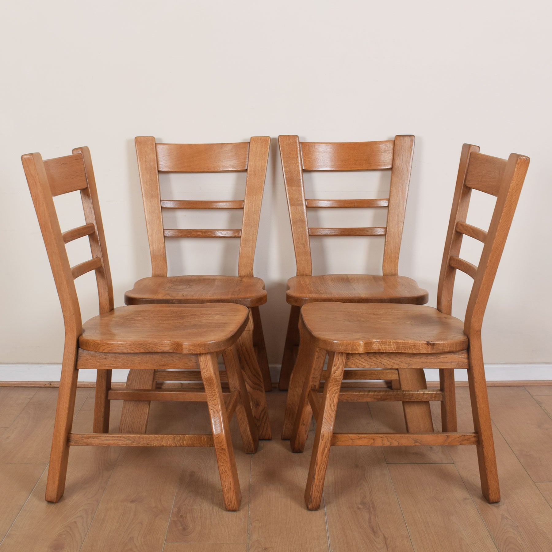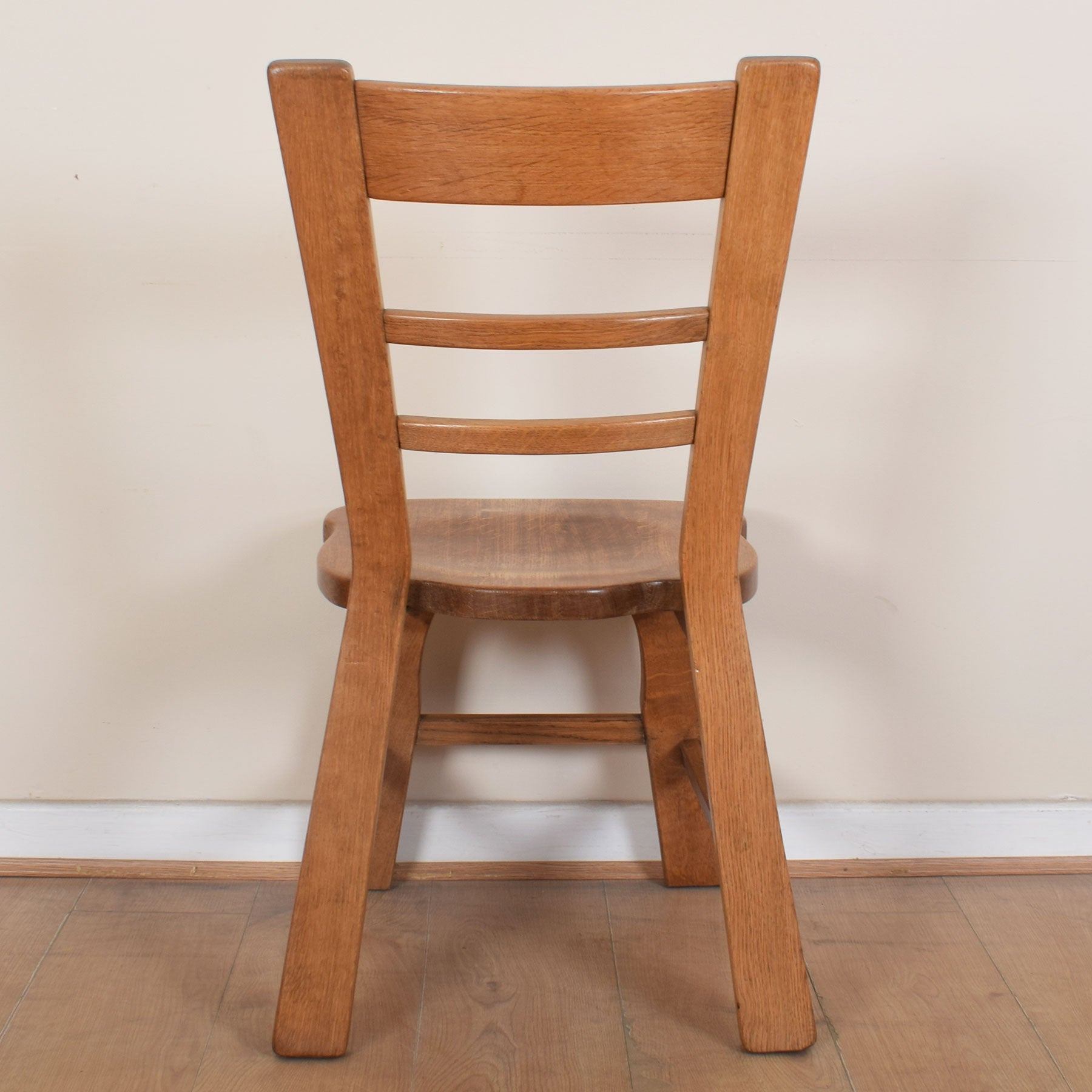 The well-proportioned dining table offers ample space for a family of four to dine in comfort, with the potential to accommodate two guests if required. The four accompanying ladder-back design chairs provide comfortable dining and complement the table beautifully. This quality-made dining table and chairs are solid Dutch oak throughout.