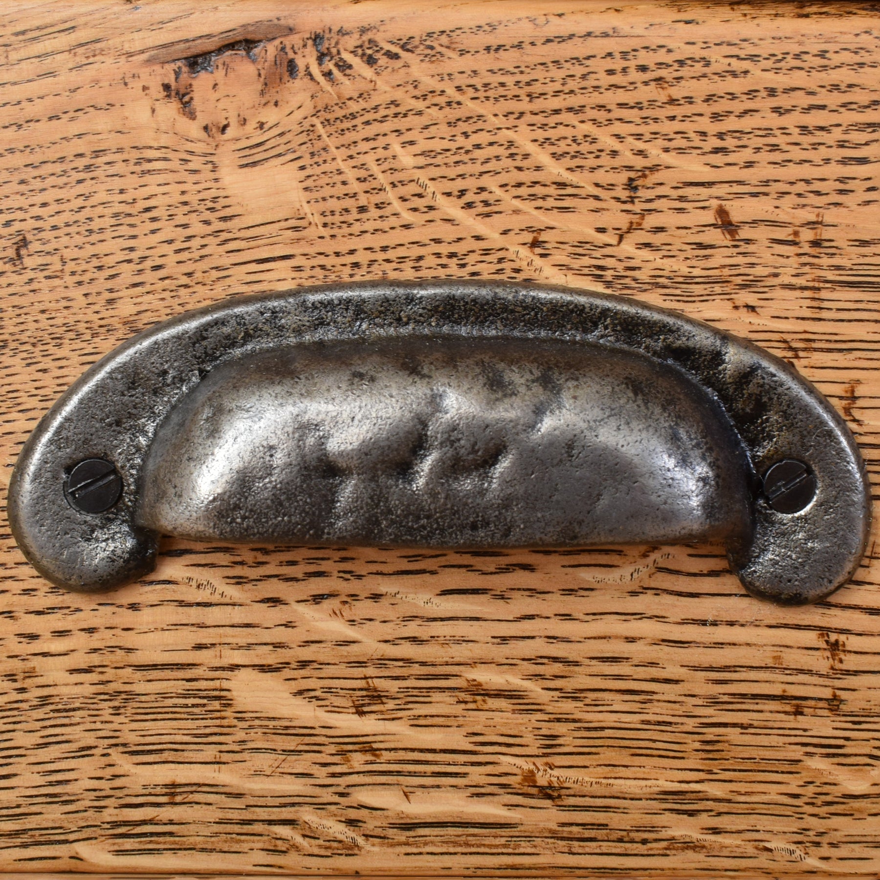 The previous darker finish has been carefully stripped, and multiple coats of hard-wearing matte lacquer have been applied, creating a durable and long-lasting surface that accentuates the wood’s natural tones. This item is made entirely from solid oak, with the original knots and character marks left visible, celebrating the natural imperfections that make each piece unique.