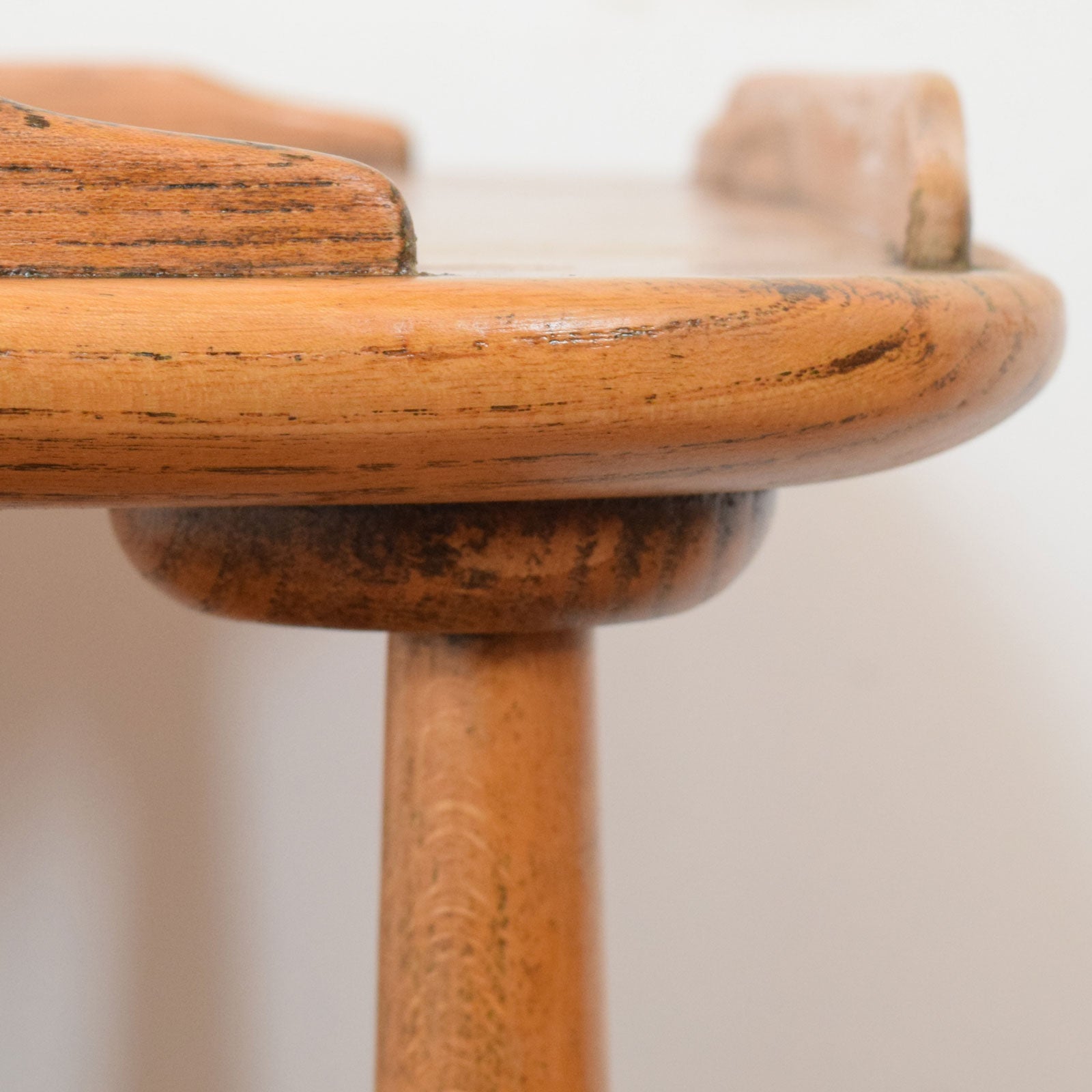 This classic three-tier tea trolley is made from solid elm with beech legs, showcasing Ercol’s signature craftsmanship with beautifully shaped shelves and softly rounded edges. Each of the three shelves is framed with gently upturned lips, helping to keep items in place. The elegant turned supports taper slightly for a light, balanced look, while the original castors add mobility. The top surface is subtly curved along the sides, giving the trolley a refined and well-proportioned appearance.