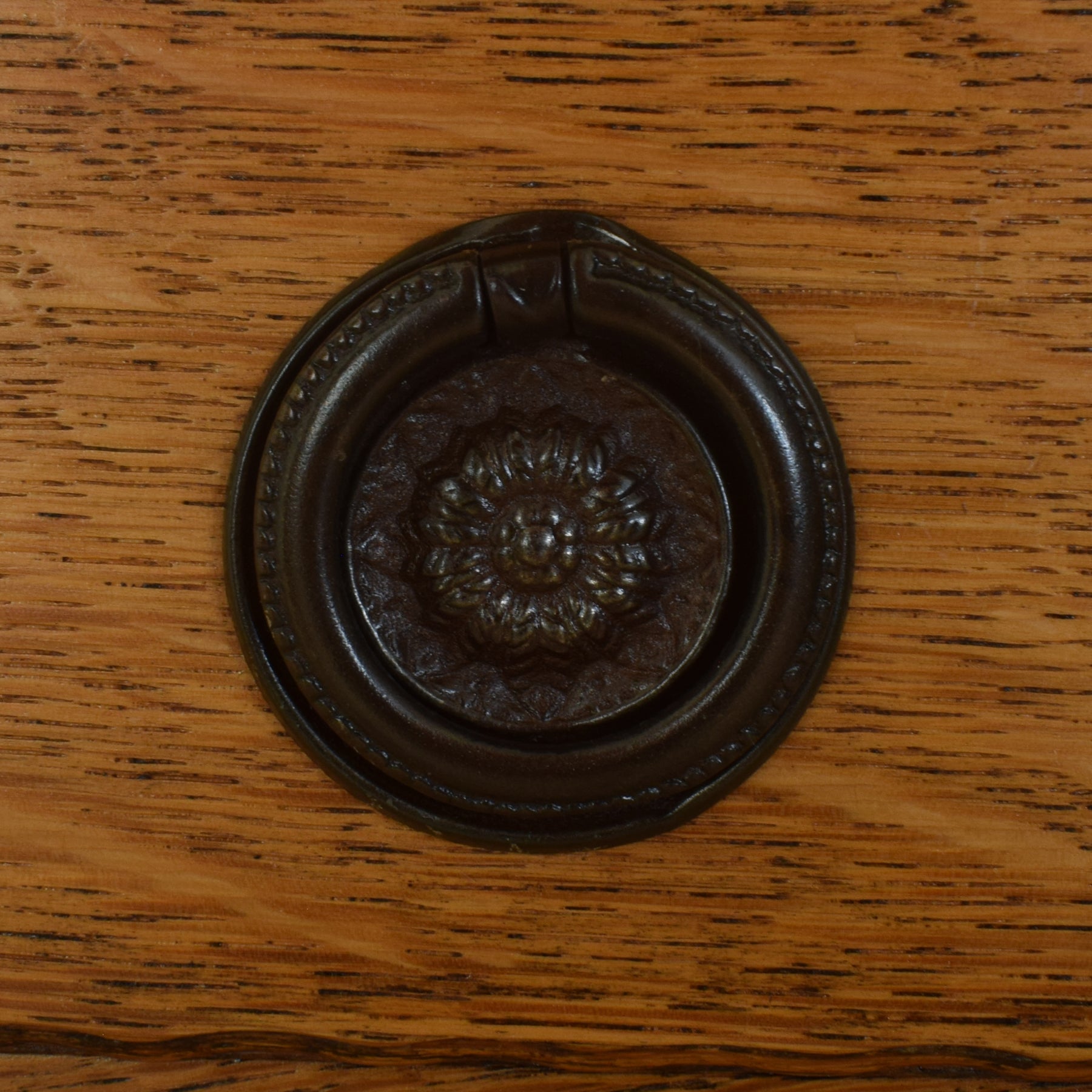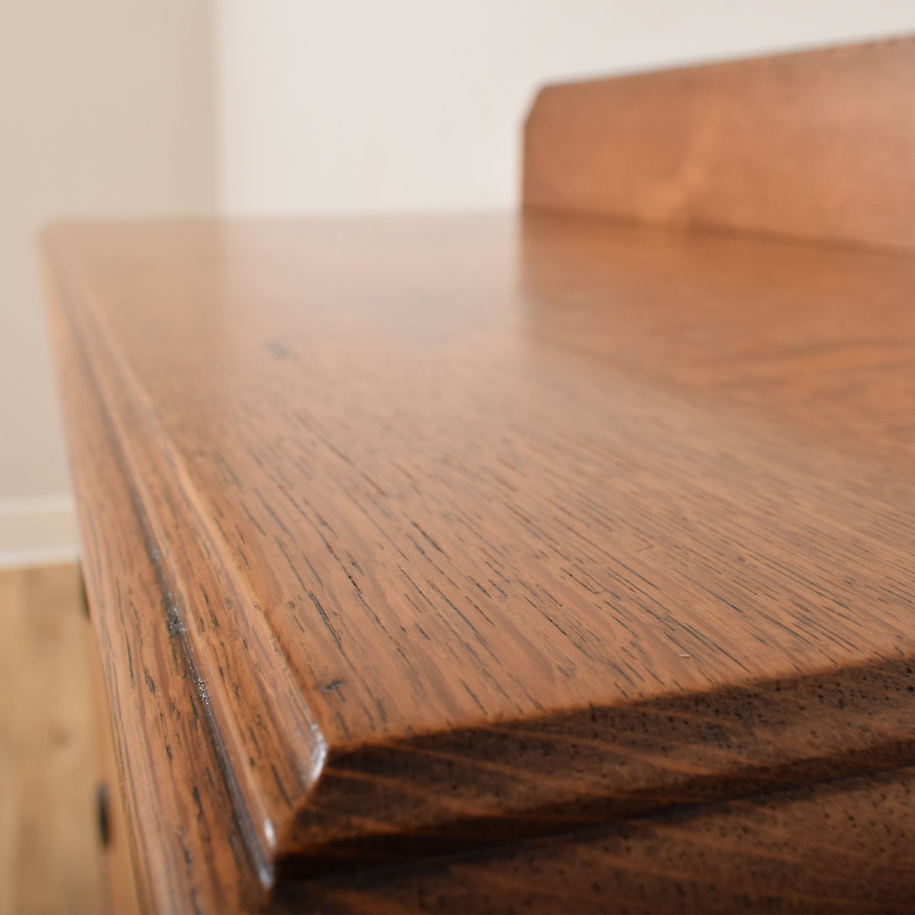 The previous darker finish has been carefully stripped away, and multiple coats of hard-wearing matte lacquer have been applied, enhancing the natural beauty of the oak grain and ensuring lasting protection. This item is made from solid oak, with a plywood rear panel for added stability. There is a dark mark on the top surface that we have been unable to remove, this is visible in the accompanying photographs.
