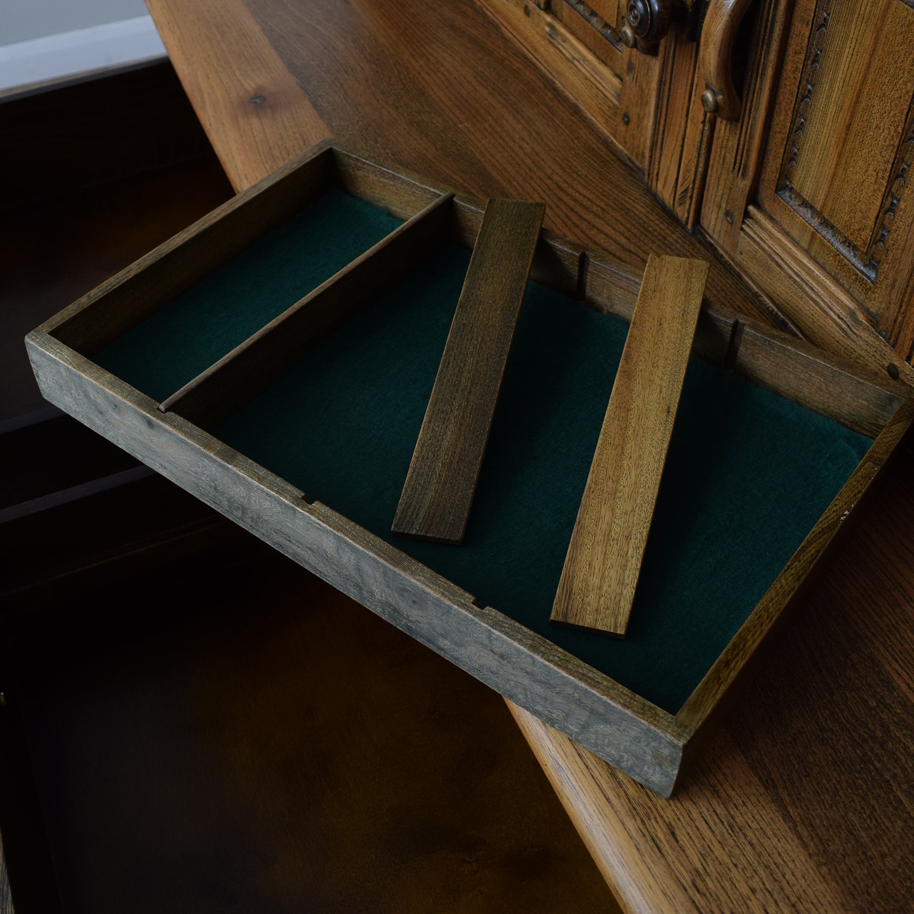We have stripped this traditional piece back to the rich tones of the natural wood and lacquered it to reveal the true natural beauty of the grained wood. This piece is made from predominantly solid pieces of elm with some veneered pieces and plywood back and draw bases.