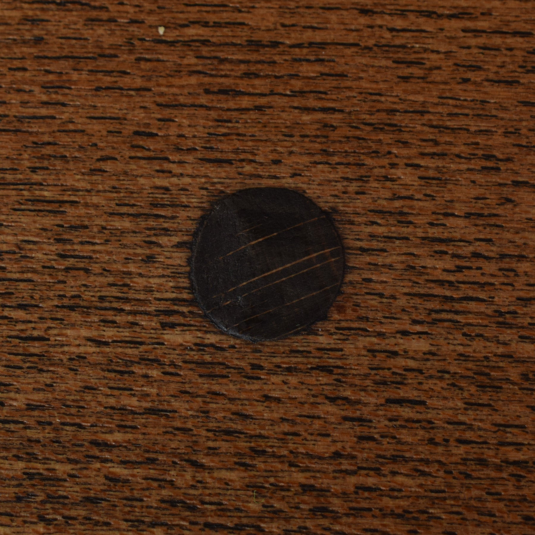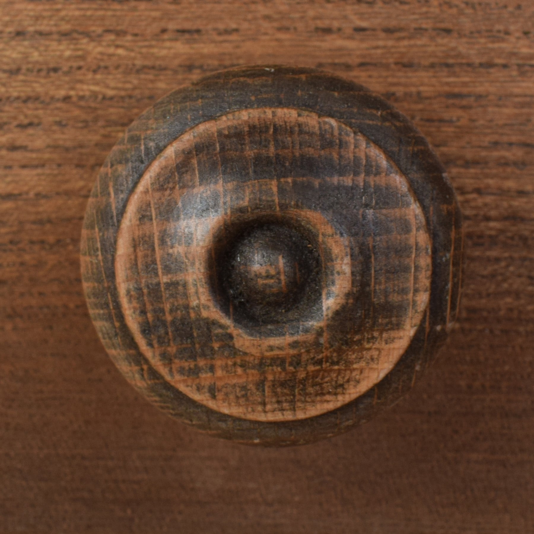 The previous finish has been stripped back, and multiple coats of hard-wearing matte lacquer have been applied, providing a durable long-lasting finish while enhancing the natural elm grain. This item is made using solid elm, with a plywood rear panel and plywood drawer bases.