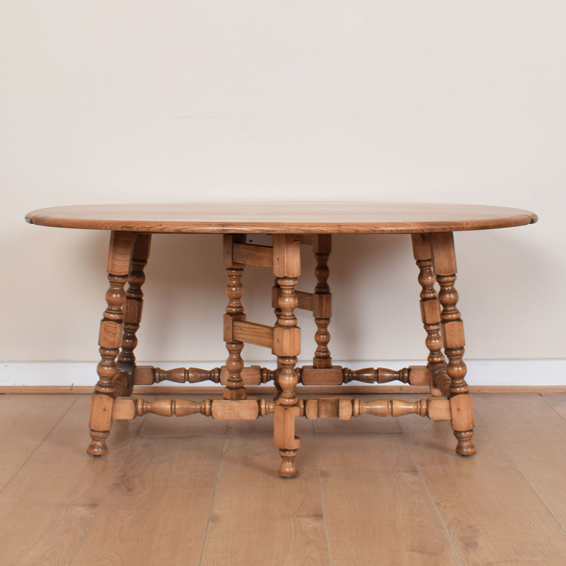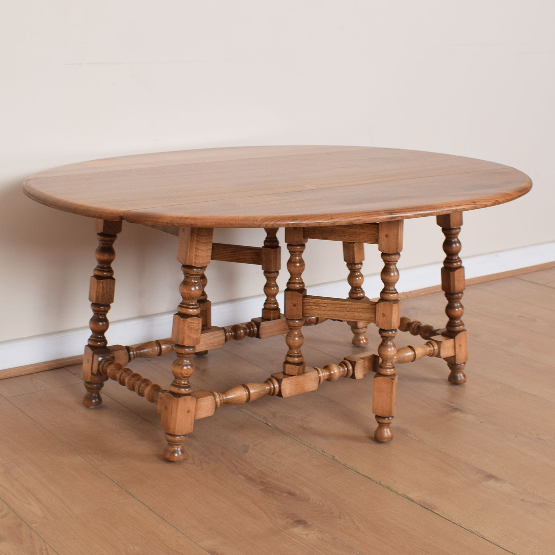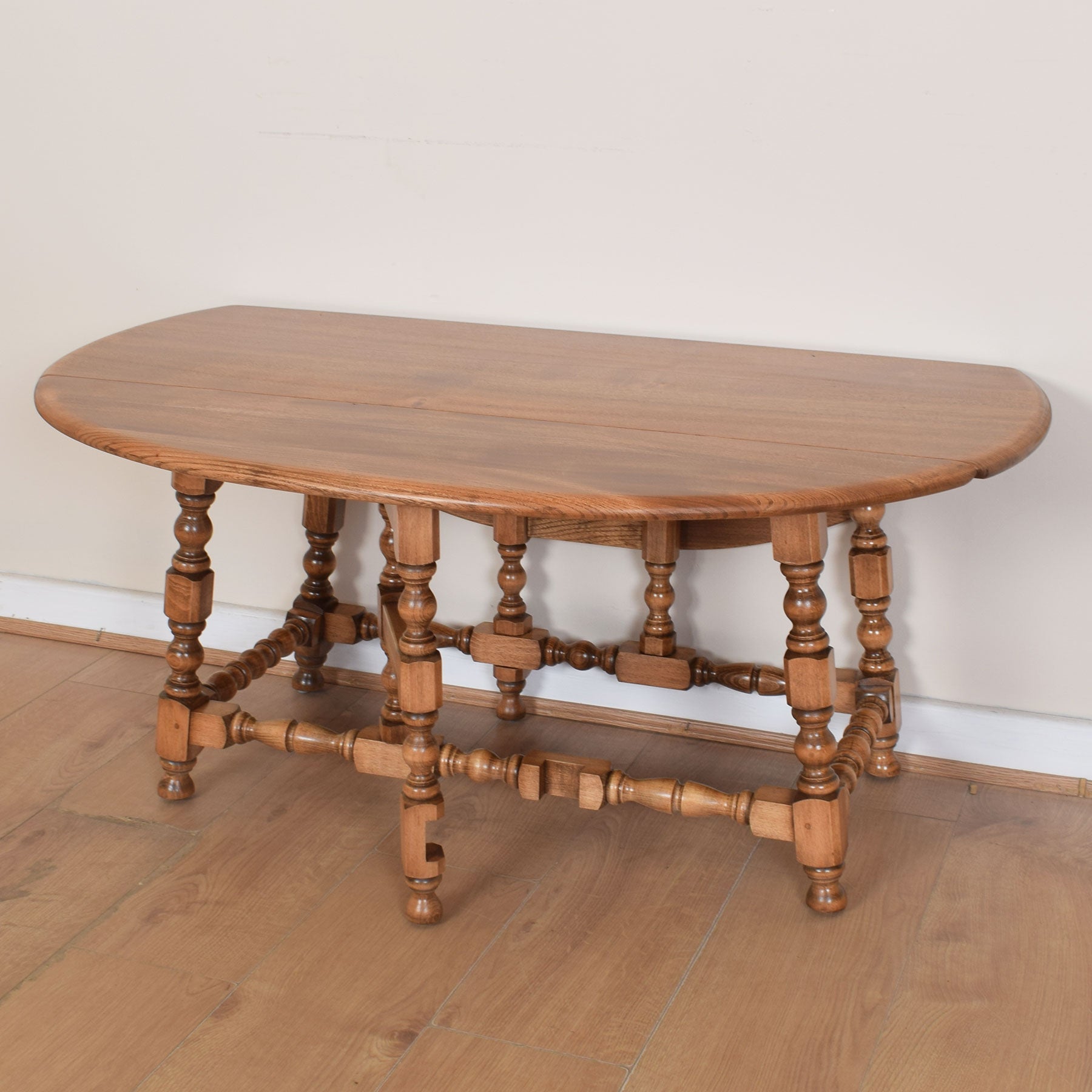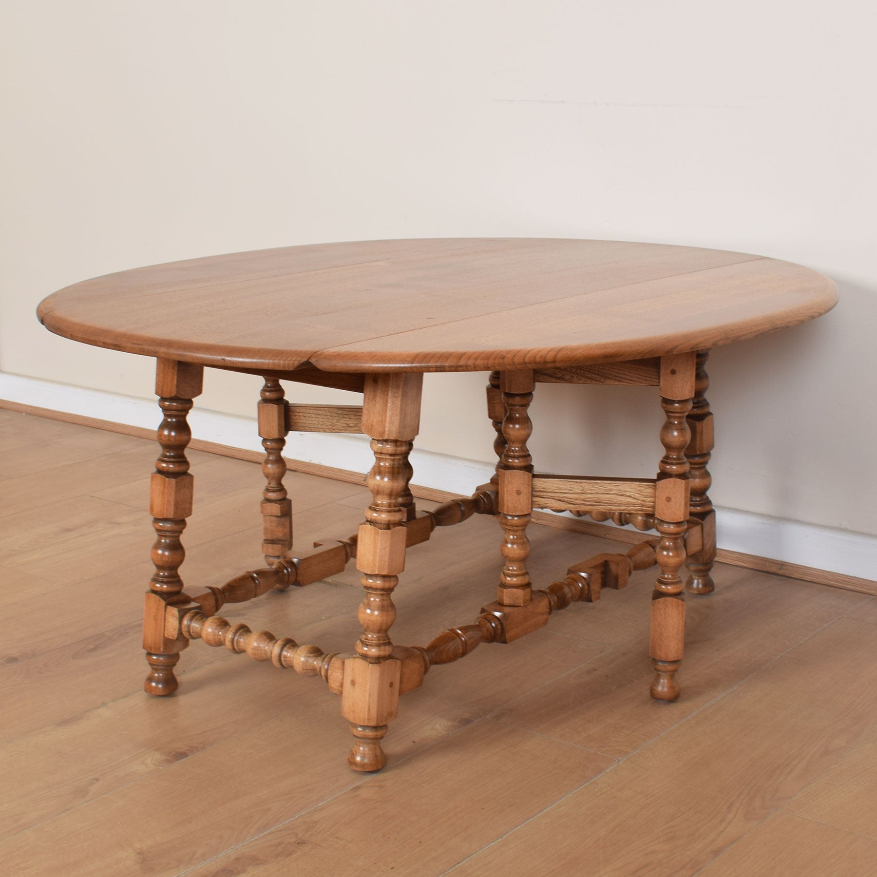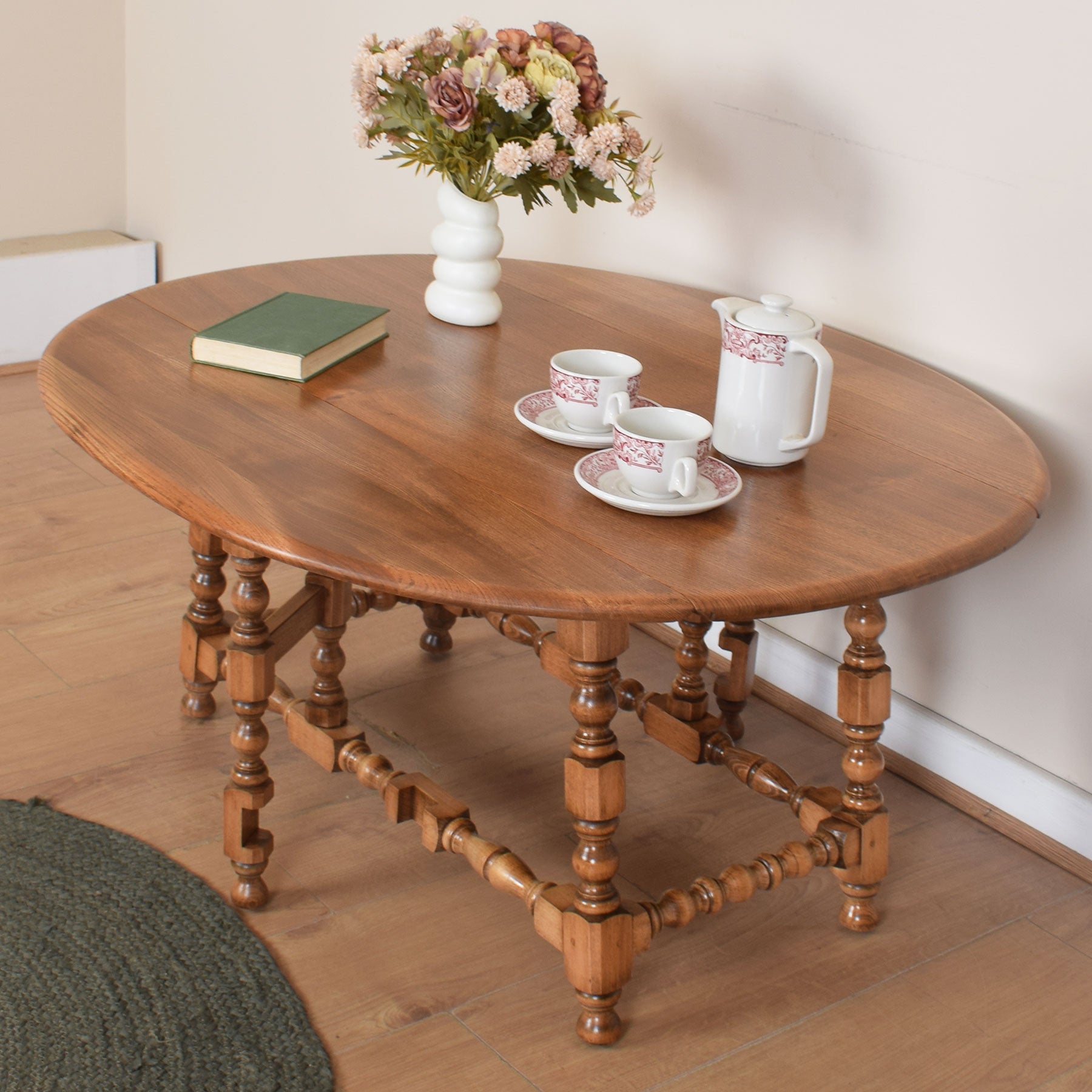 The richly grained drop-leaf tabletop offers ample space to serve tea or coffee, along with a variety of light refreshments. Each extending leaf can be raised or lowered independently as required, supported securely in place by the traditional gate-leg frame. This quality-made Ercol piece is solid elm throughout.