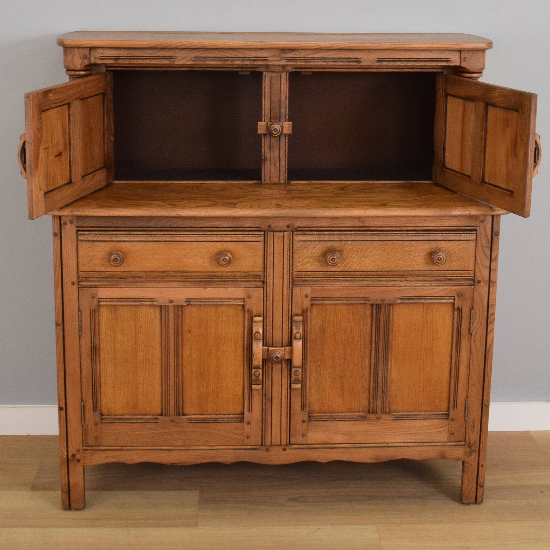 This classic Court Cabinet from respected and much sought-after UK furniture manufacturer Ercol would be an attractive and practical addition to the family dining room or lounge.