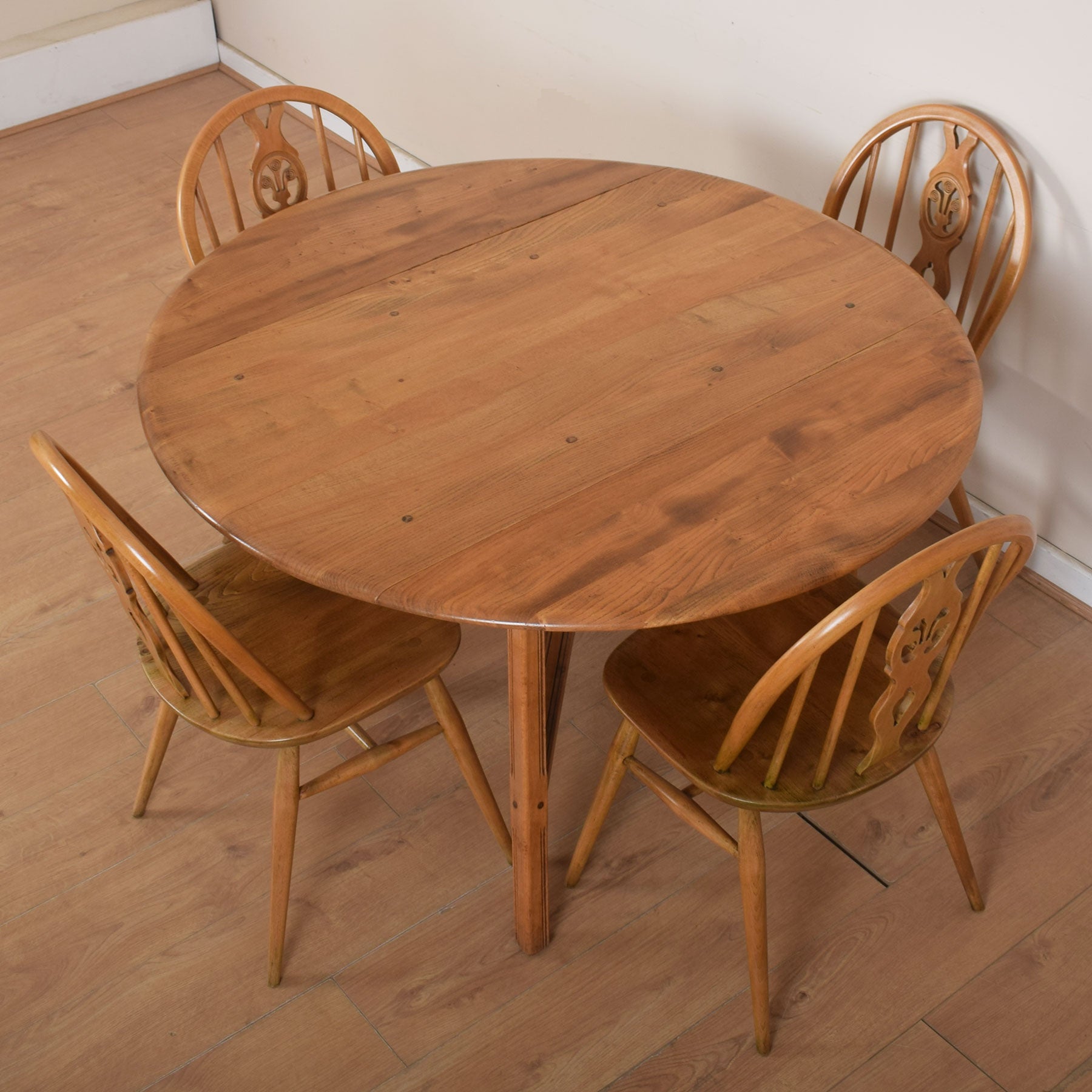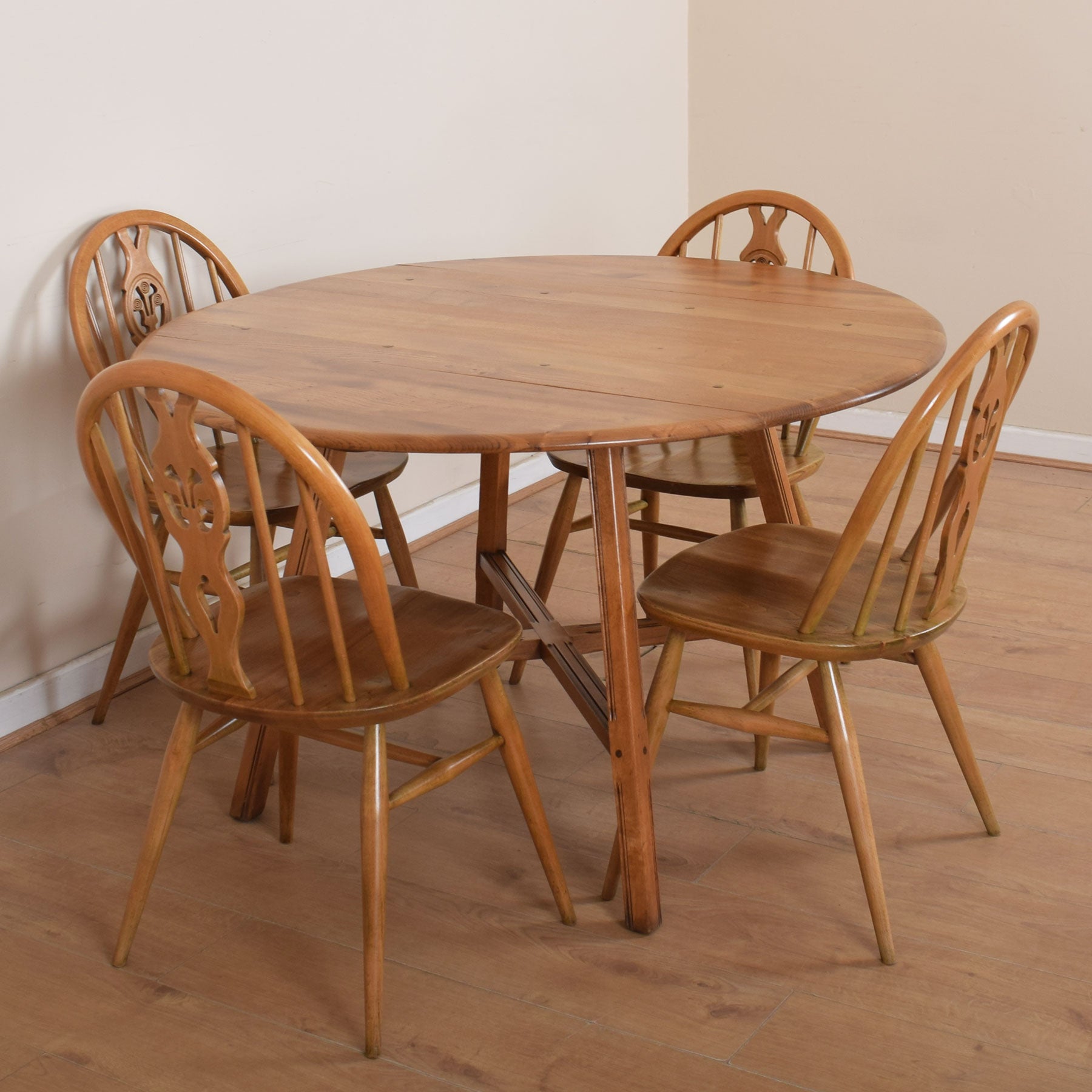 This Ercol dining set adds warmth and harmony to a dining area, establishing a welcoming space for daily meals and casual gatherings. The pairing of a compact drop-leaf table with four coordinating chairs makes it especially ideal for kitchens or dining rooms where adaptability and comfort are essential.