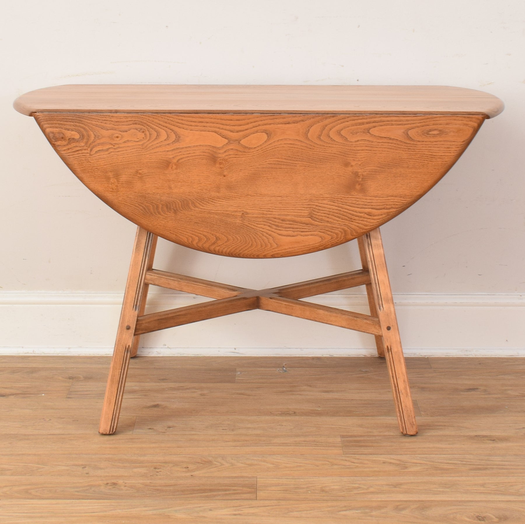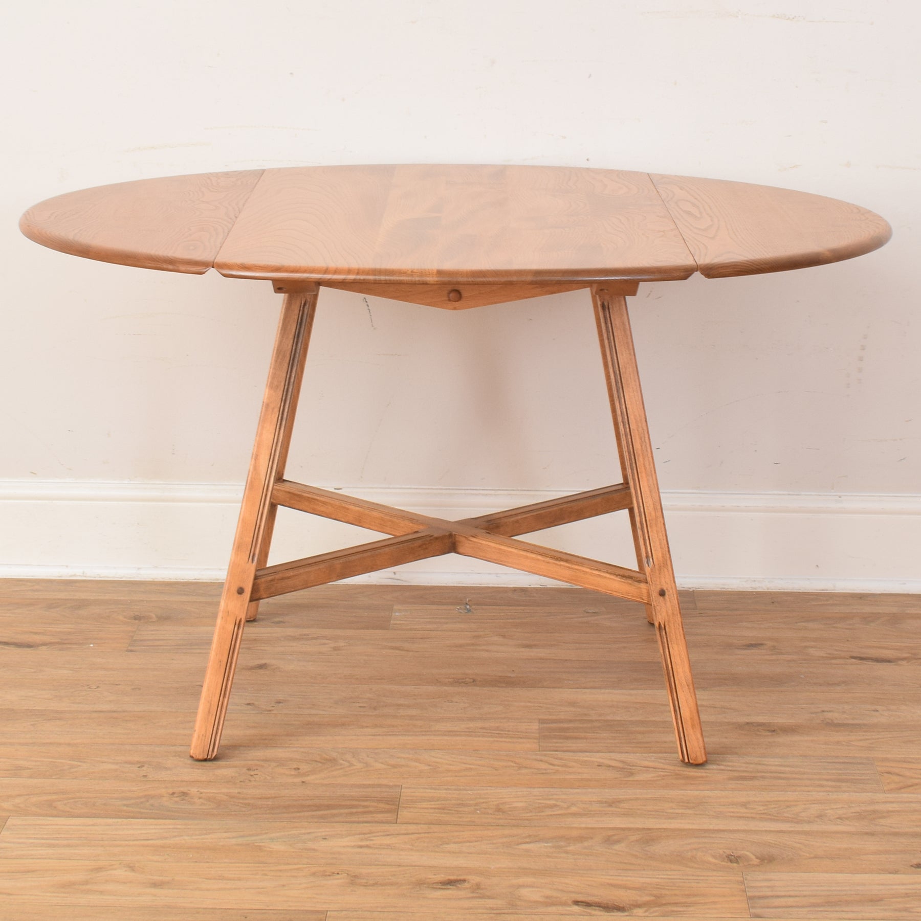 Blending craftsmanship with functionality, this Ercol drop-leaf dining set offers a stylish and adaptable solution for both compact and larger dining areas.