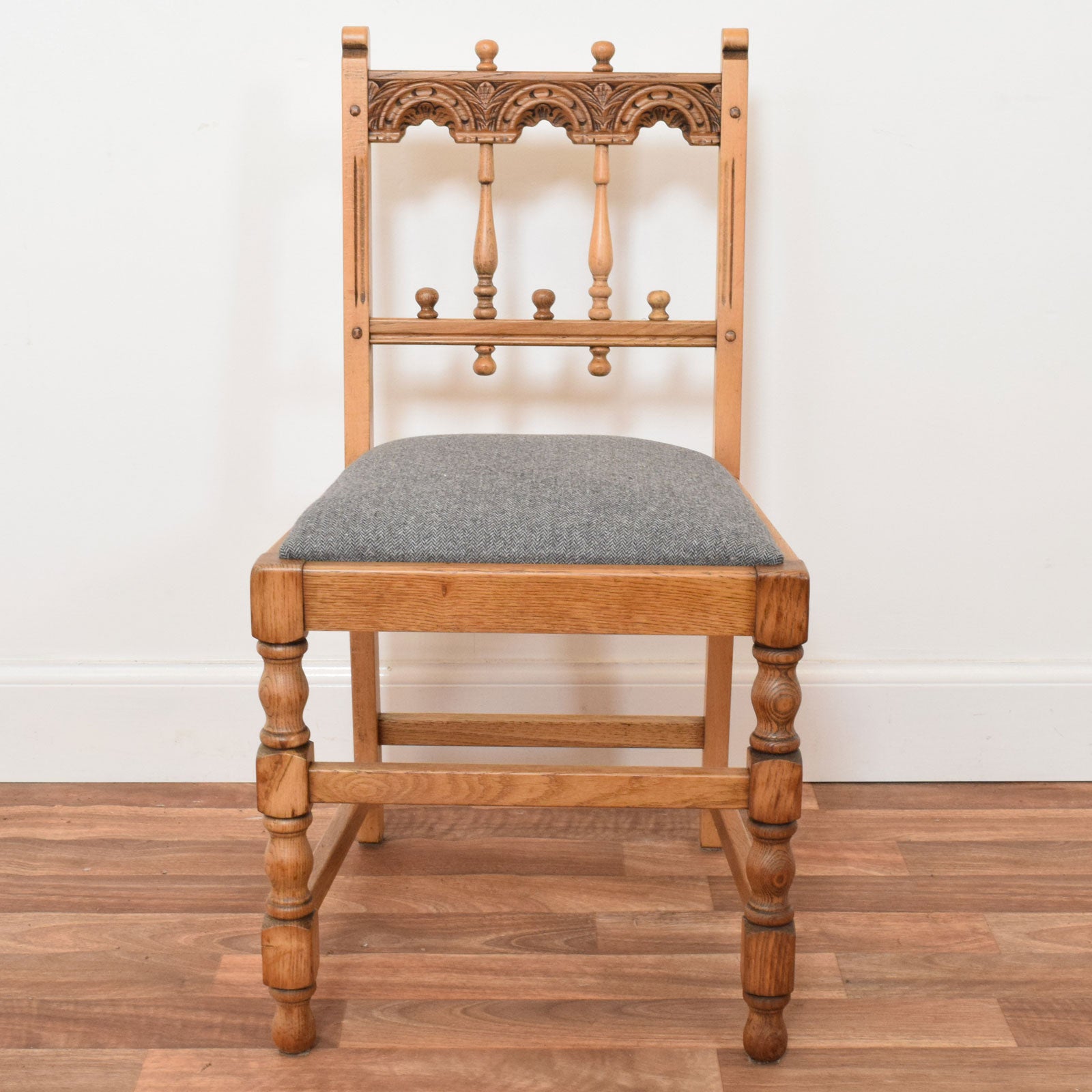 The previous finish has been carefully stripped from both the table and chairs, and multiple coats of hard-wearing matte lacquer have been applied, providing a durable, long-lasting finish while accentuating the natural grain of the elm. The seats have been professionally reupholstered in a neutral grey fabric, offering a clean and refreshed appearance. The set is constructed from solid elm and beech, with elm forming the tabletop and beech used for the frames and structural components, in keeping with traditional Ercol craftsmanship. There are minor age-related marks visible in places, consistent with its history and use, but these do not detract from the overall presentation or functionality of the set.