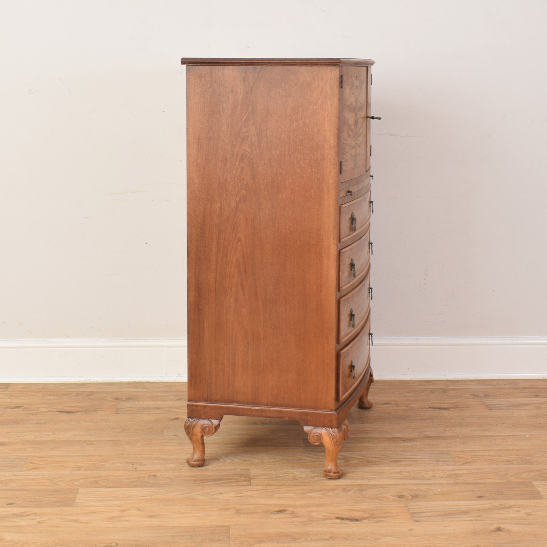 This tallboy adds a refined and practical touch to a bedroom or living space, offering useful storage within a compact and elegant form. Its tall proportions make it well suited to smaller rooms, providing generous capacity without overwhelming the space, while the warm walnut tones bring a sense of character and comfort to the interior.