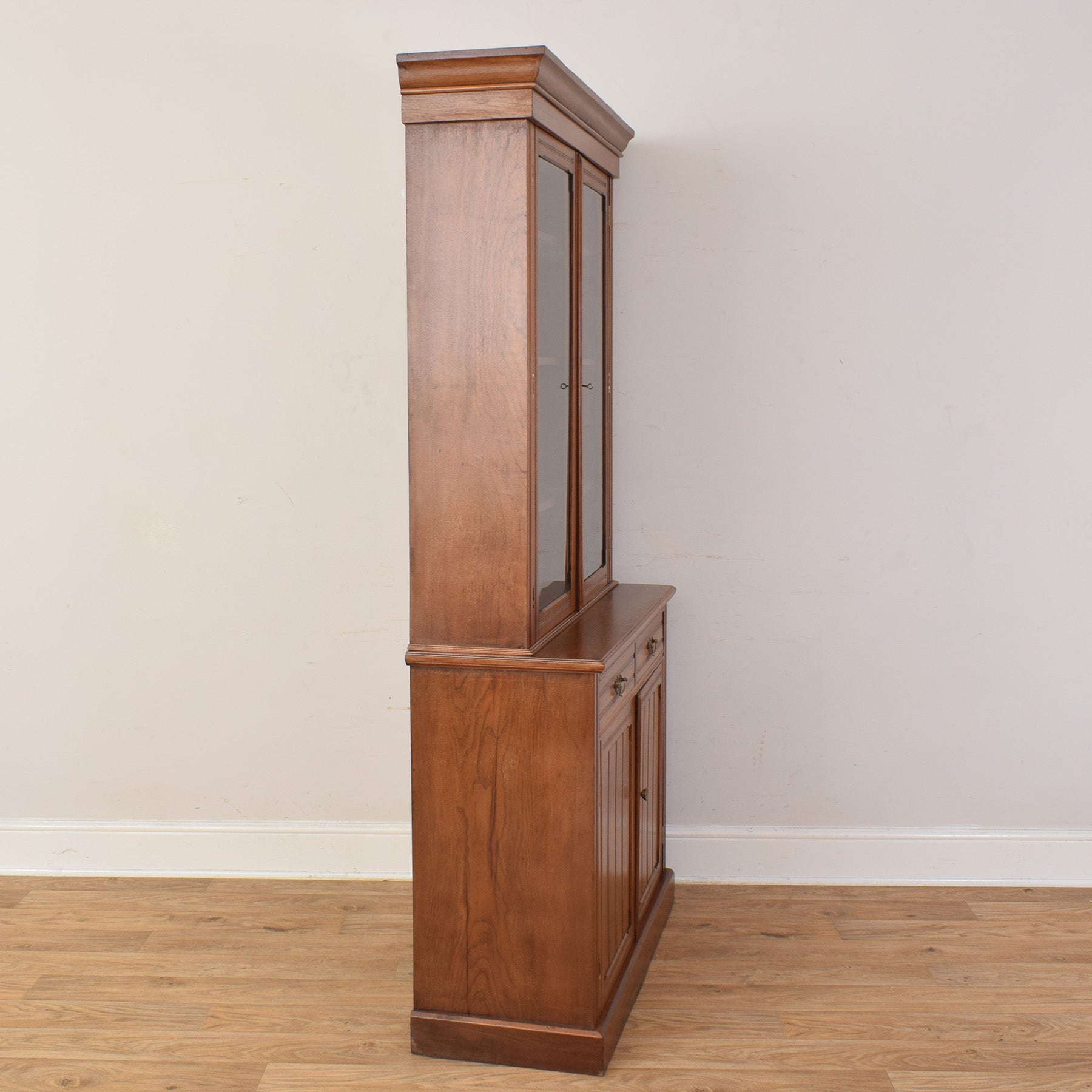 A well-chosen display cabinet can bring warmth and character to a living or dining room, offering both practical storage and an elegant way to showcase treasured pieces. A glazed cabinet such as this creates a balanced focal point, combining enclosed display space with useful cupboard storage below.