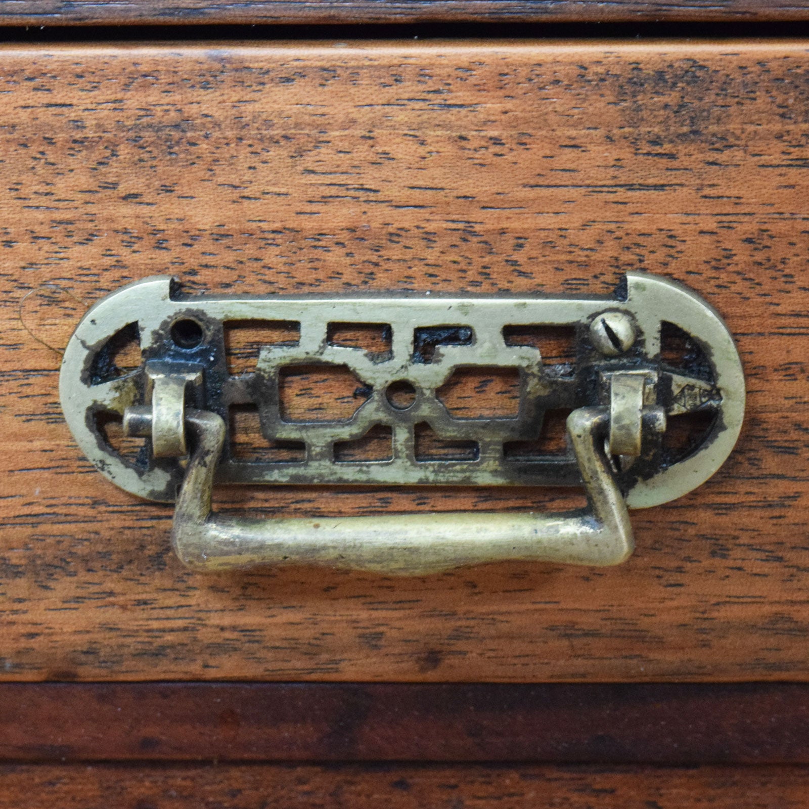 The previous finish has been carefully stripped, and multiple coats of hard-wearing matte lacquer have been applied, providing a durable, long-lasting finish while also enhancing the natural mahogany grain. The interior has been cleaned and refreshed, and there are minor age-related marks consistent with its history, which add to its character. This item is made from mahogany, with a plywood drawer base and plywood back panel.