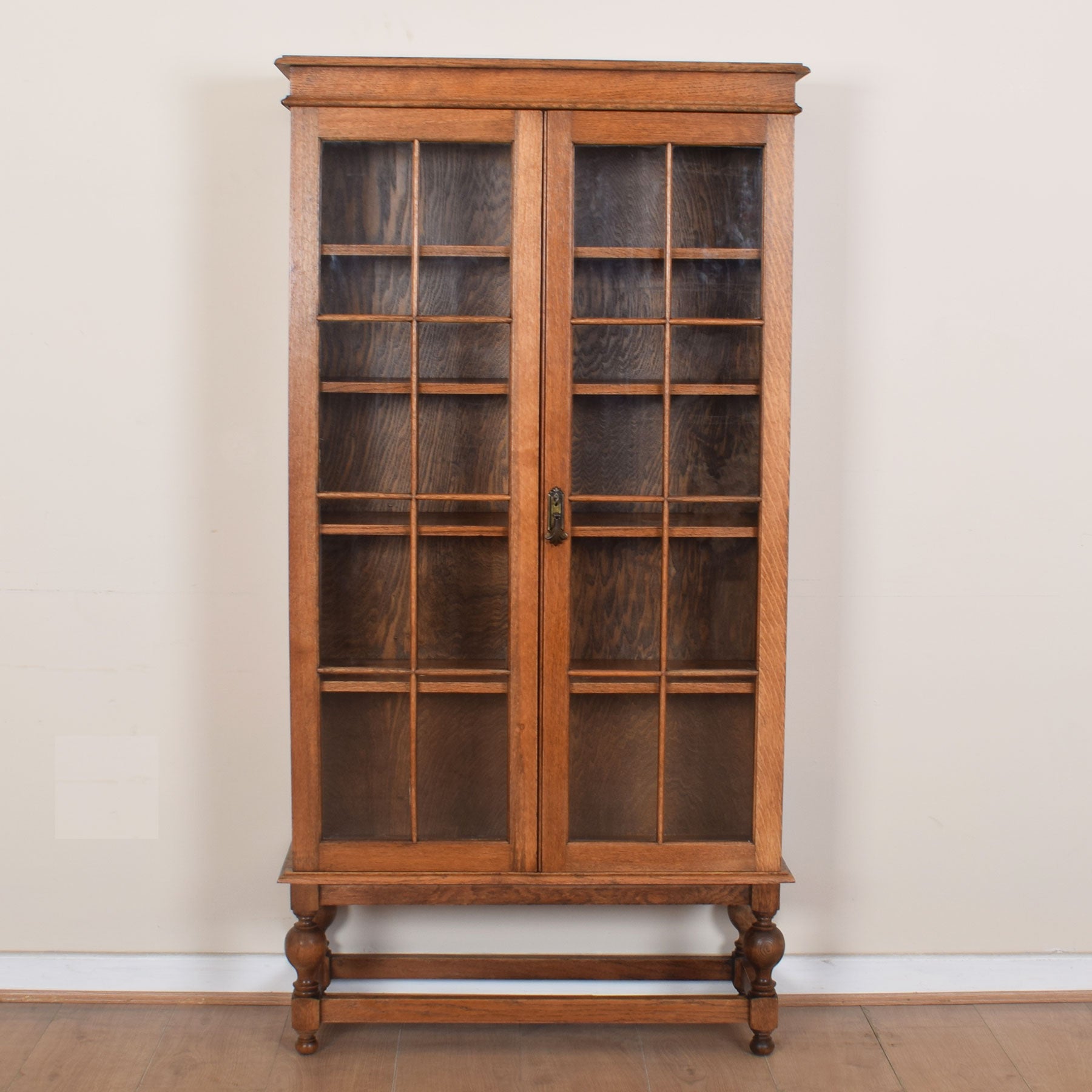 This beautiful oak bookcase with glazed doors is sure to be an attractive and useful addition to the lounge, dining room, or hallway.