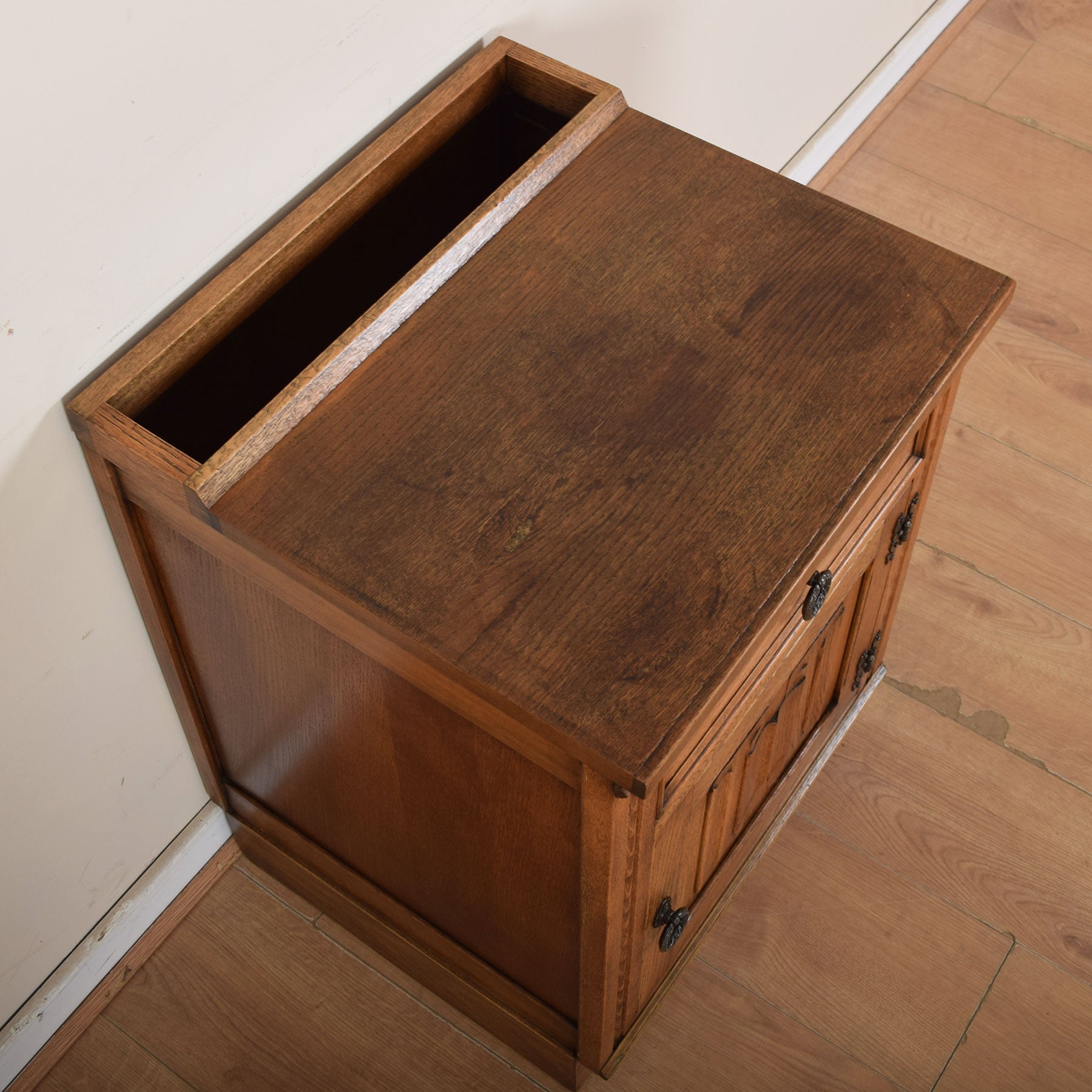 This oak cabinet and umbrella stand will be ideal beside the bed or as a useful small cupboard in the hallway, landing or other space in the home.
