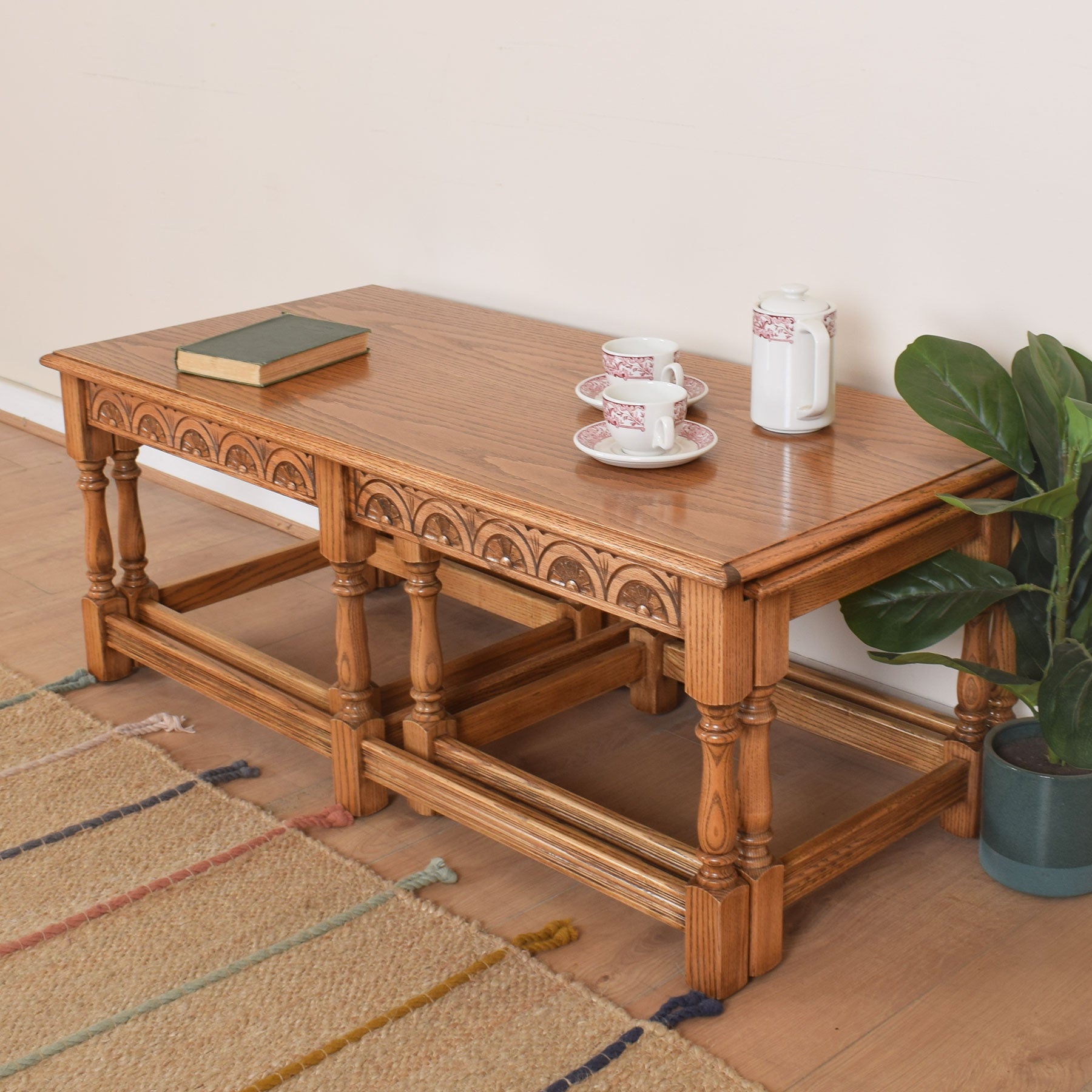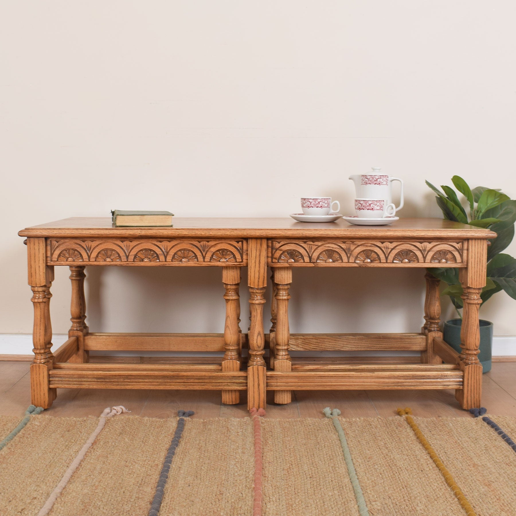 With elegant carved details and turned leg frames, these lovely tables will complement a range of decorating styles, making this nest an ideal addition to the family home.