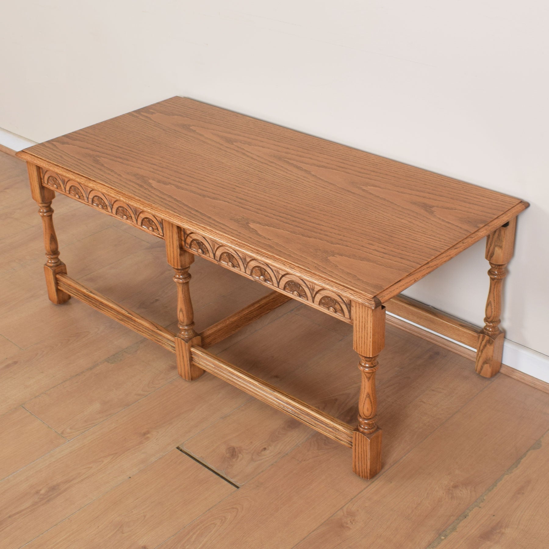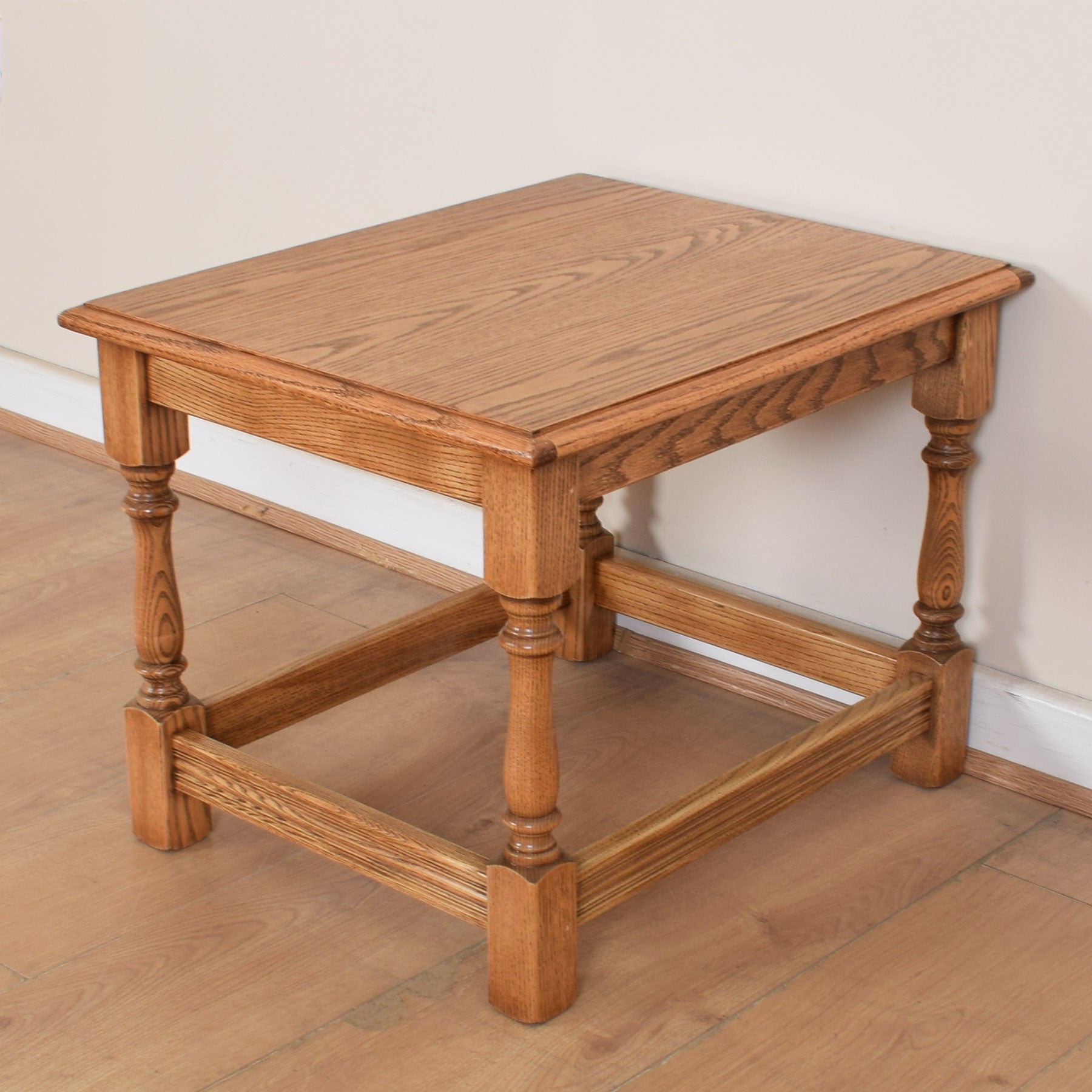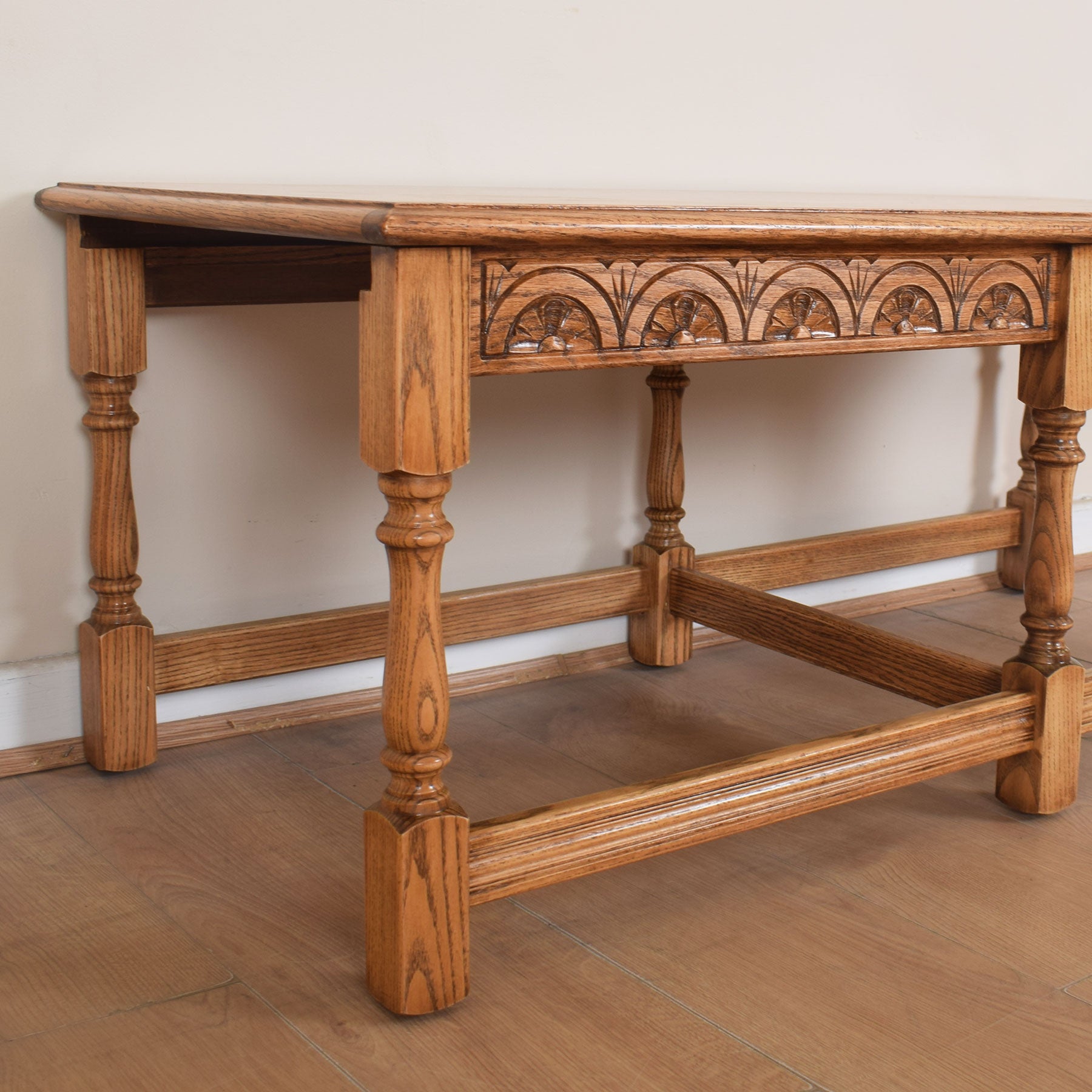 The larger coffee table has a generous amount of space to serve tea or coffee, while the smaller tables are ideal for resting a drink or a favourite reading book. When not in use, the two smaller tables slide into the frame of the larger, enabling this versatile set to be moved and stowed as a single unit. This quality-made piece is solid oak.