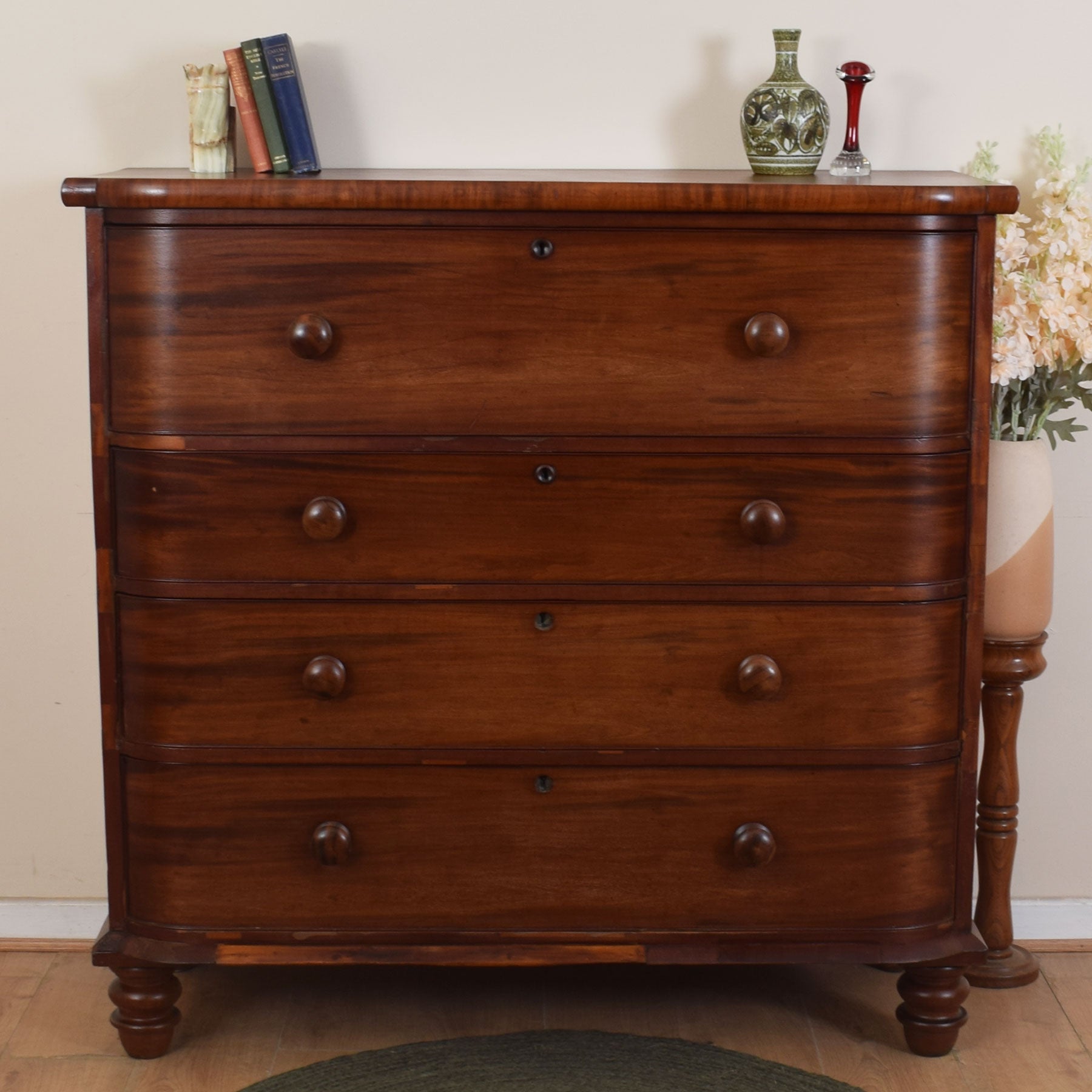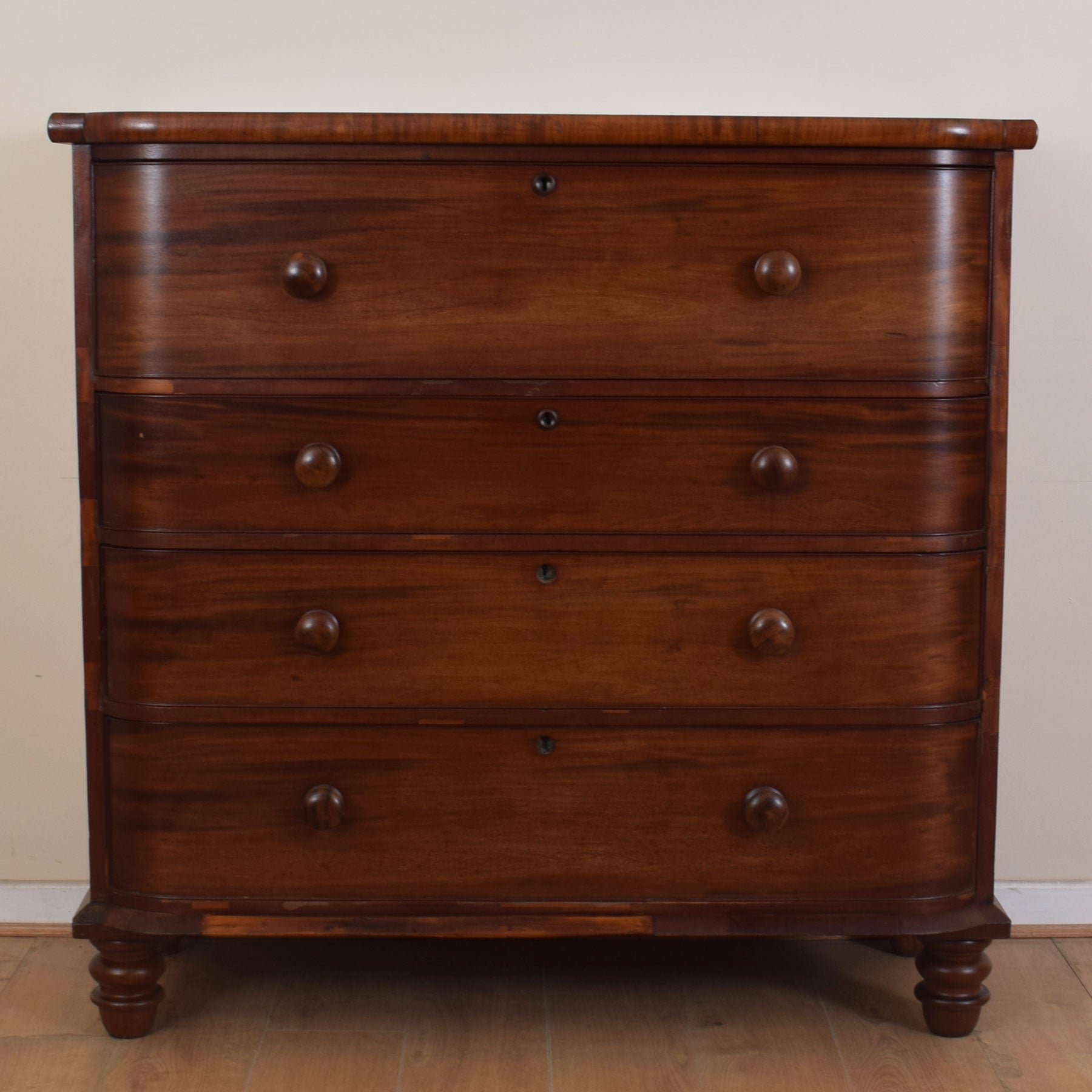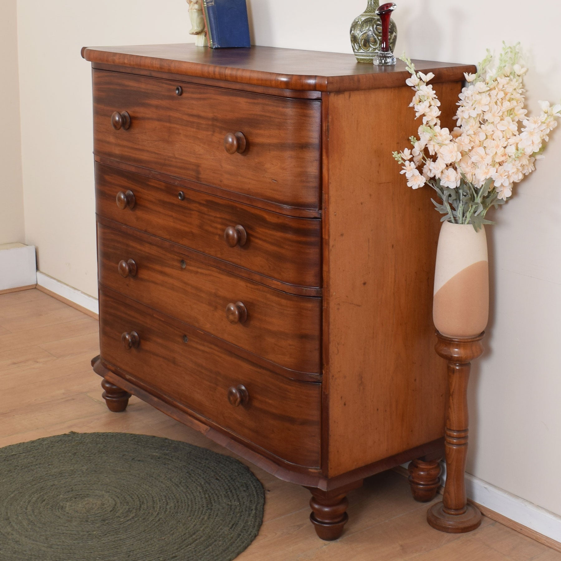 With its rich mahogany colour, nicely turned front feet, and original wooden handles, this chest of drawers will complement traditional and modern decorating styles and is sure to be a much-valued addition to the family home.