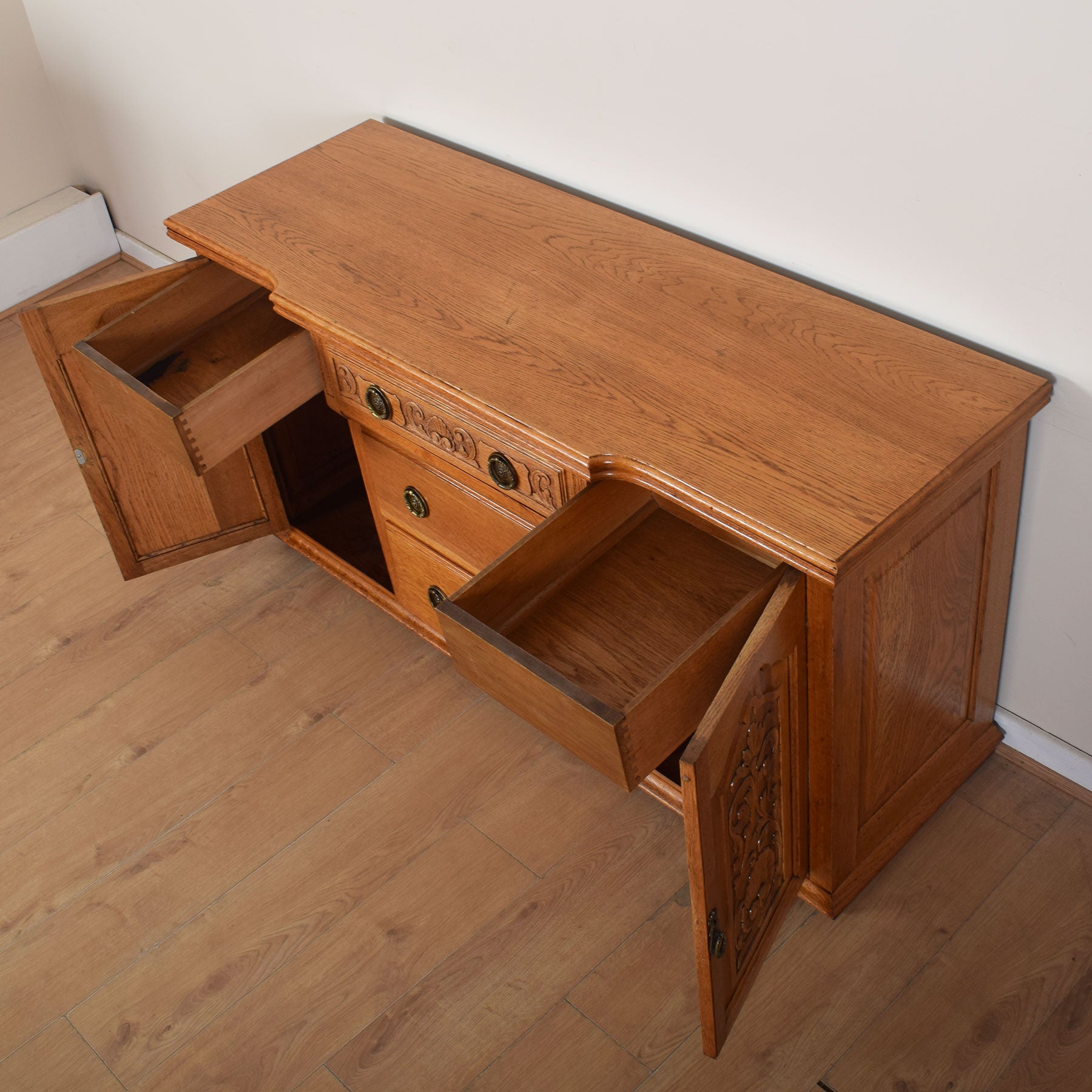 This impressive oak sideboard offers a generous amount of storage in an elegant cabinet that is sure to be a much-admired and well-loved addition to the lounge, dining room or other family space.