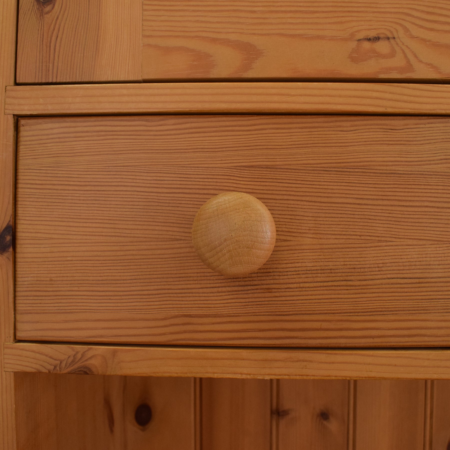 The piece has been treated with a clear wax finish, enhancing the natural grain and knots of the pine while giving it a subtle sheen and a warm, honey-toned colour. This finish not only protects the wood but also accentuates its natural character. The dresser is made entirely from solid pine, including the back and drawer bases, which use pine tongue and groove planks.