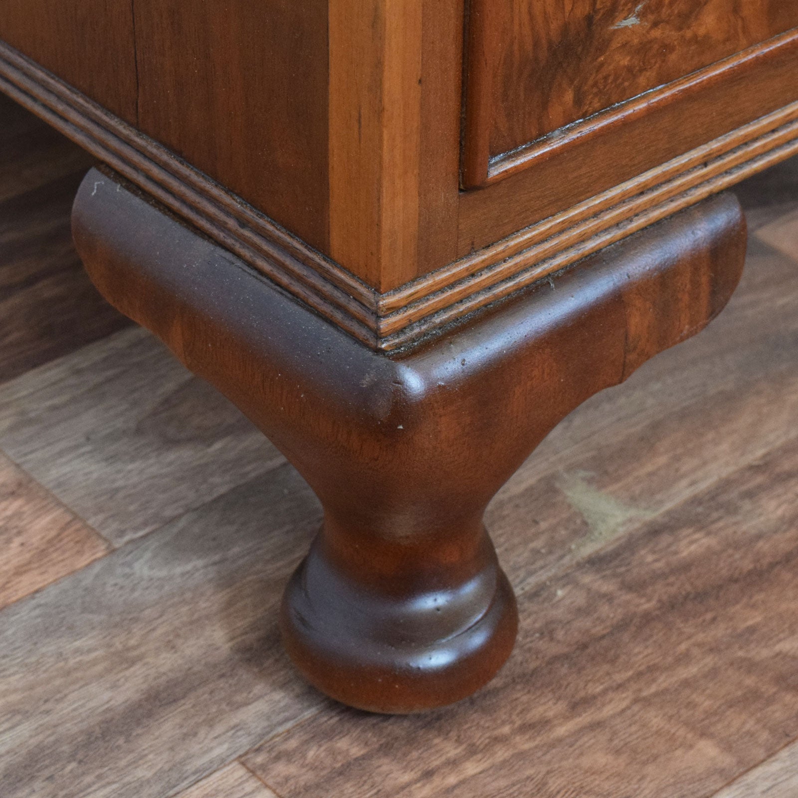 Ideal for a home office or study, this classic pedestal desk combines practical storage with timeless style. Its generous surface and formal proportions make it well-suited to both working and writing environments, while its rich tones and traditional detailing add warmth and character to the room.