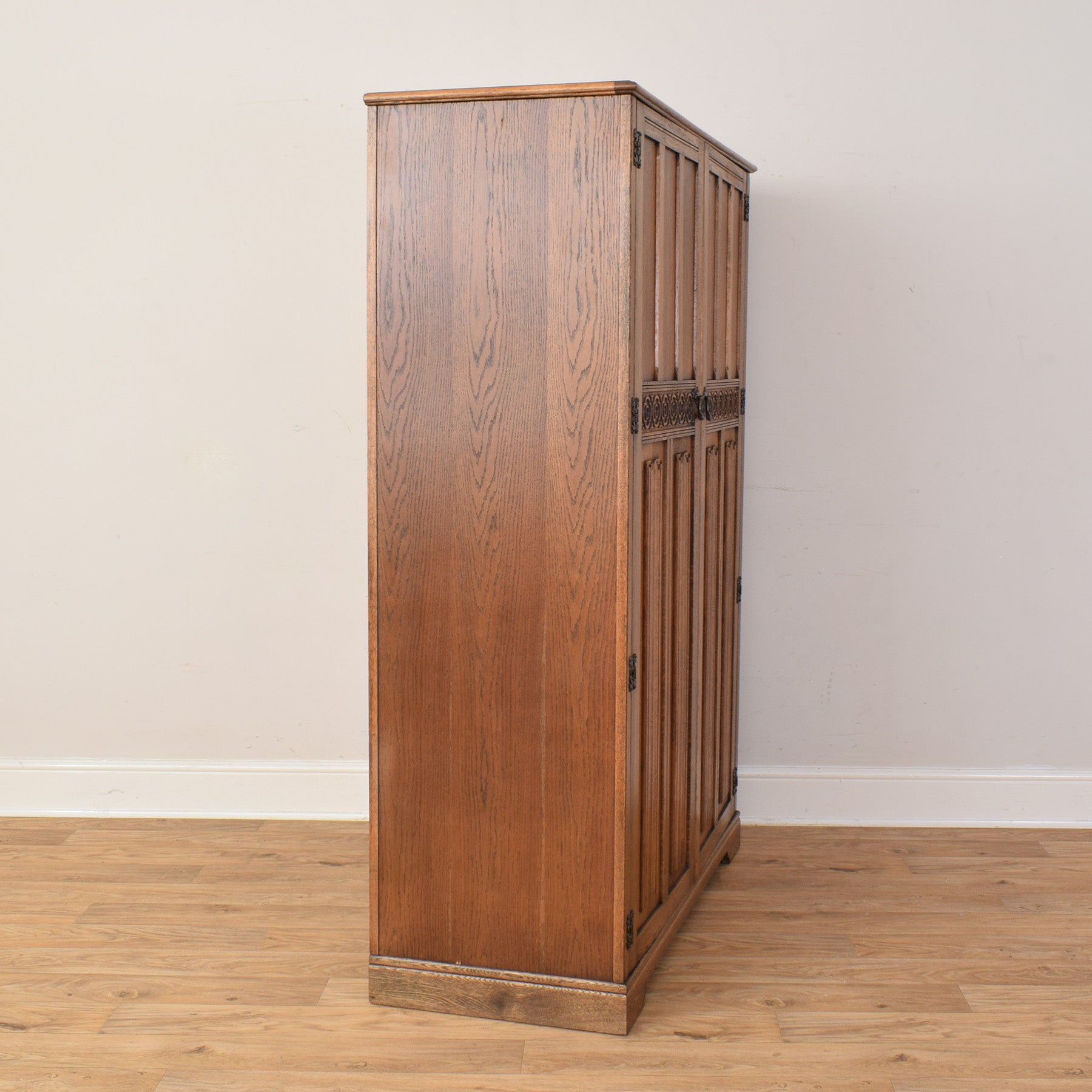 This oak linenfold wardrobe adds a sense of heritage and character to a bedroom, creating a warm and grounded atmosphere. Its traditional styling and natural oak tones make it well suited to period homes, while still working as a statement piece in more eclectic interiors.