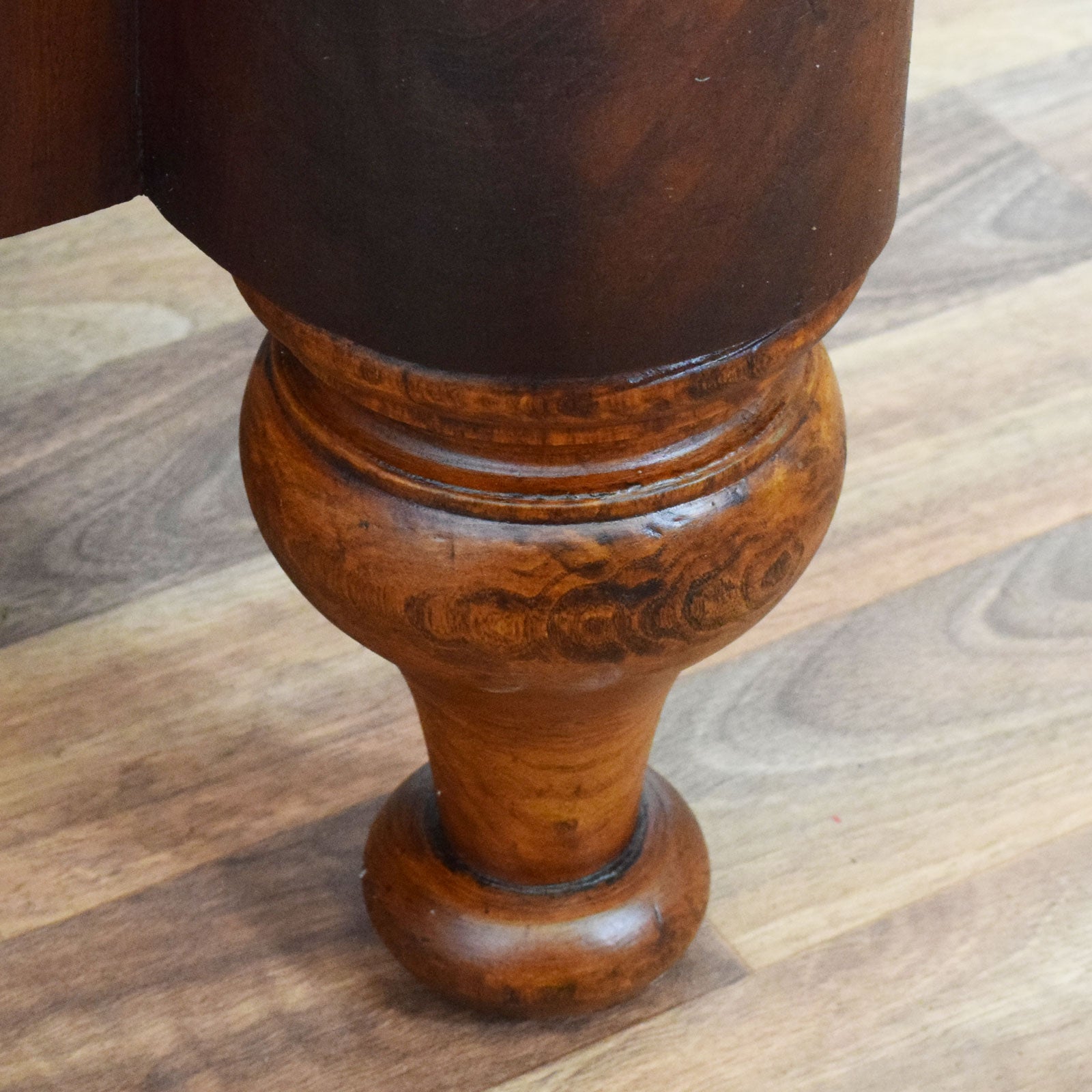This item is constructed from solid mahogany with veneered drawer fronts. The drawer bases and rear panels are made from plywood.