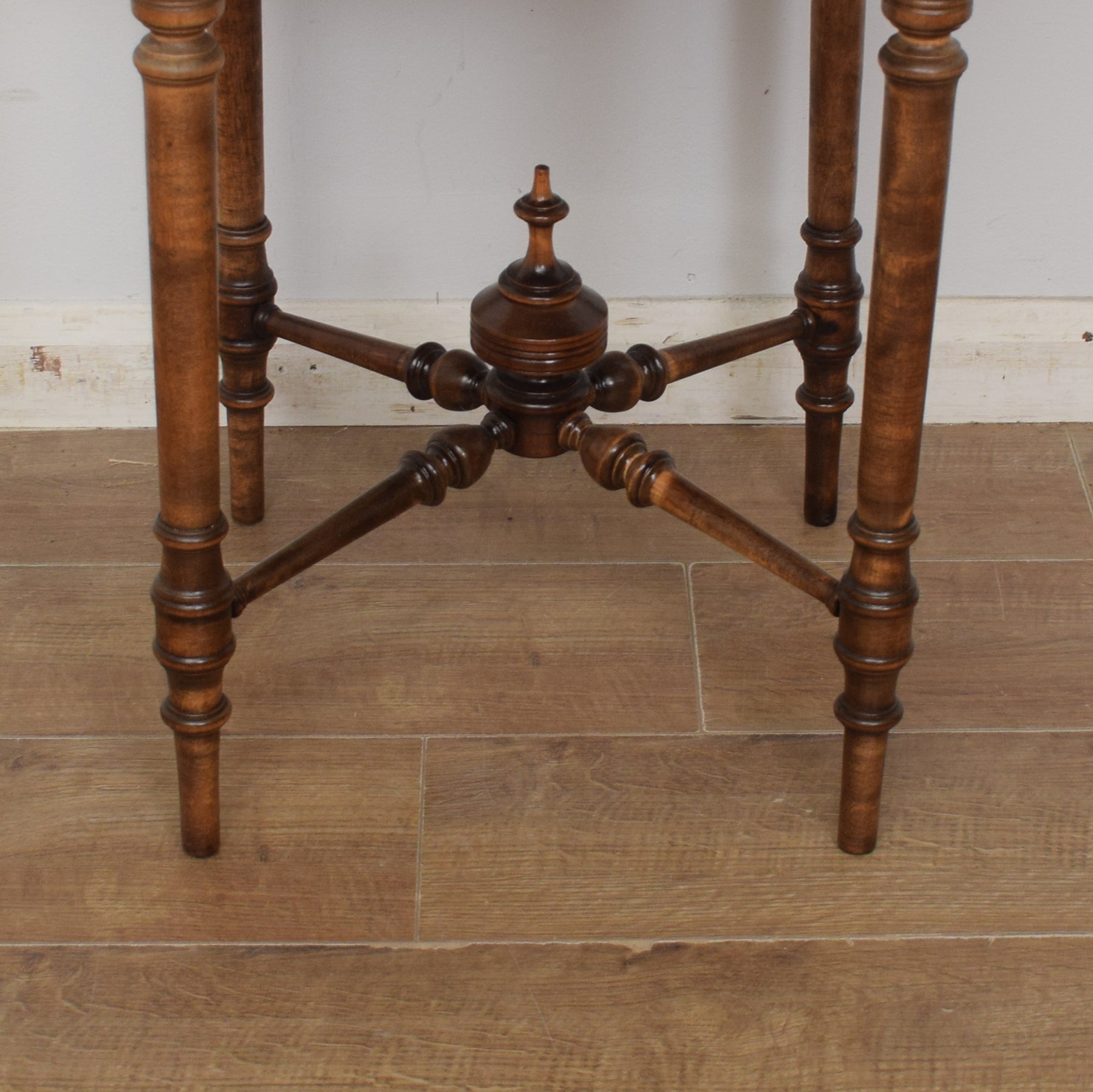 It has a decorative central piece below, which adds to its visual appeal, and attractive turned legs that support the octagonal tabletop.