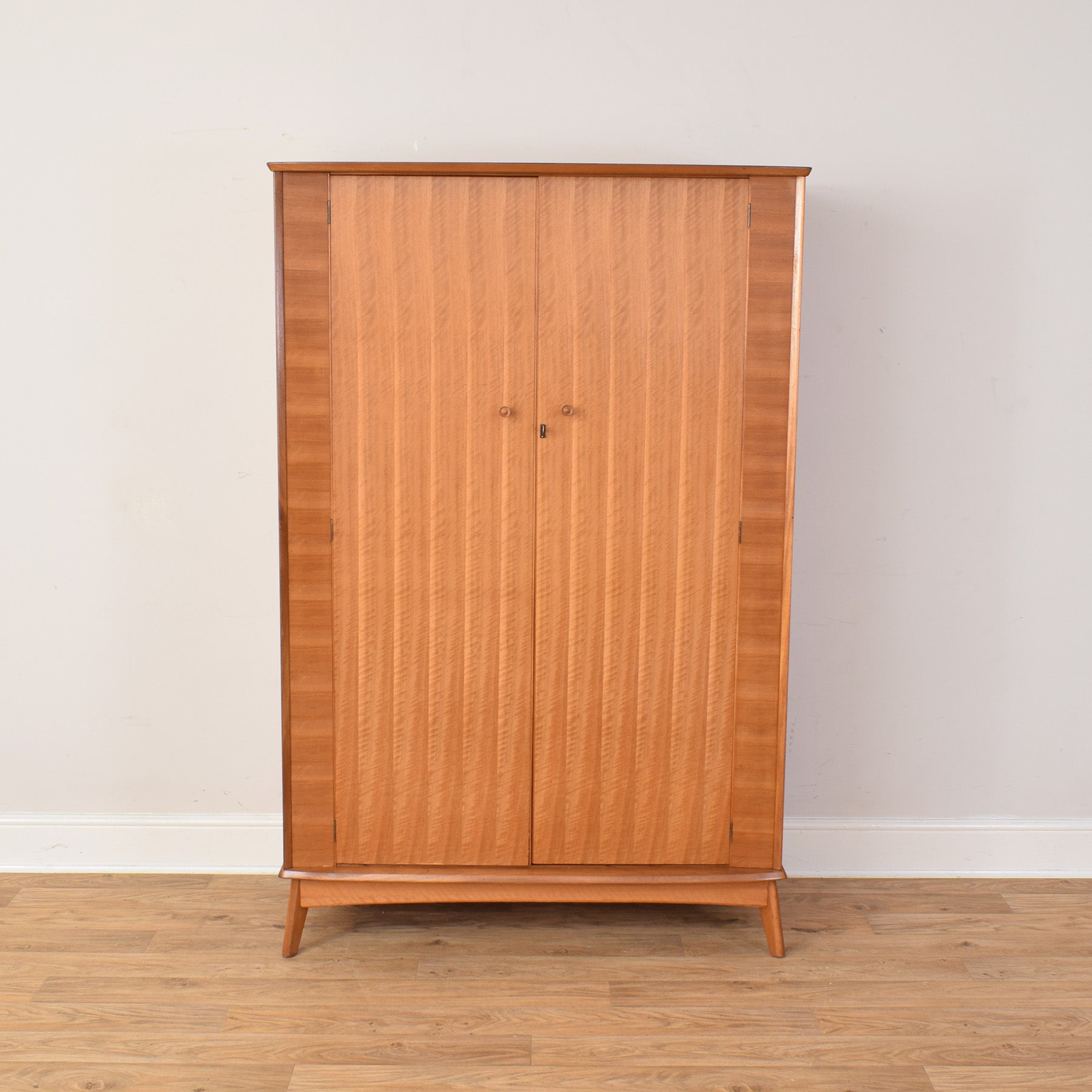 This wardrobe brings a sense of calm and order to a bedroom, offering generous storage while keeping the room feeling uncluttered and balanced. Its warm wood tones and simple mid-century styling help create a relaxed, inviting space that works well in both modern and more traditional interiors.