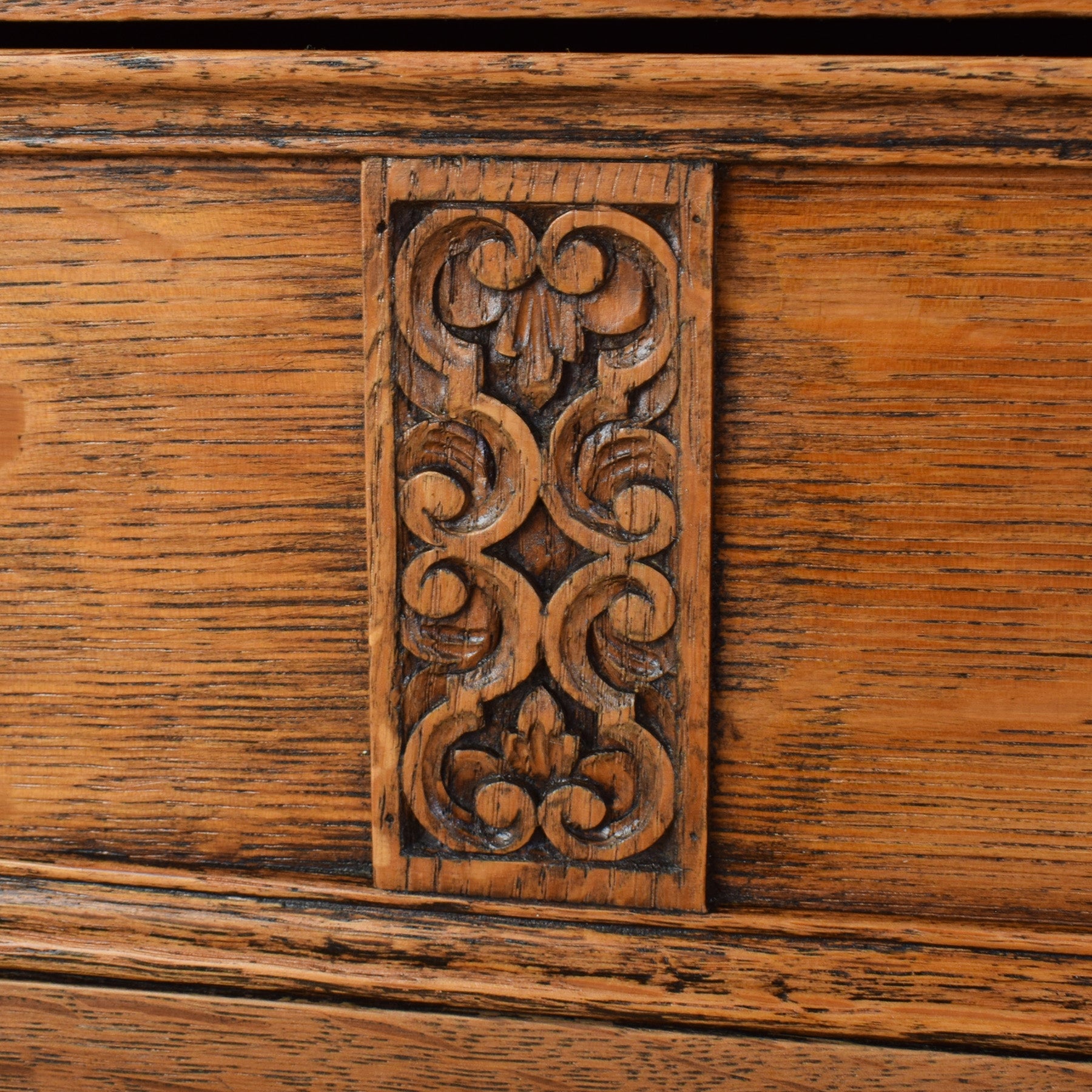 This oak bureau adds both character and practicality to a study, living room, or hallway, offering an inviting place for writing, organising paperwork, or displaying personal items. Its compact form provides useful storage while maintaining a traditional, well-balanced appearance.