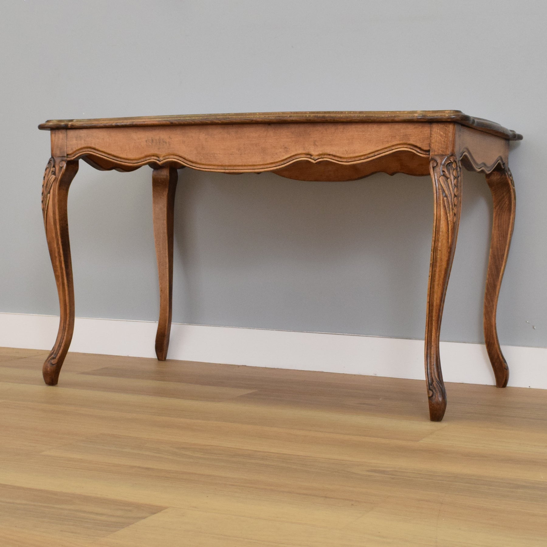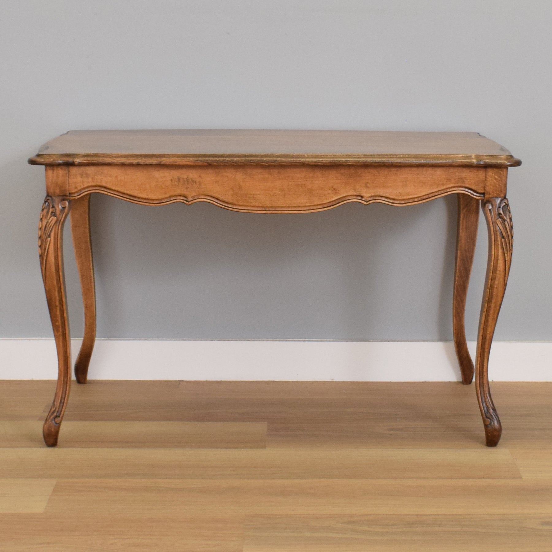 Crafted from predominantly from oak, the table features a delicate scalloped edge and carved cabriole legs, showcasing the fine craftsmanship that went into its creation. The table's ample surface area ensures plenty of space for living room essentials.