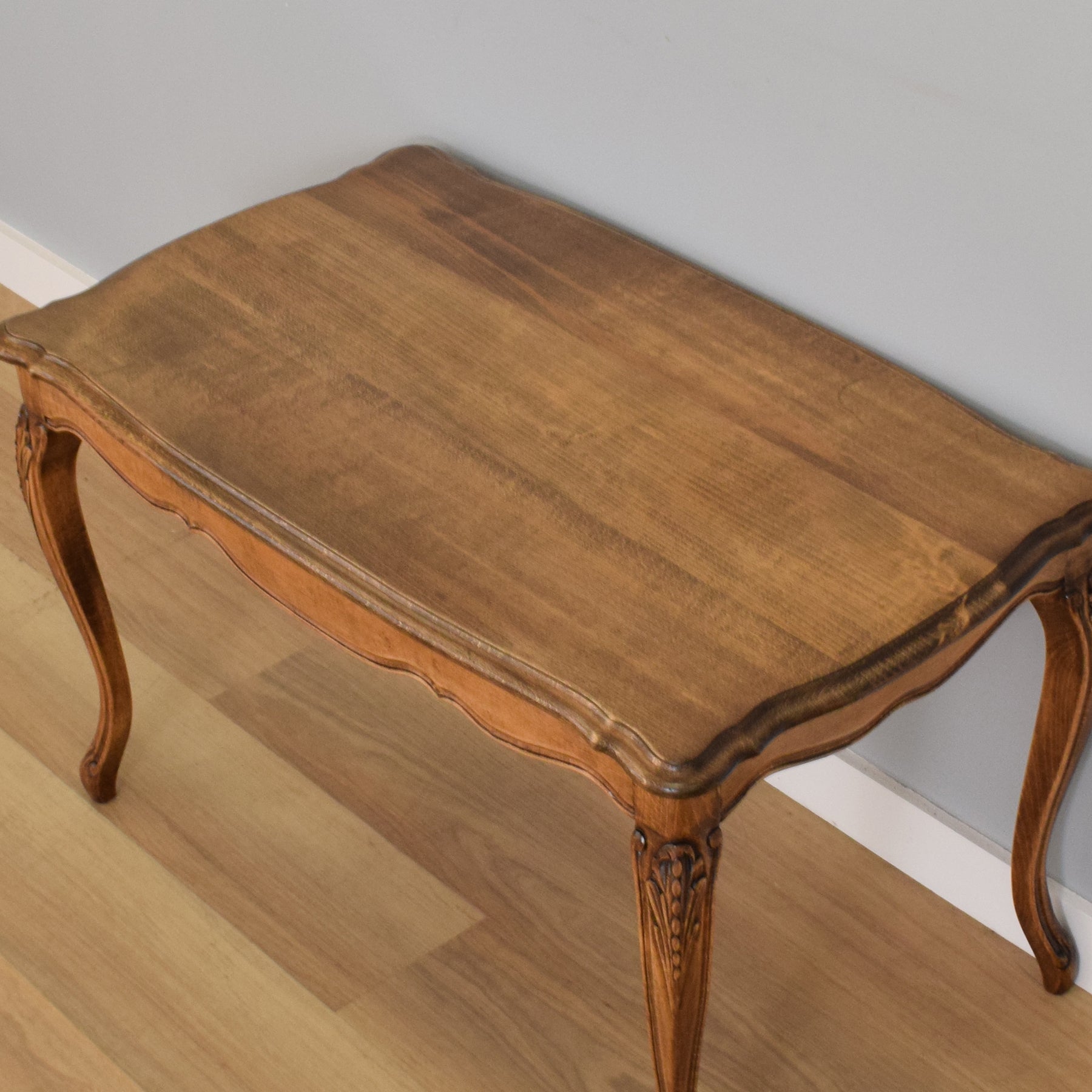 This elegant coffee table is an ideal centrepiece for any living room, providing both style and functionality. Its graceful curves and intricate carvings make it a charming addition to a variety of interior designs, from traditional to shabby chic.