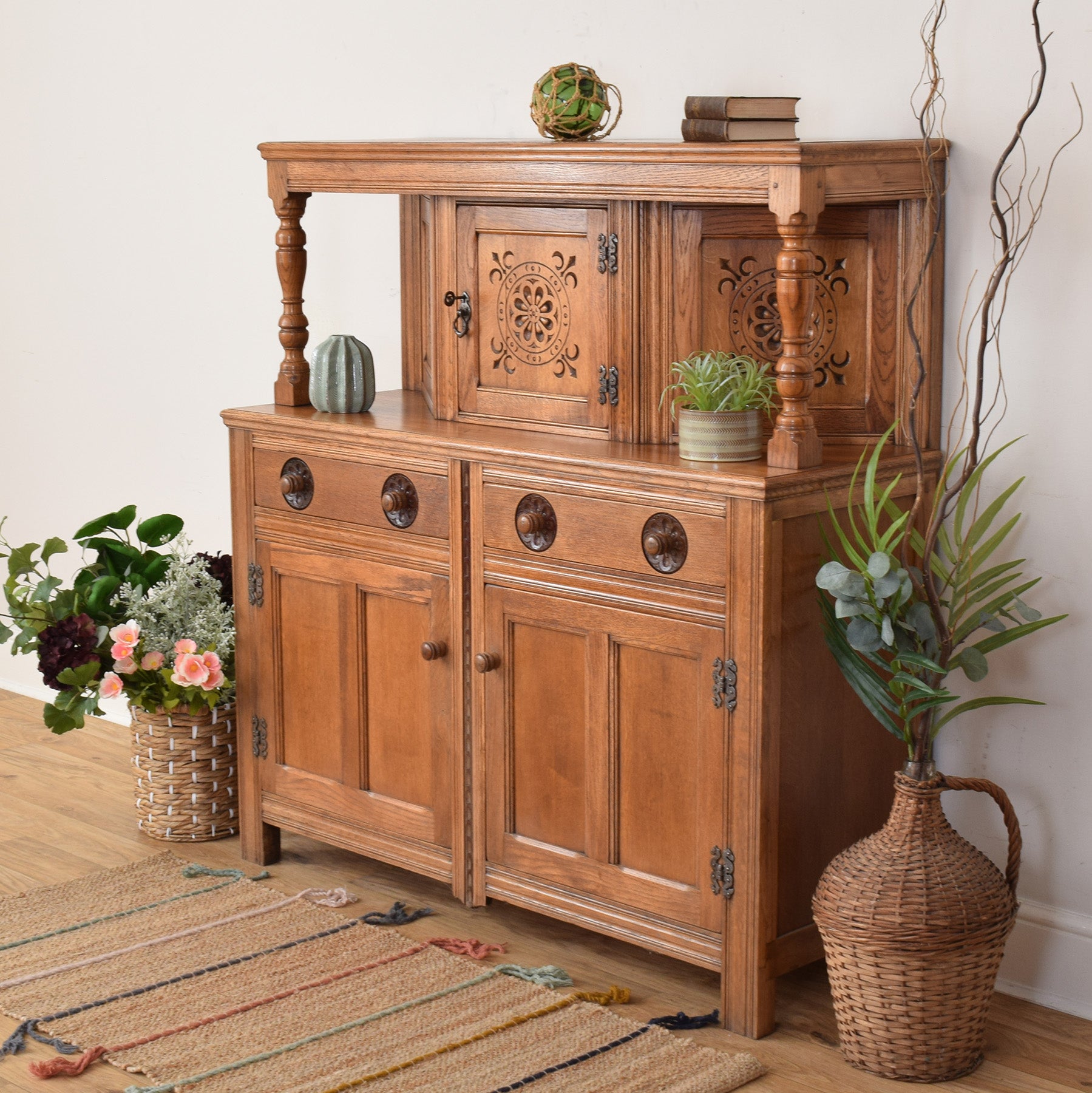 This court cabinet brings a sense of warmth and character to a dining room or kitchen, offering both practical storage and visual interest. Its traditional proportions and carved details help create a welcoming, lived-in feel, making it well suited to spaces that favour classic or country-style interiors.