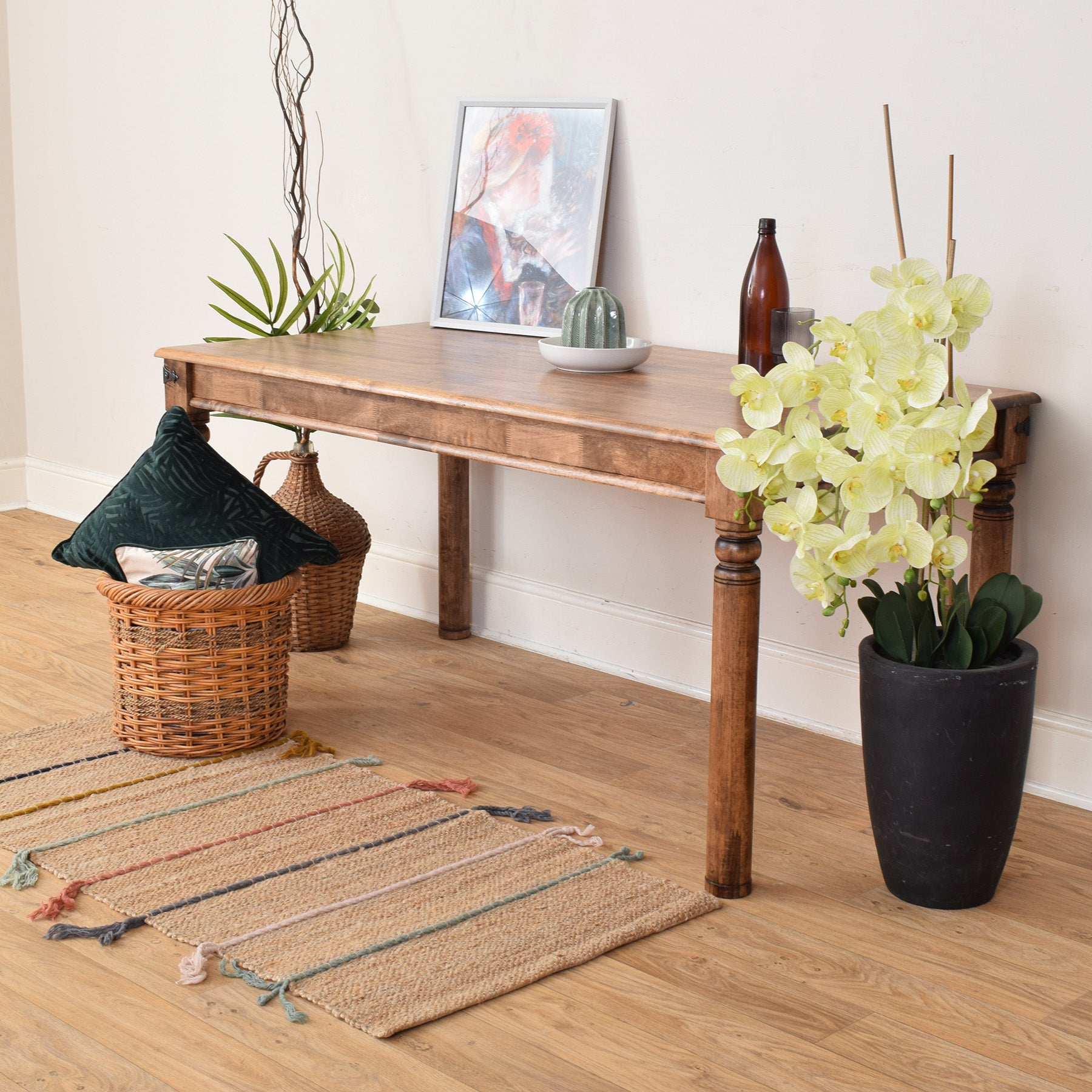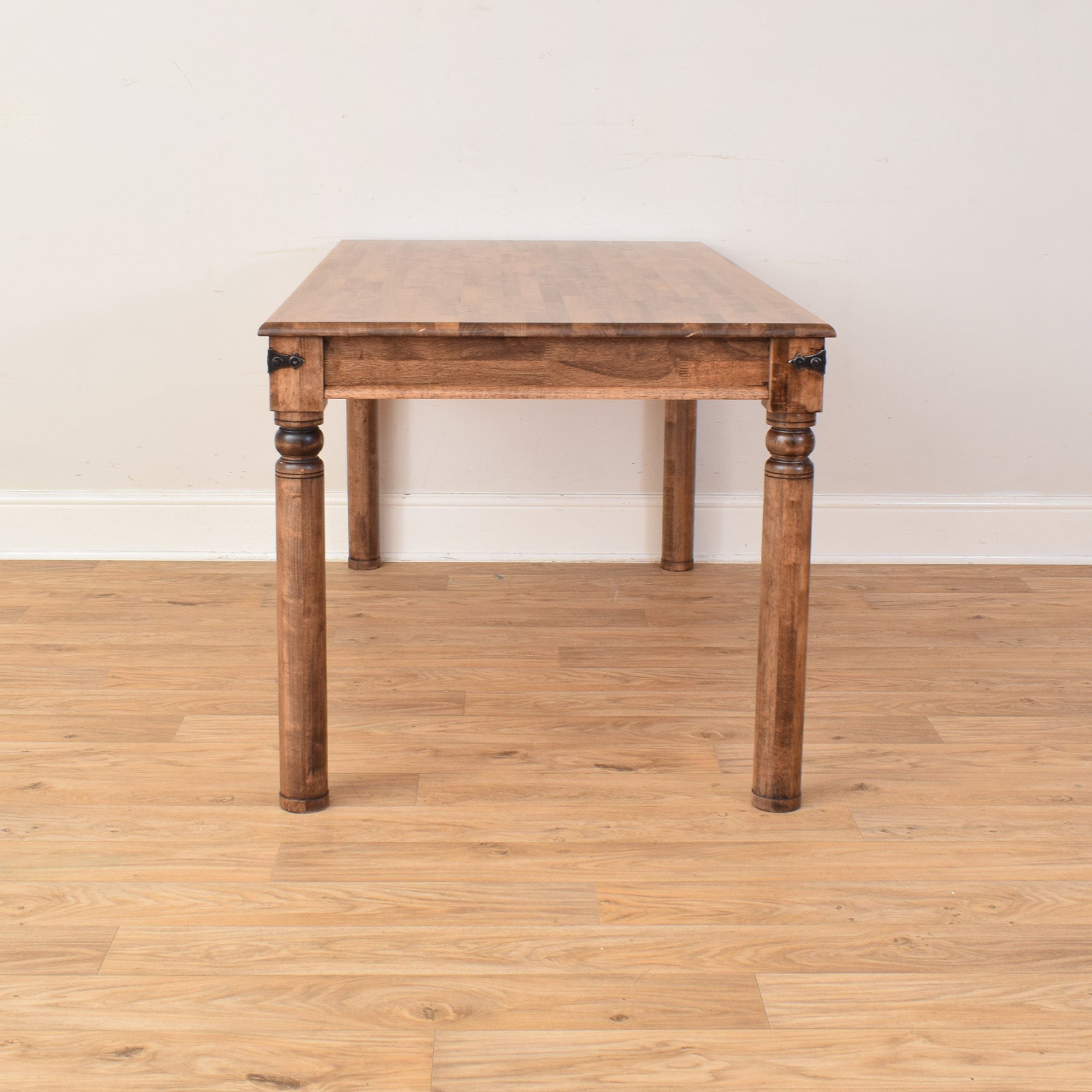 This dining table offers a balance of practicality and natural character, making it a dependable piece that fits easily into a range of home settings while retaining the warmth of solid wood.