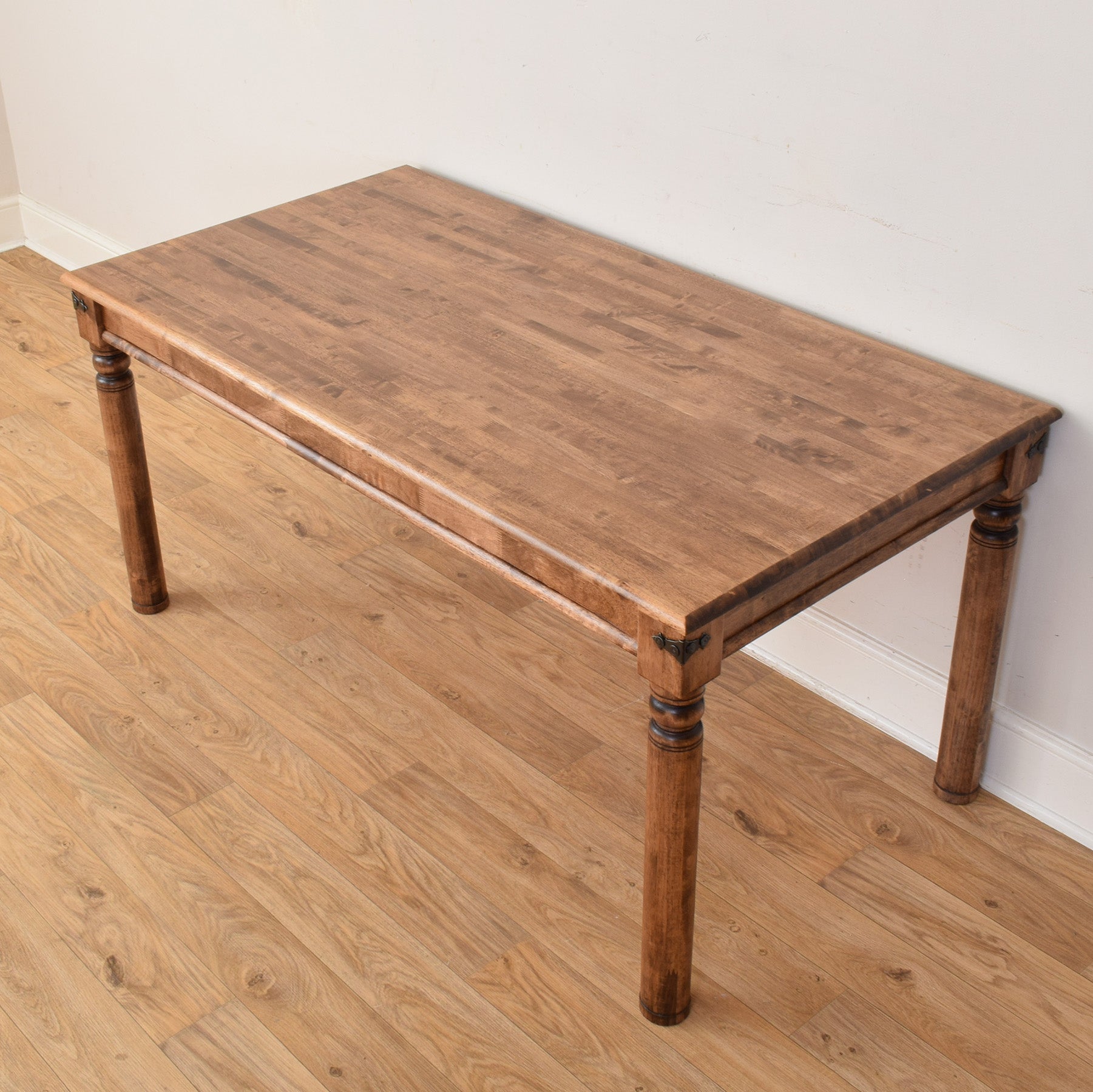 The table features a rectangular top with gently rounded edges and turned legs that add subtle character without drawing too much attention. The visible grain pattern across the surface gives the piece depth and variation, while the solid proportions provide a sense of stability suitable for daily use, whether for dining, working, or general household tasks.