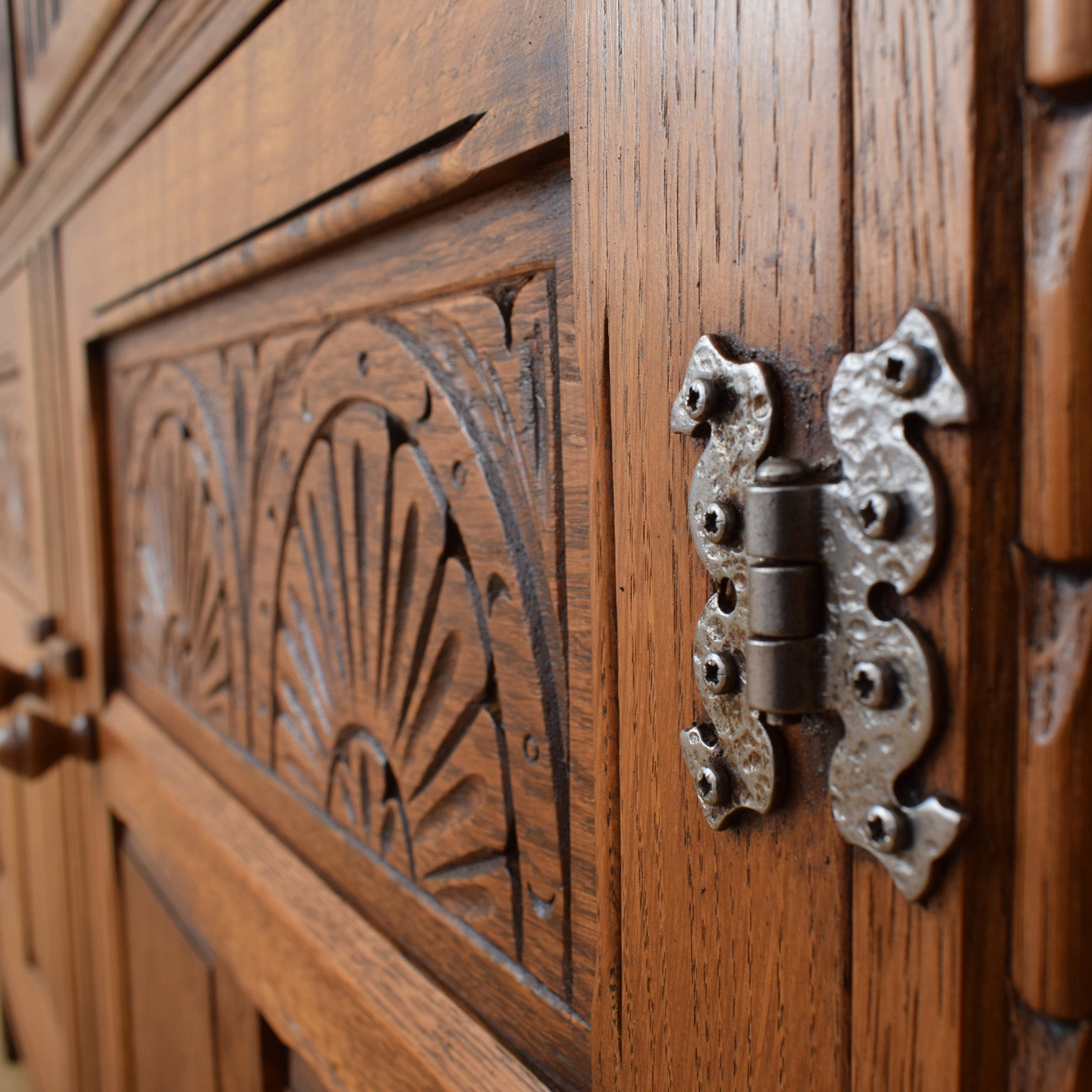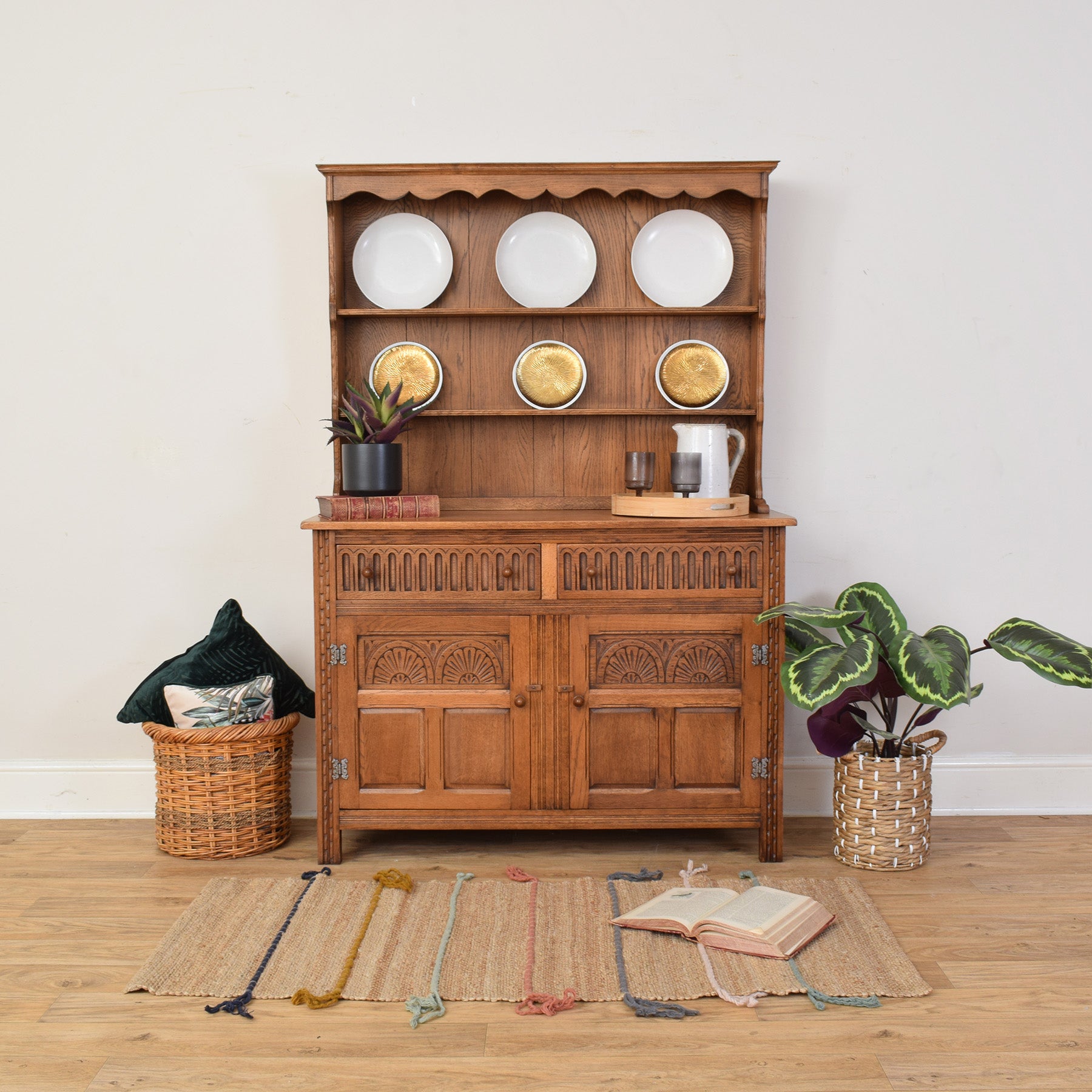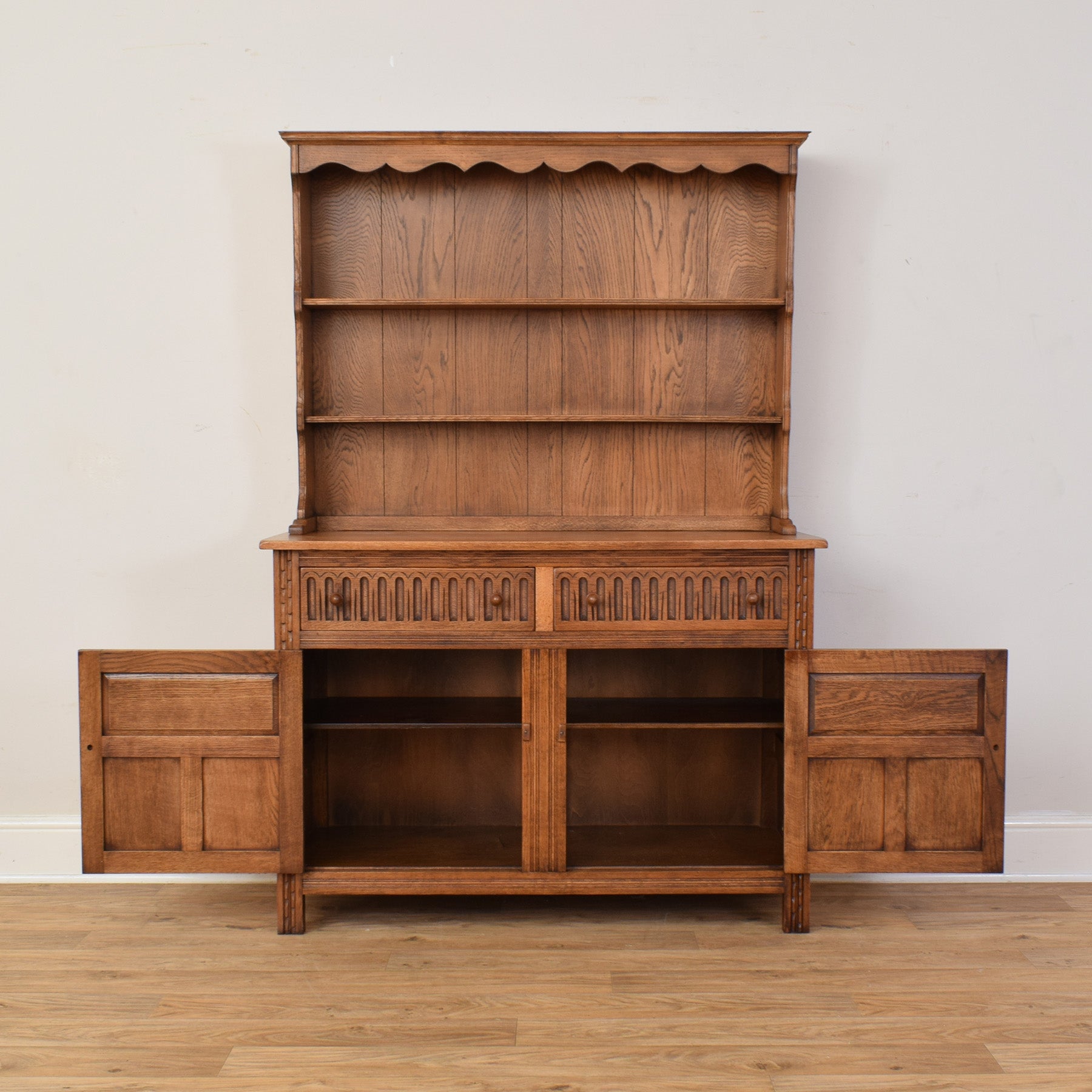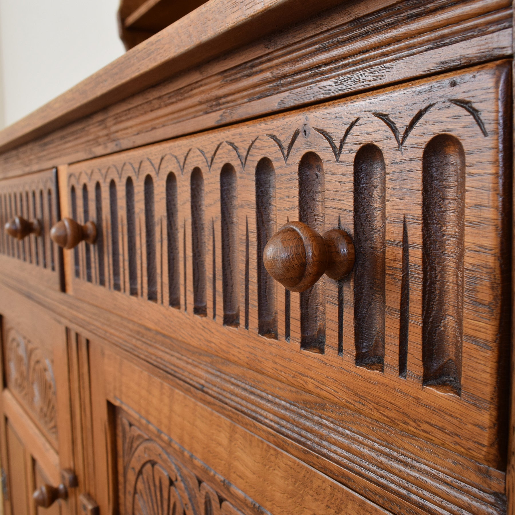 With its combination of useful storage, carved detail, and refreshed natural finish, this oak dresser is a practical and characterful addition to any traditional or modern country-style interior.