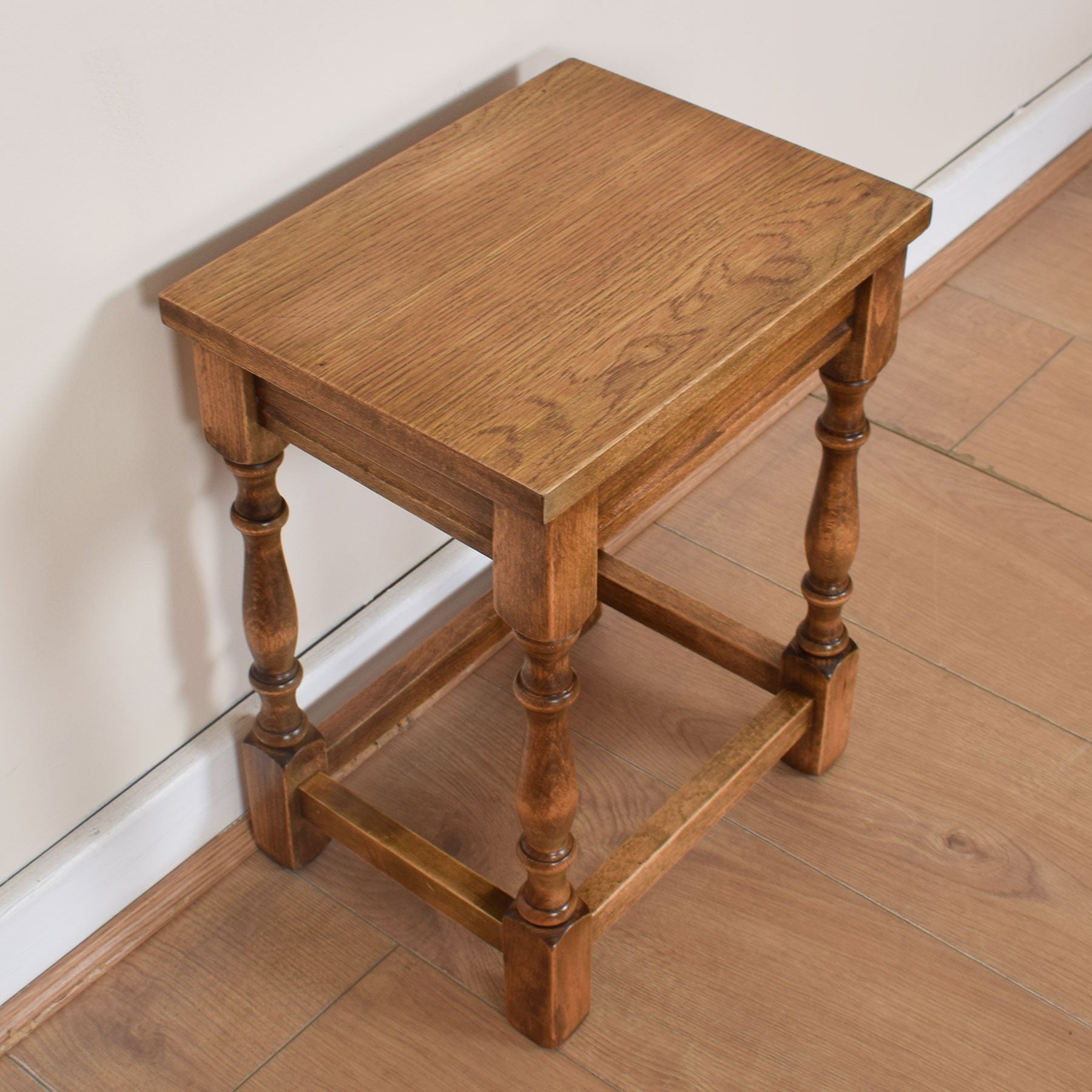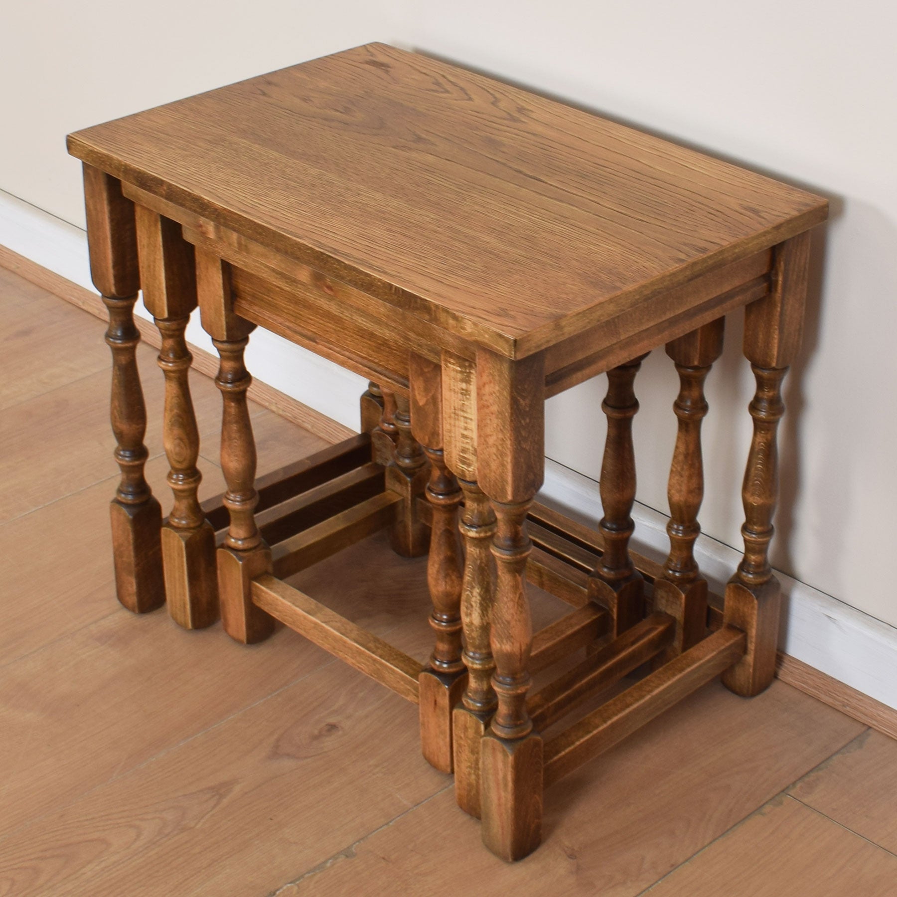 Each table features a spacious oak top that has room for a cup of tea or coffee, along with a favourite reading book or various other items. When not required, each smaller table nests neatly into the next larger, enabling them to be stored and moved as a single piece. These tables comprise a mix of oak frames with oak-veneered tops.