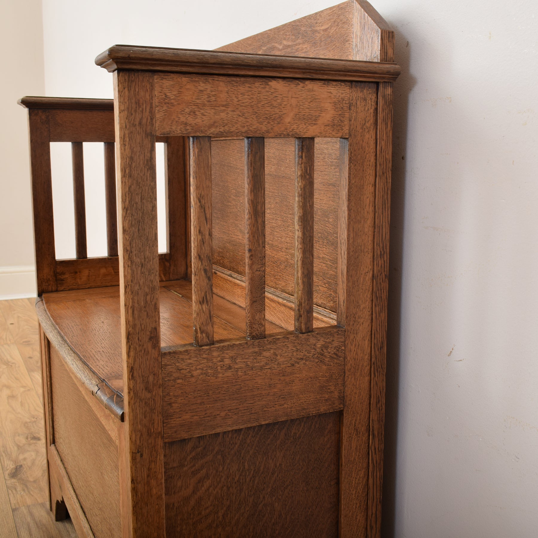 This oak settle brings a sense of warmth and tradition to any hallway or entrance space. Its compact size and timeless design make it ideal for smaller areas while still offering a welcoming touch of craftsmanship and practicality. The natural oak tones blend effortlessly with a variety of interior styles, from classic country homes to more contemporary spaces seeking a hint of rustic charm.