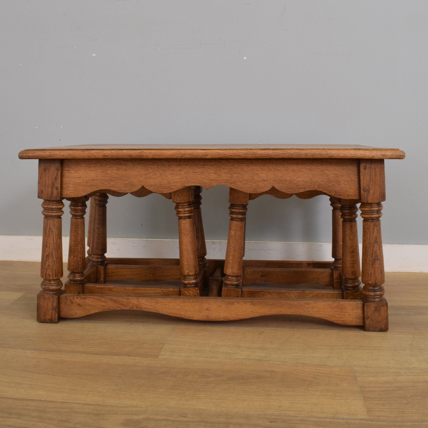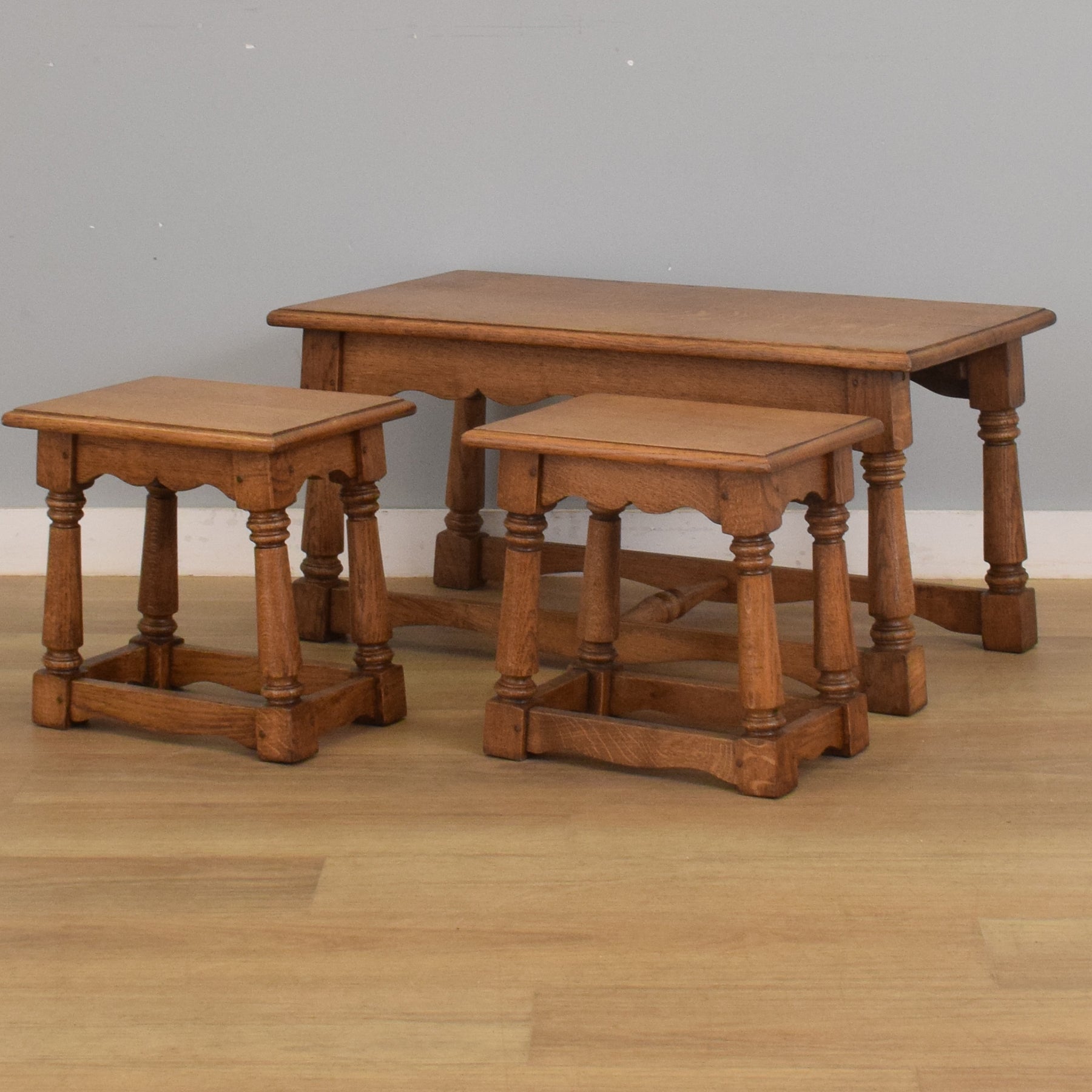 A nest of tables is a timeless addition to a living room, offering versatile surface space that can be tucked away when not in use. Ideal for entertaining or everyday use, this rustic oak set brings warmth and character to traditional and country-style interiors.