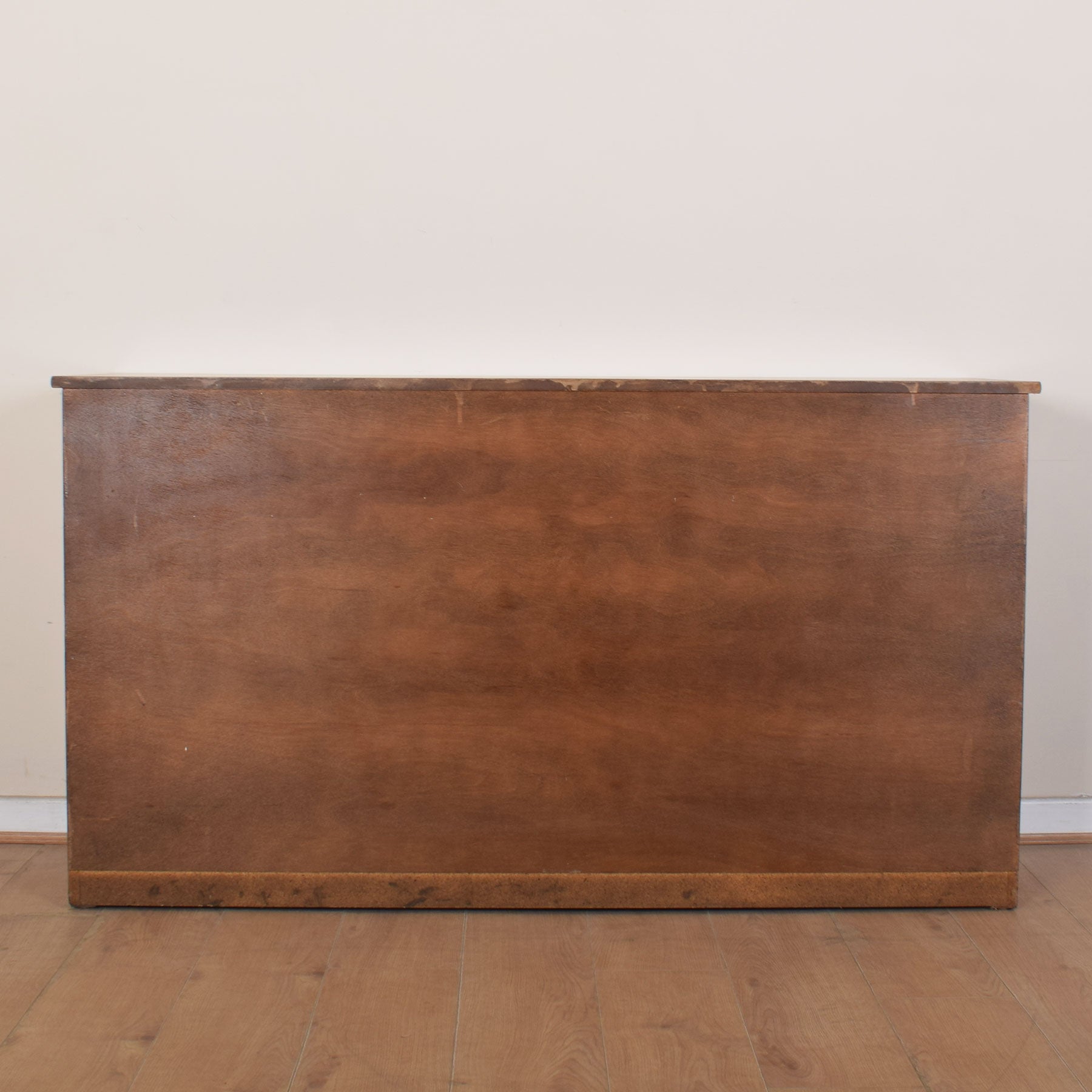 Our restoration workshop has stripped the original dark finish from this sideboard, revealing the characterful variations in natural oak tones. We have then applied a professional matt lacquer that enhances the colour and grain of the oak, as well as providing a good level of protection in careful everyday use.