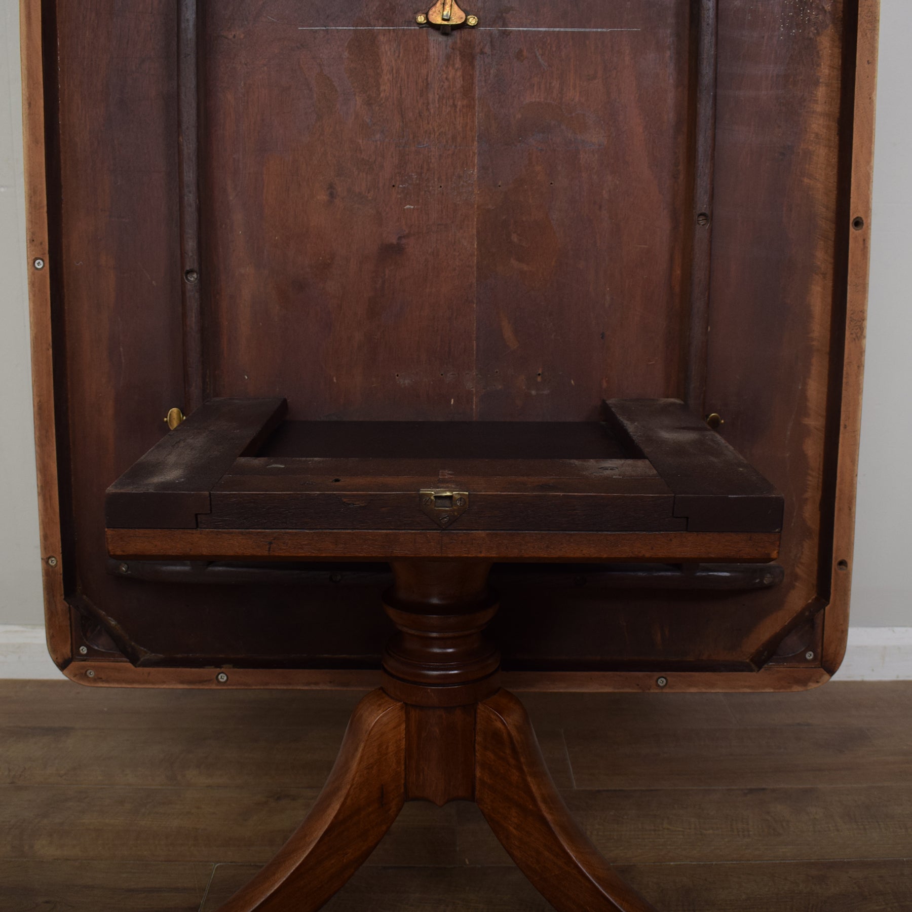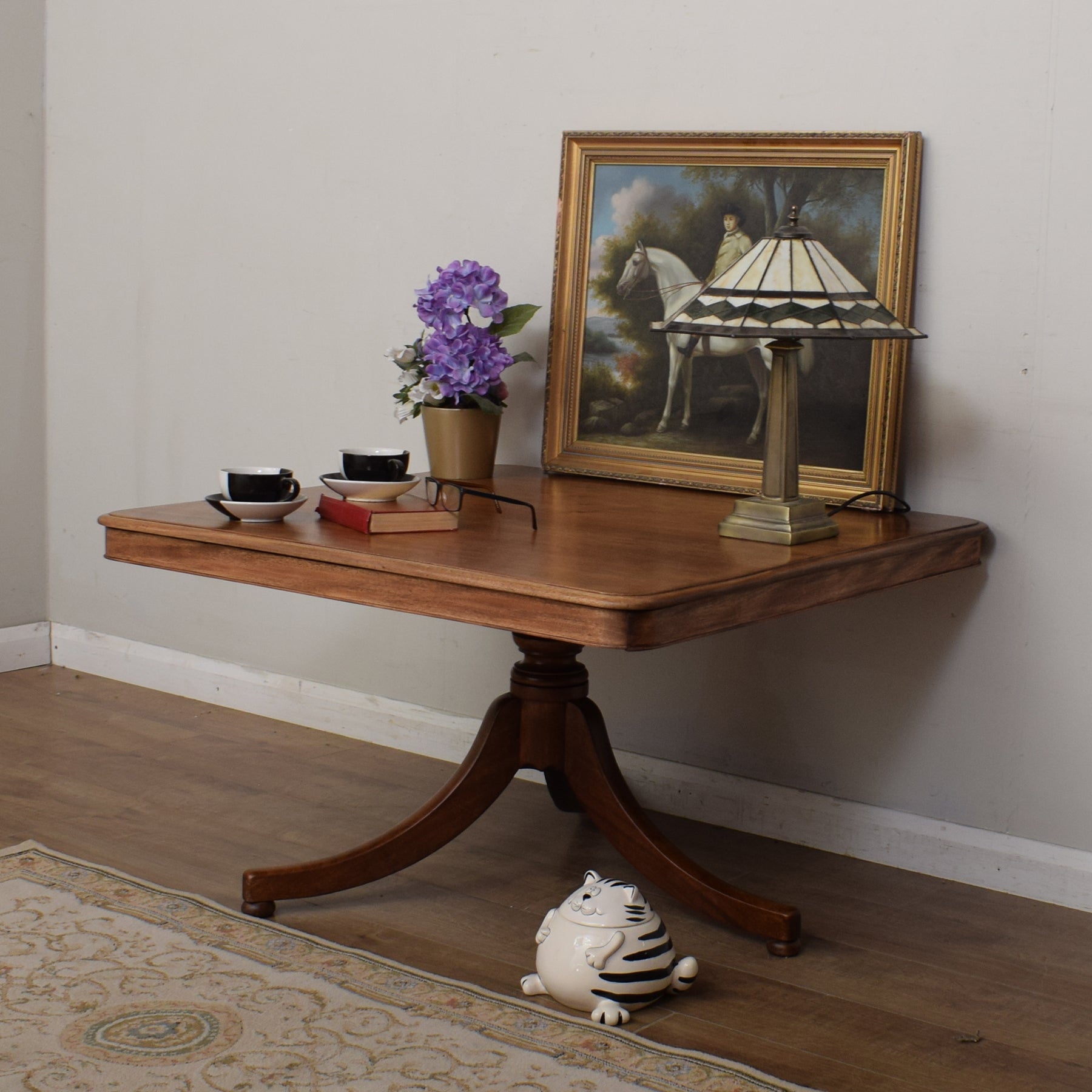 The mahogany top provides plenty of space for resting cups of tea (on a coaster of course) and a reading lamp, making it perfect for sitting next to your favourite armchair. Alternatively, it will be just as functional in the centre of the lounge, giving place to a vase of flowers and photos of loved ones. There is a metal catch underneath that when released allows the top to tilt upright to take up less room when not in use.