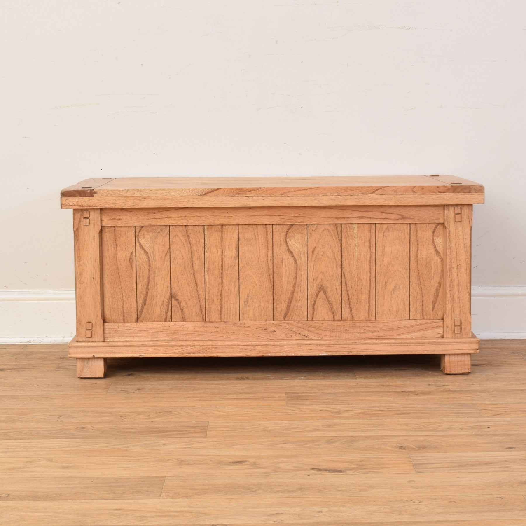 The previous darker stain has been stripped, and then multiple coats of hard-wearing matte lacquer have been applied, providing a durable long-lasting finish, while also accentuating the natural oak grain. This item is made using a mixture of solid oak and oak veneer panels, and the rear panel is made from plywood.