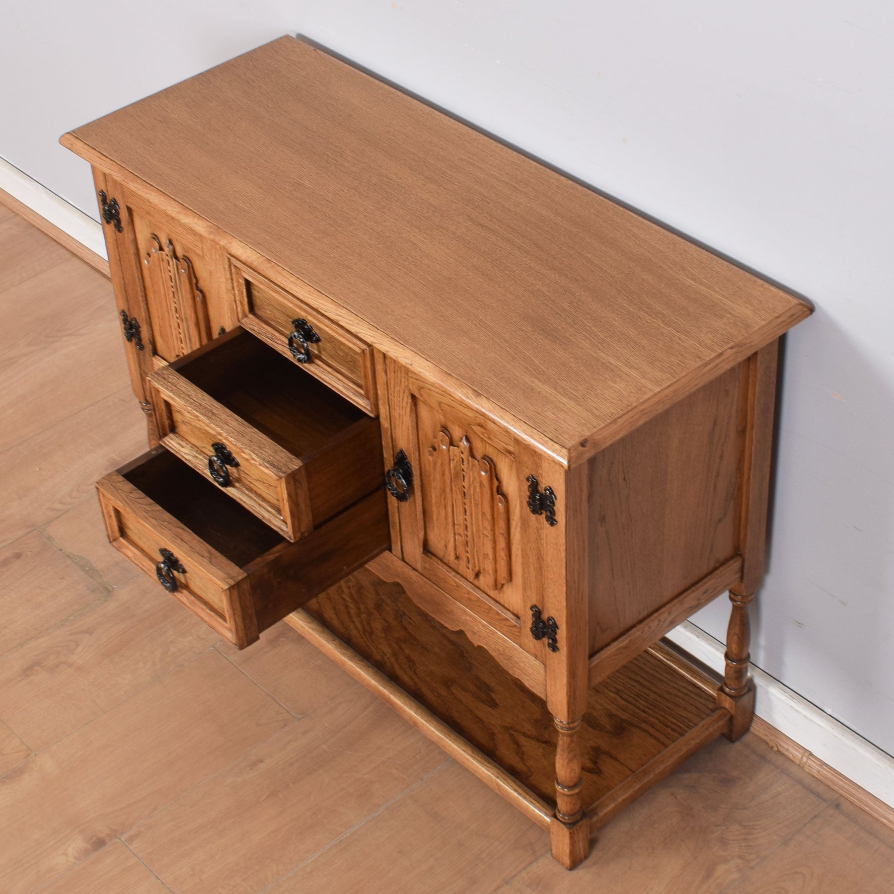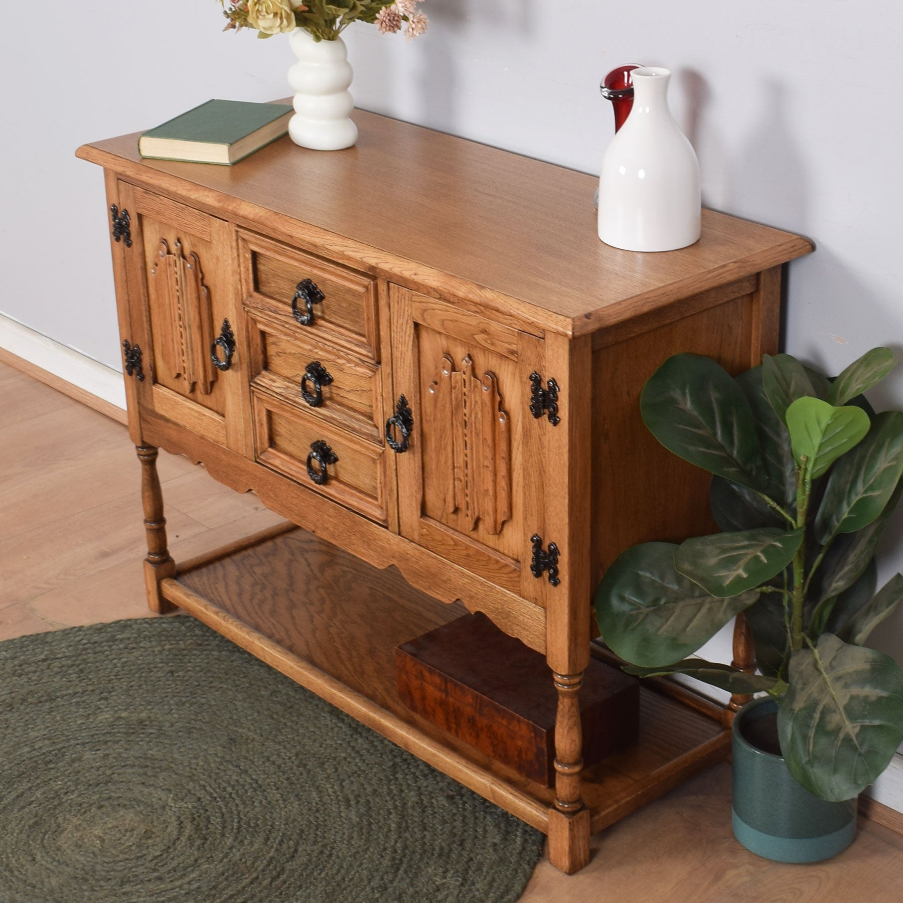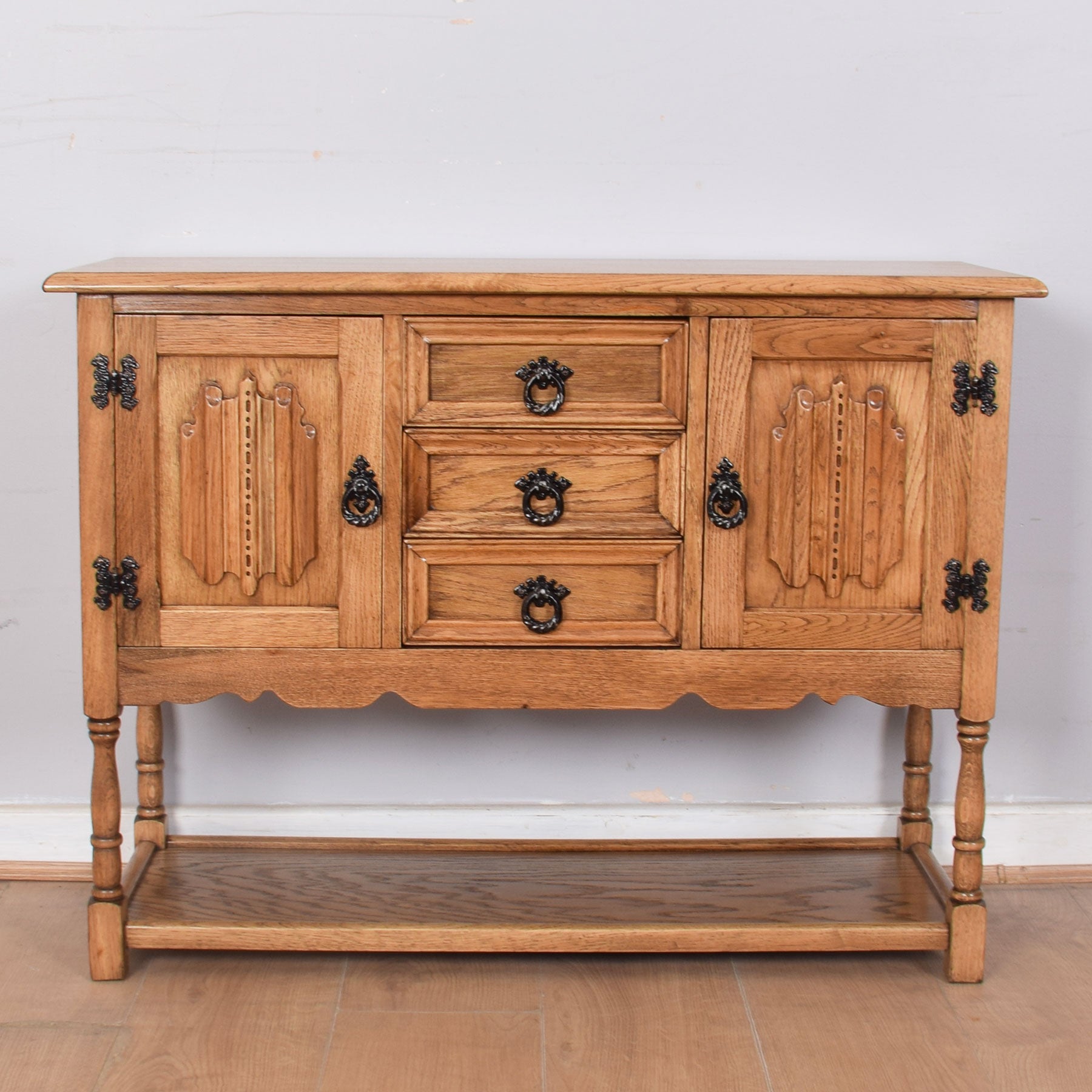 The small oak sideboard offers practical storage for the smaller lounge, dining room or other family space.