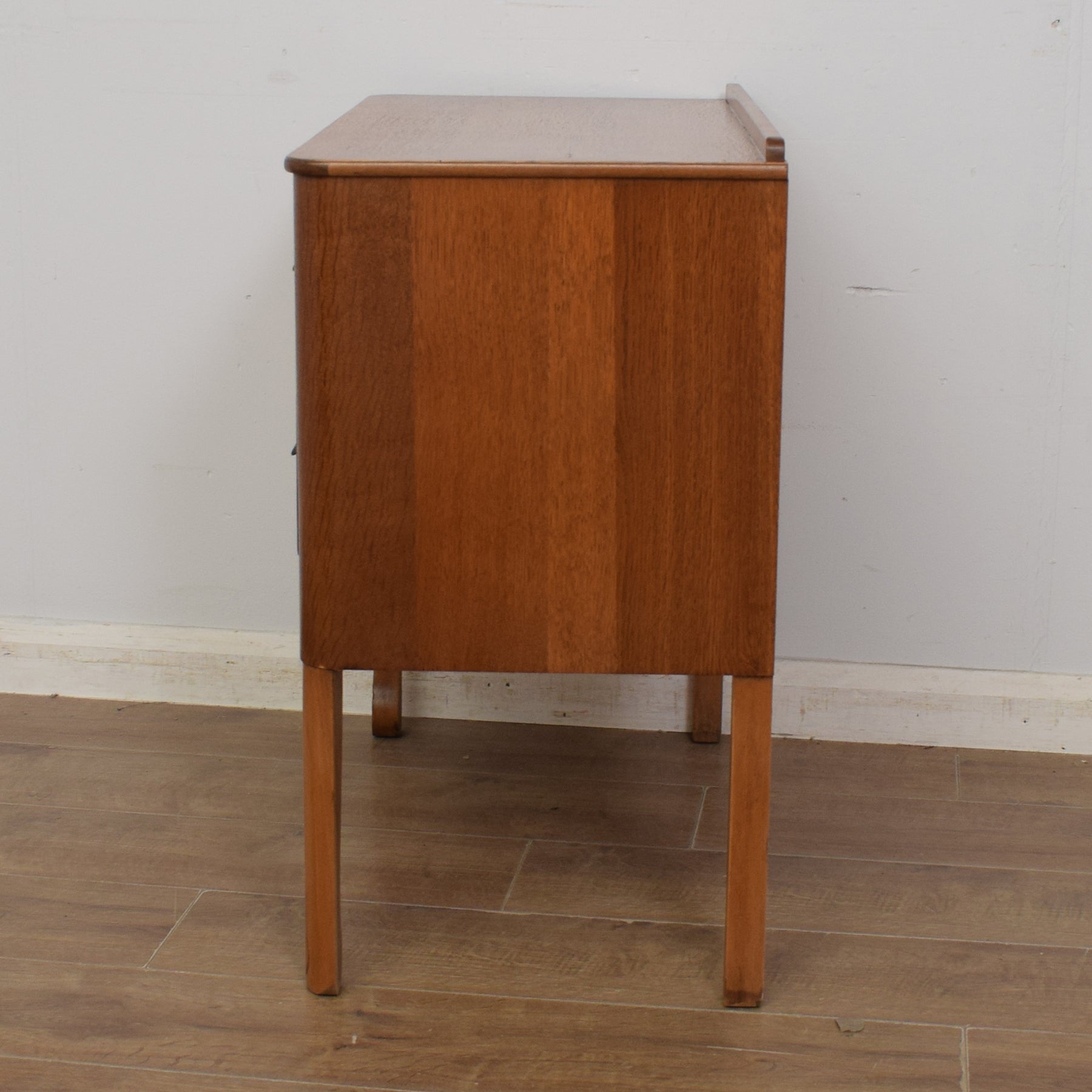 The attractive top is ideal for a vase of flowers, favourite family photographs or books, as well as a table lamp, radio or clock. Two full-width drawers, each with two handles, provide useful storage space for clothing or general household items.